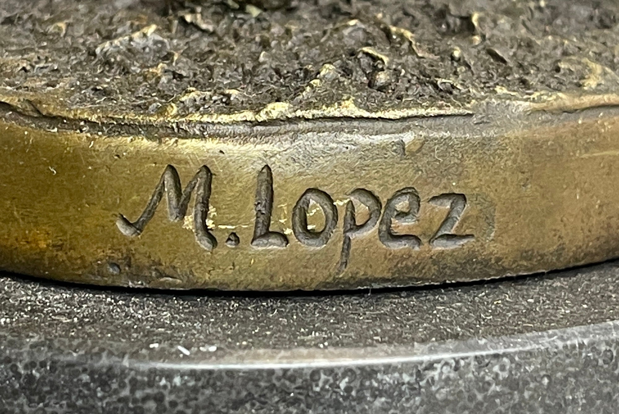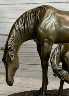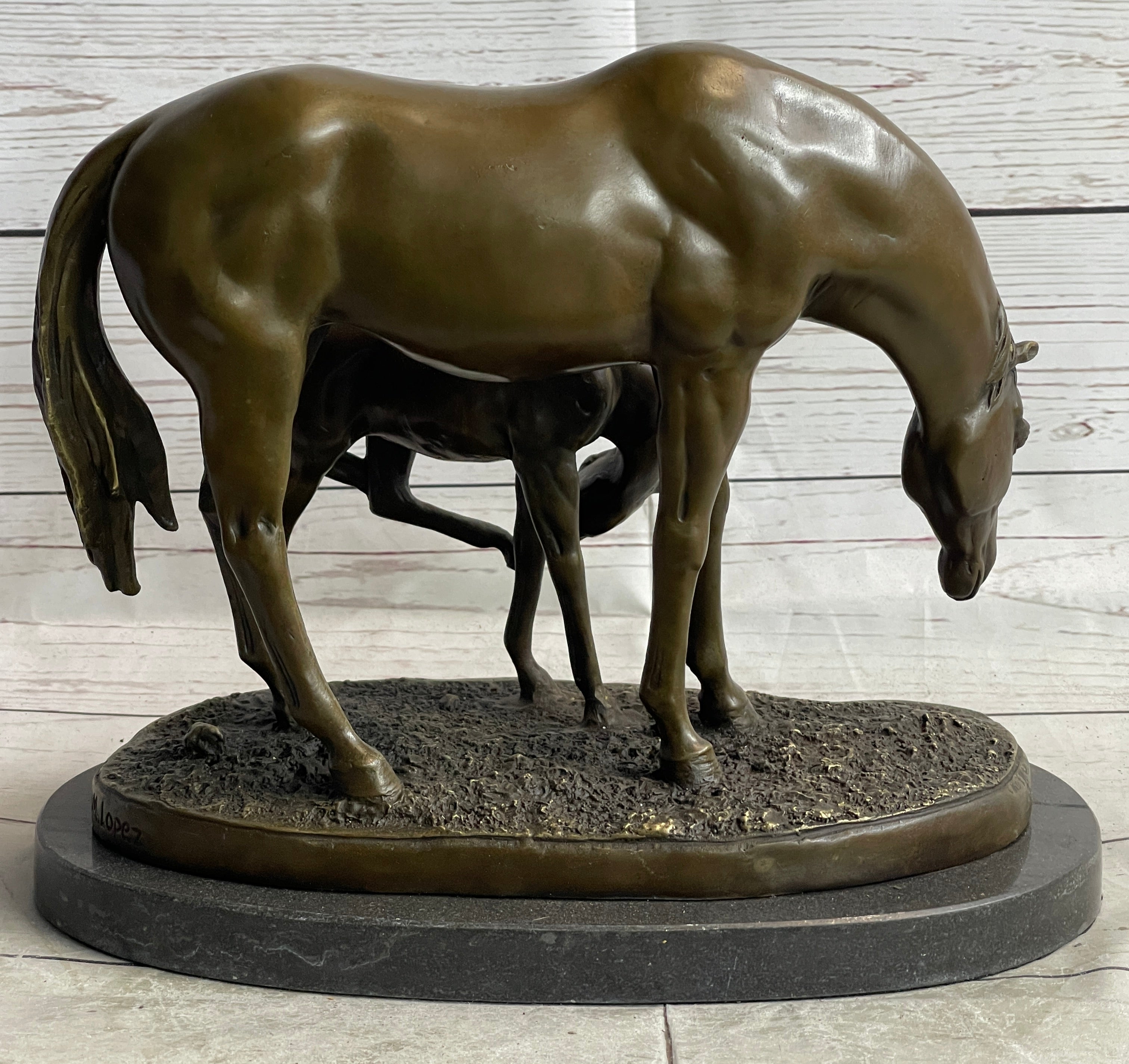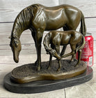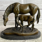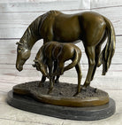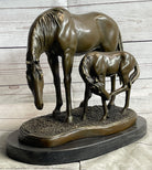 Signed Original Miguel Lopez Mother & Mare Horse Bronze Sculpture Marble Statue