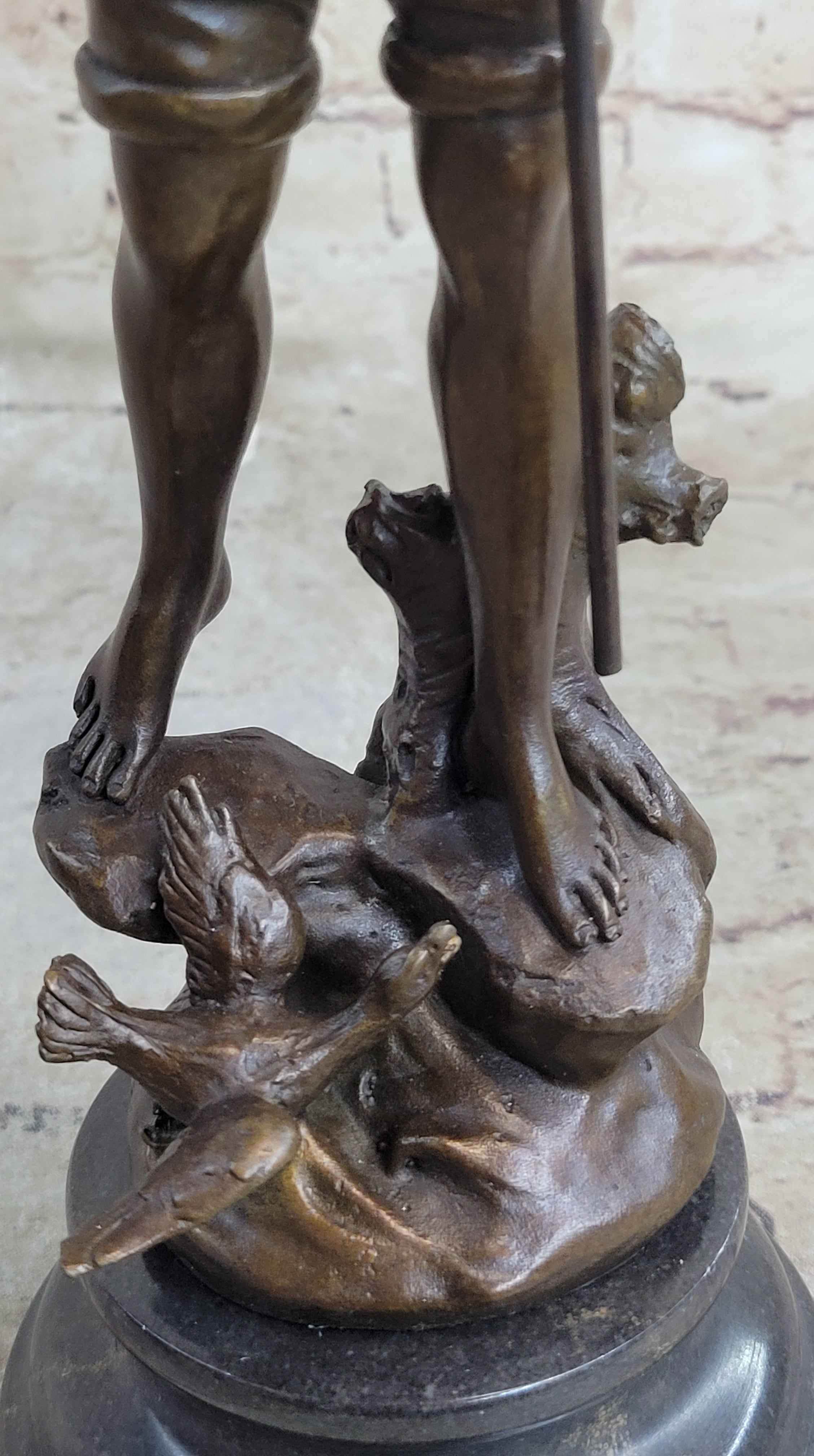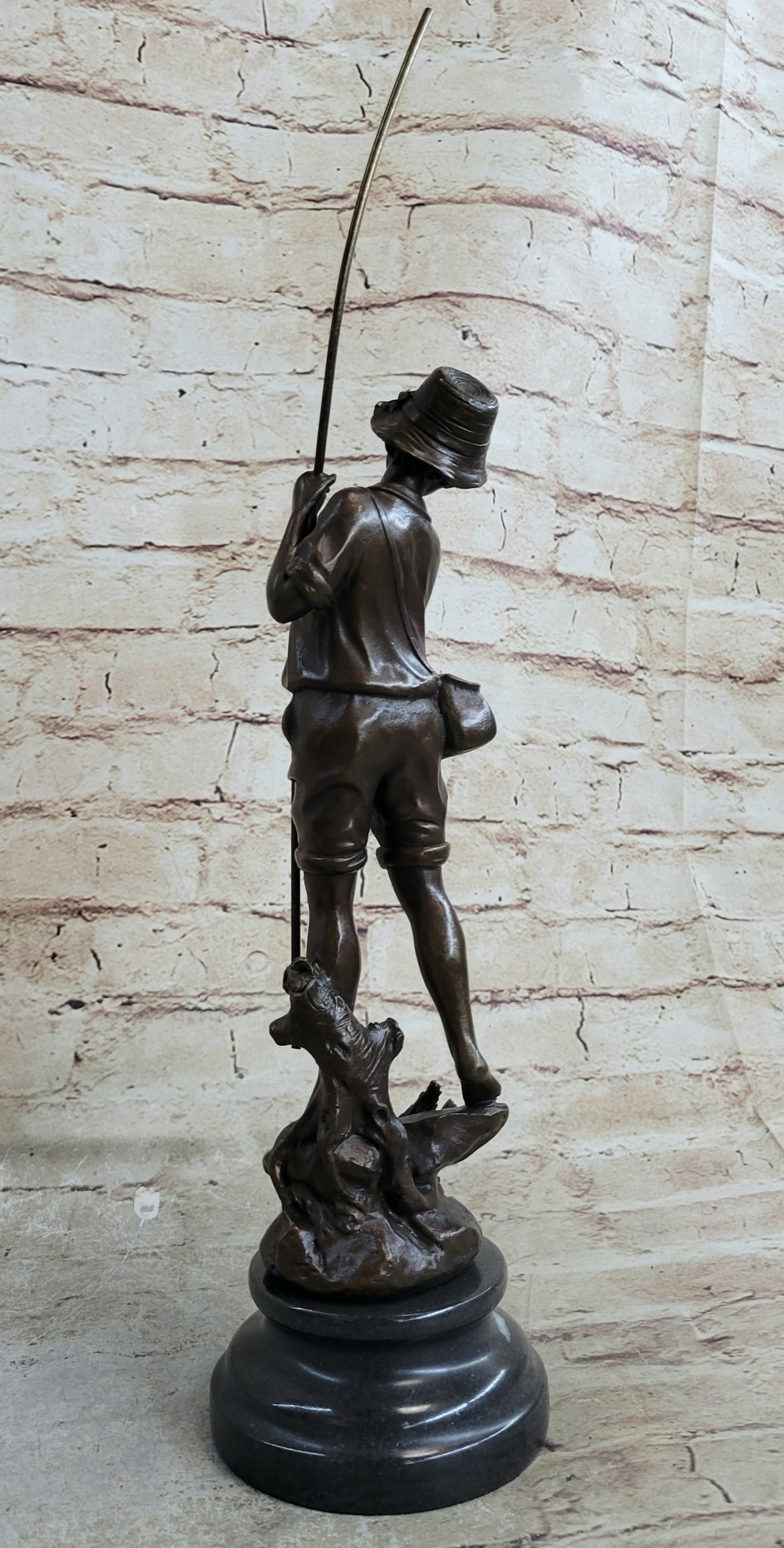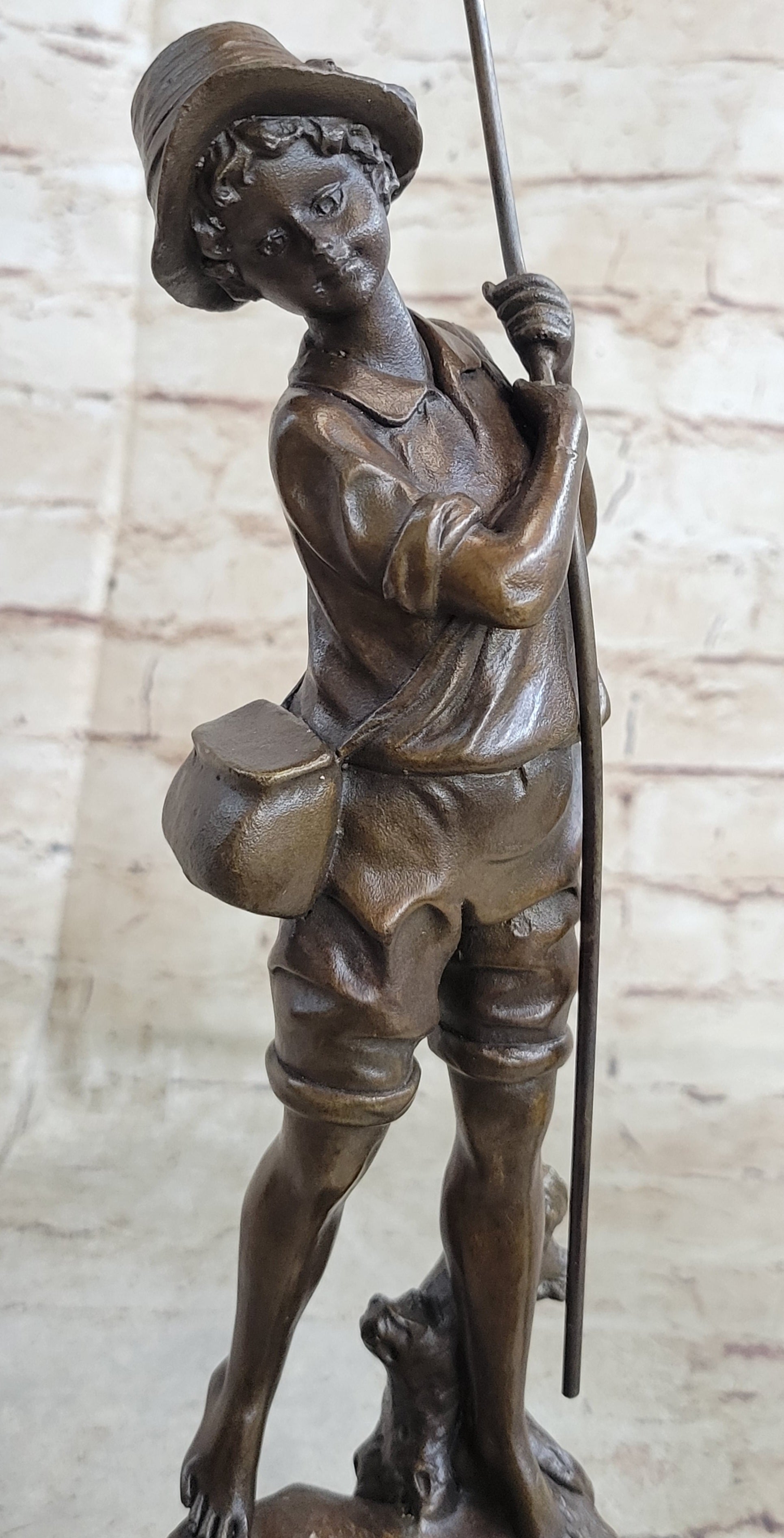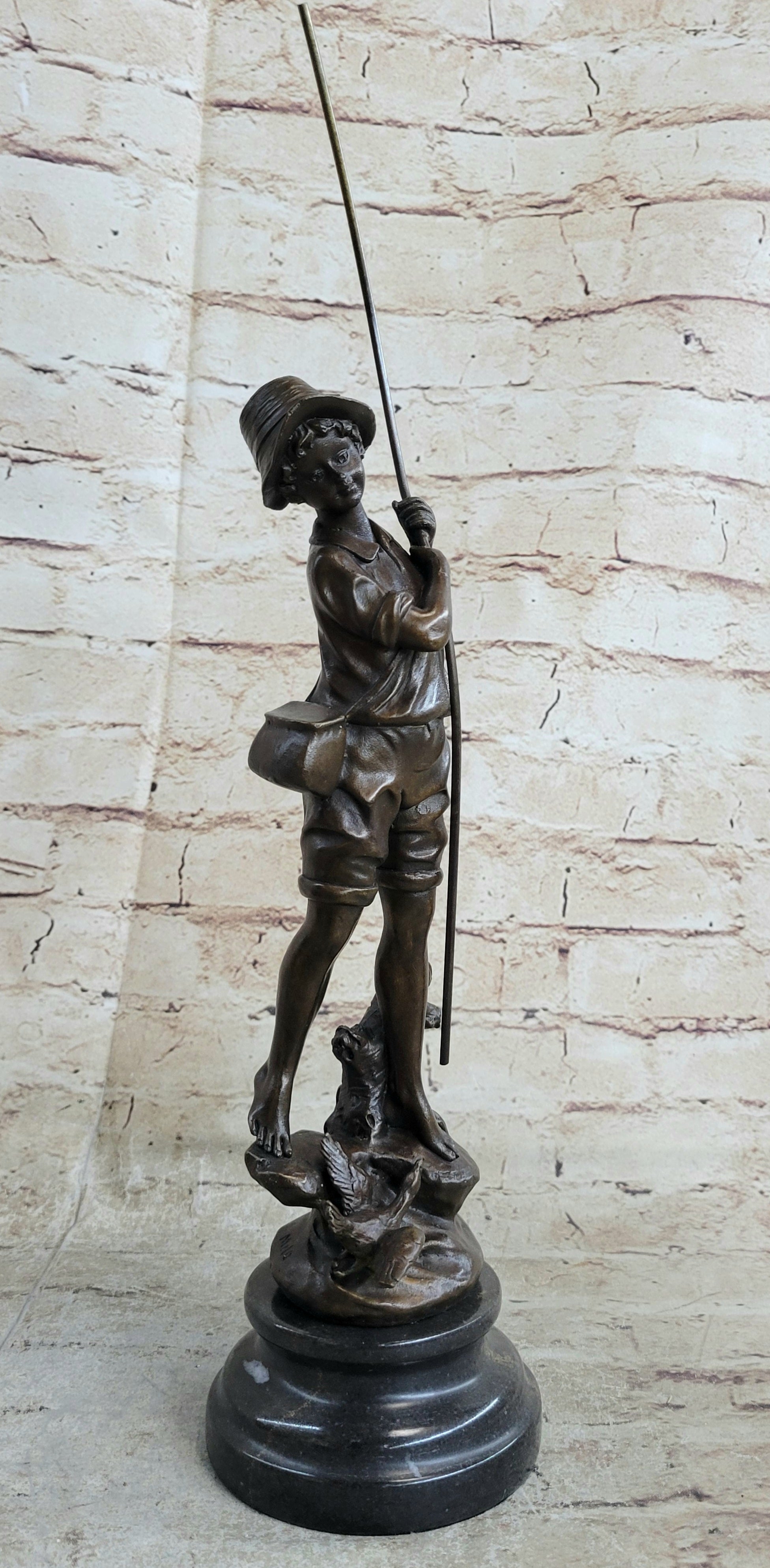 Signed Original Milo Boy Fishing With Duck Bronze Sculpture Statue Figurine Art