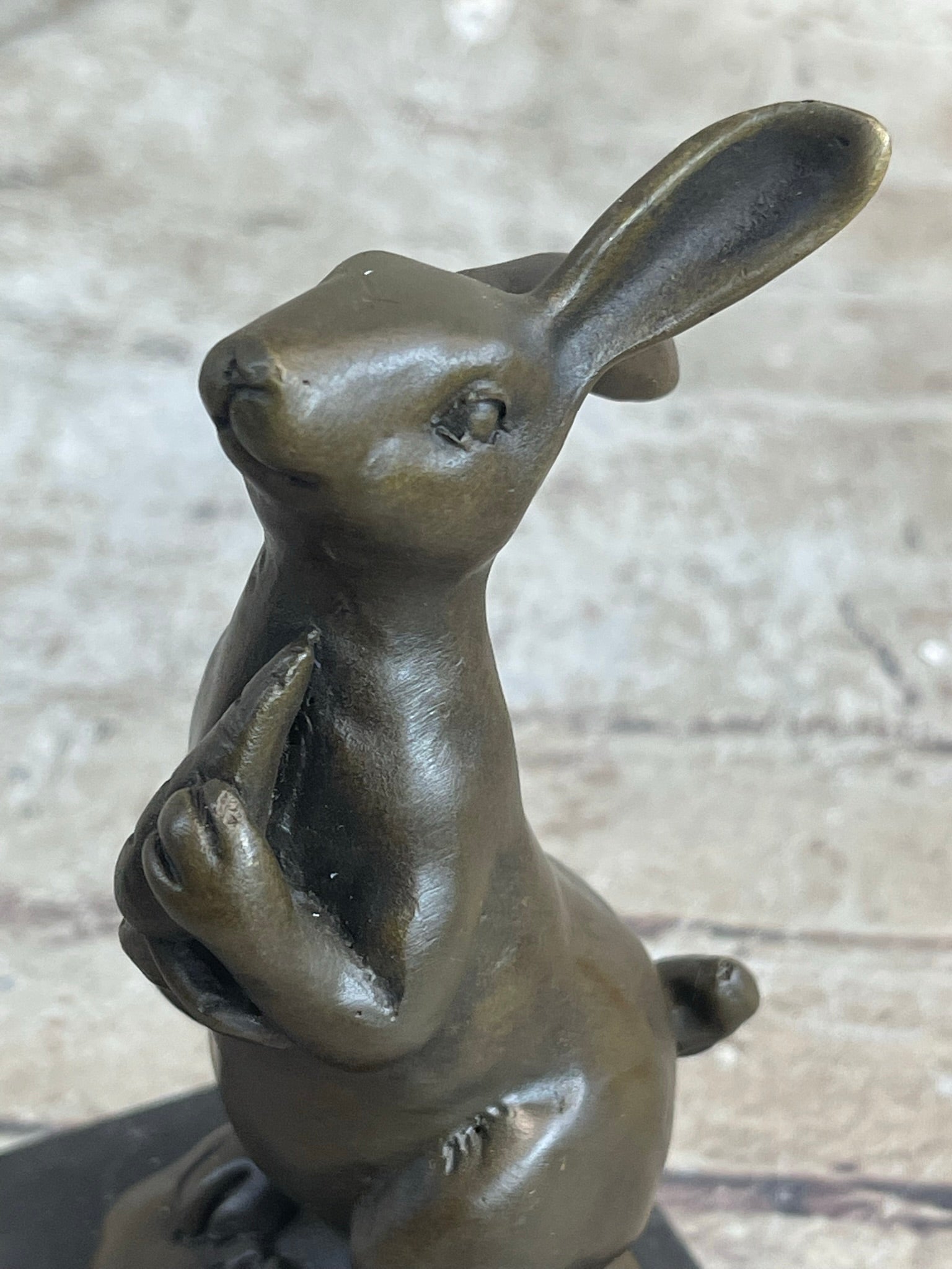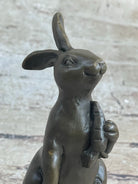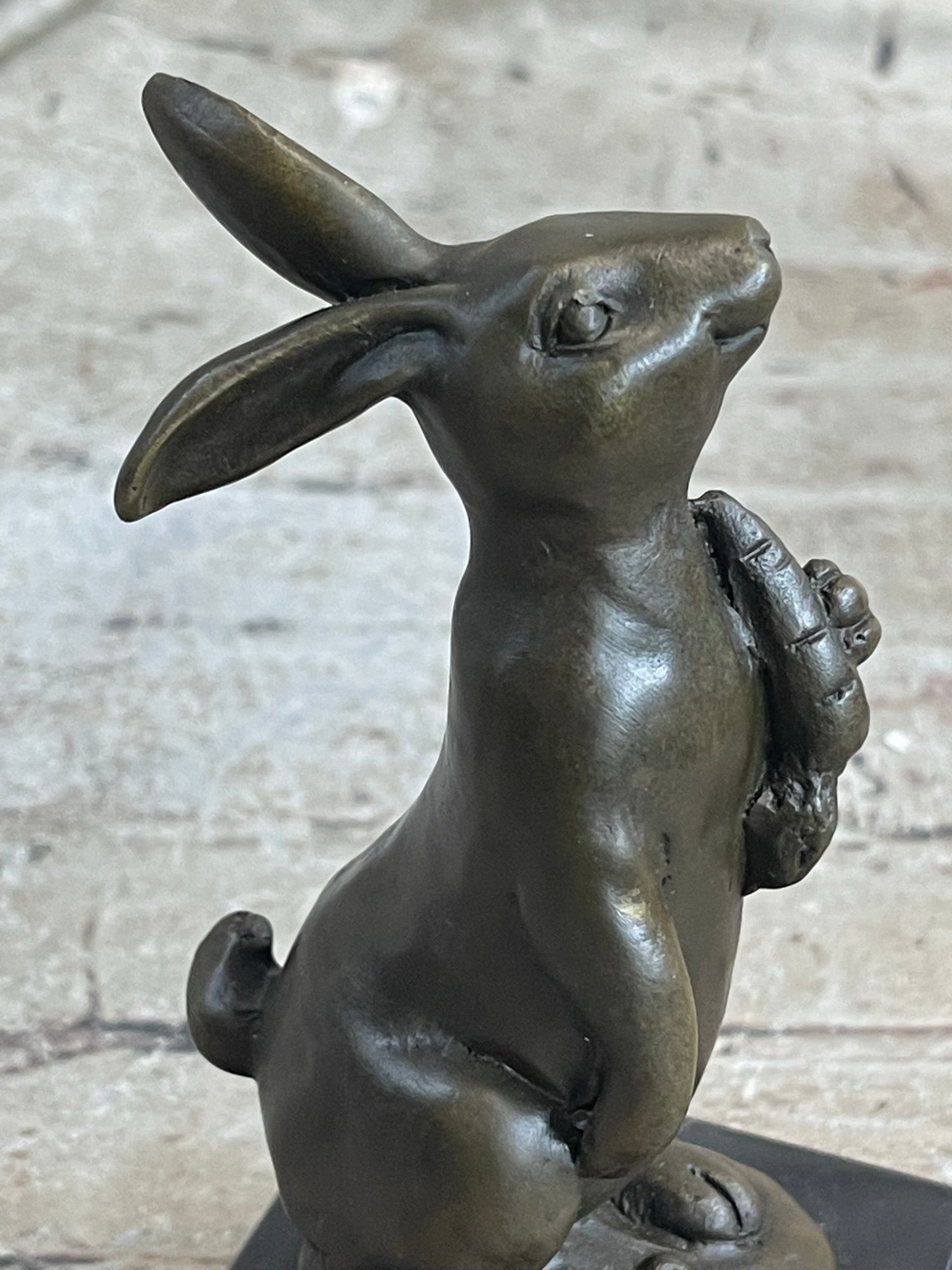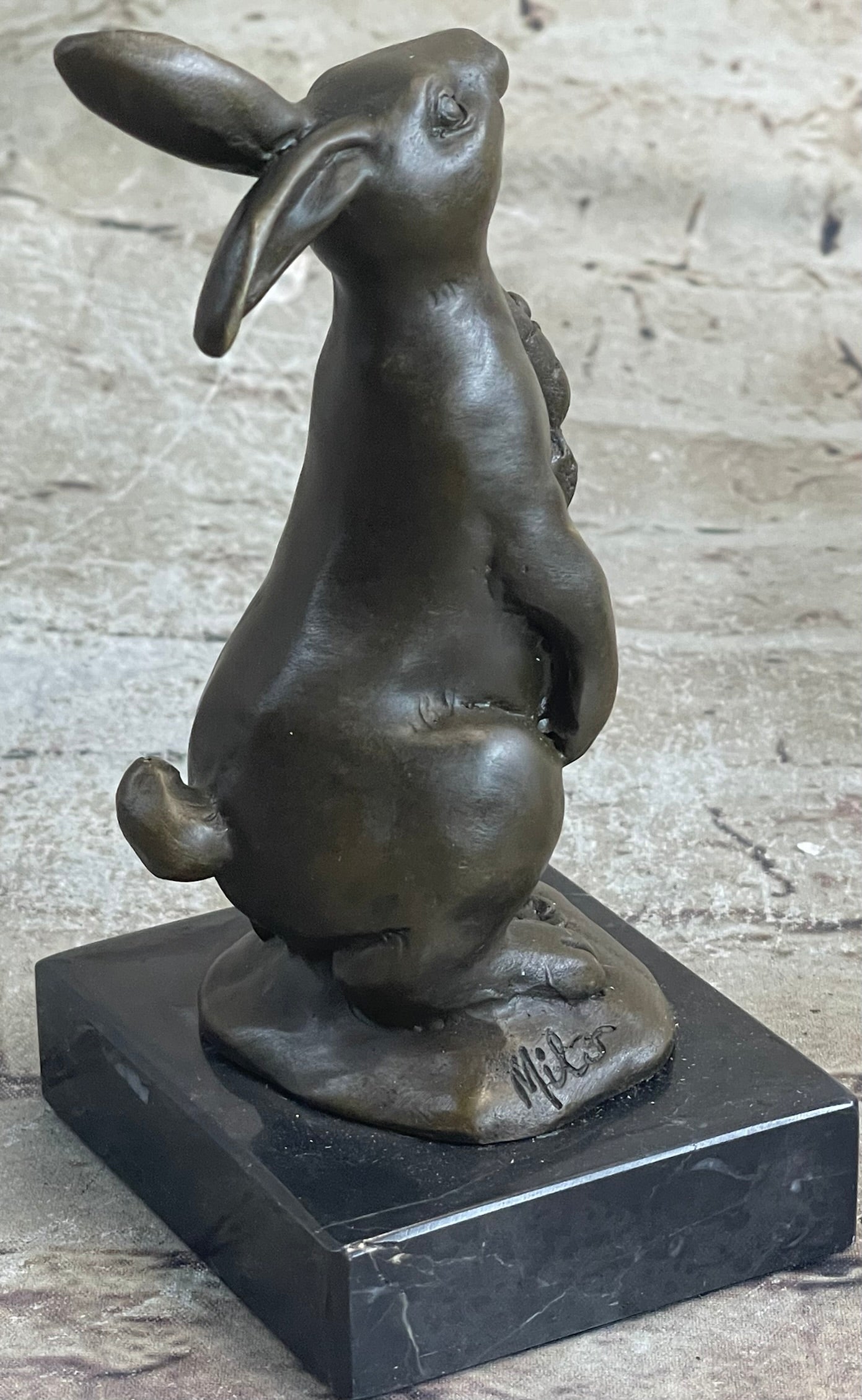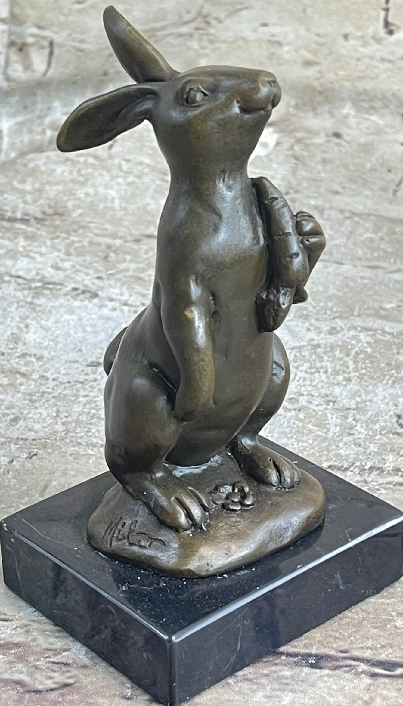 Signed Original Milo European Bronze Bunny W/ Carrot Sculpture Statue Figure Art