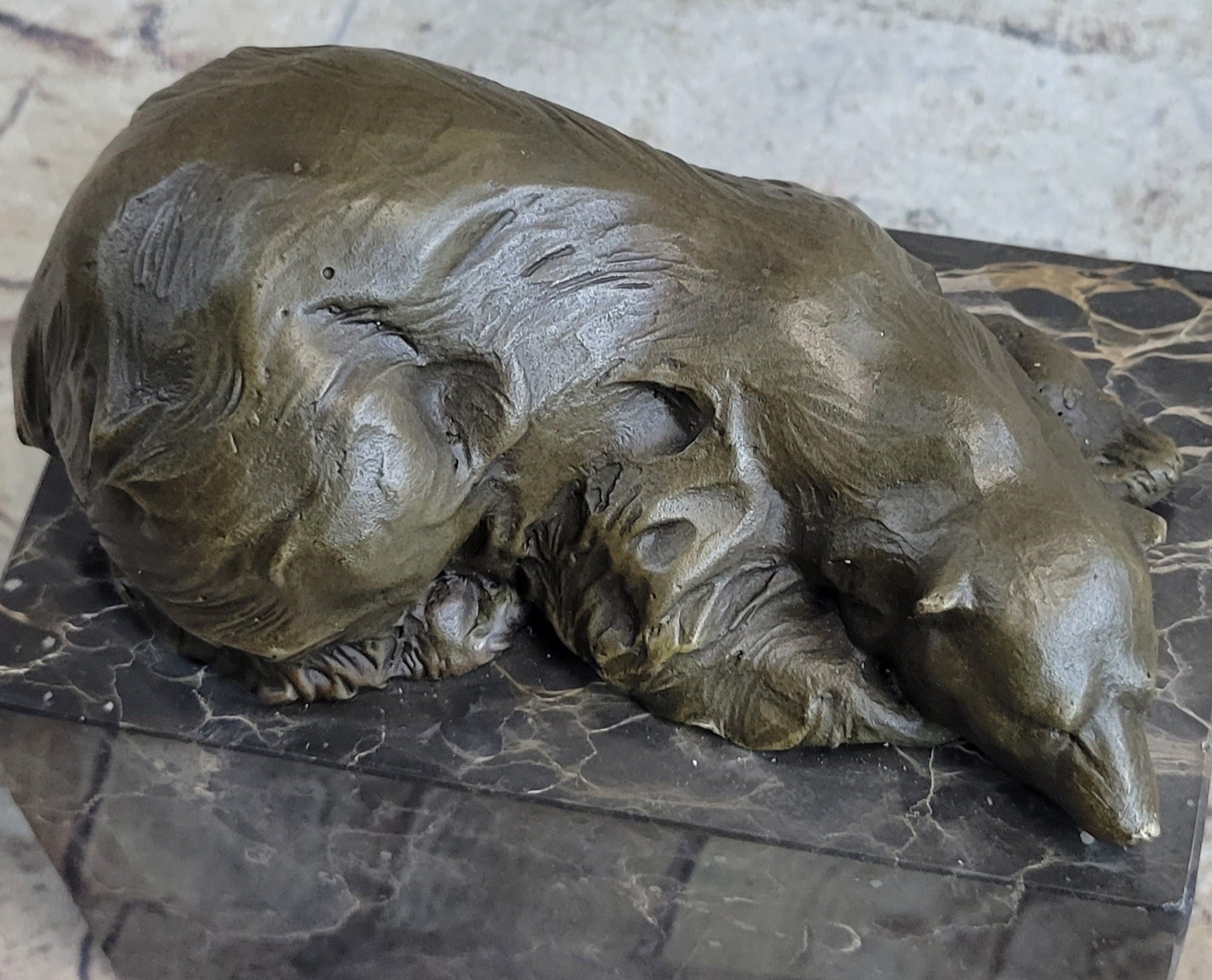 Signed Original Milo Polar Bear Bronze Sculpture Marble Base Figurine Figure Art