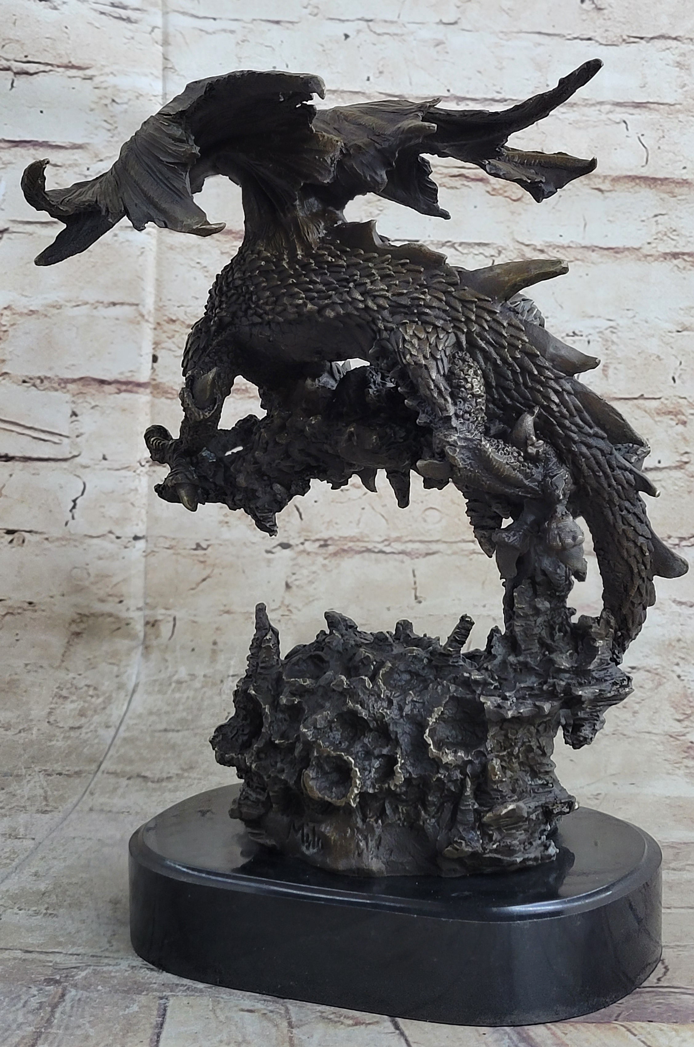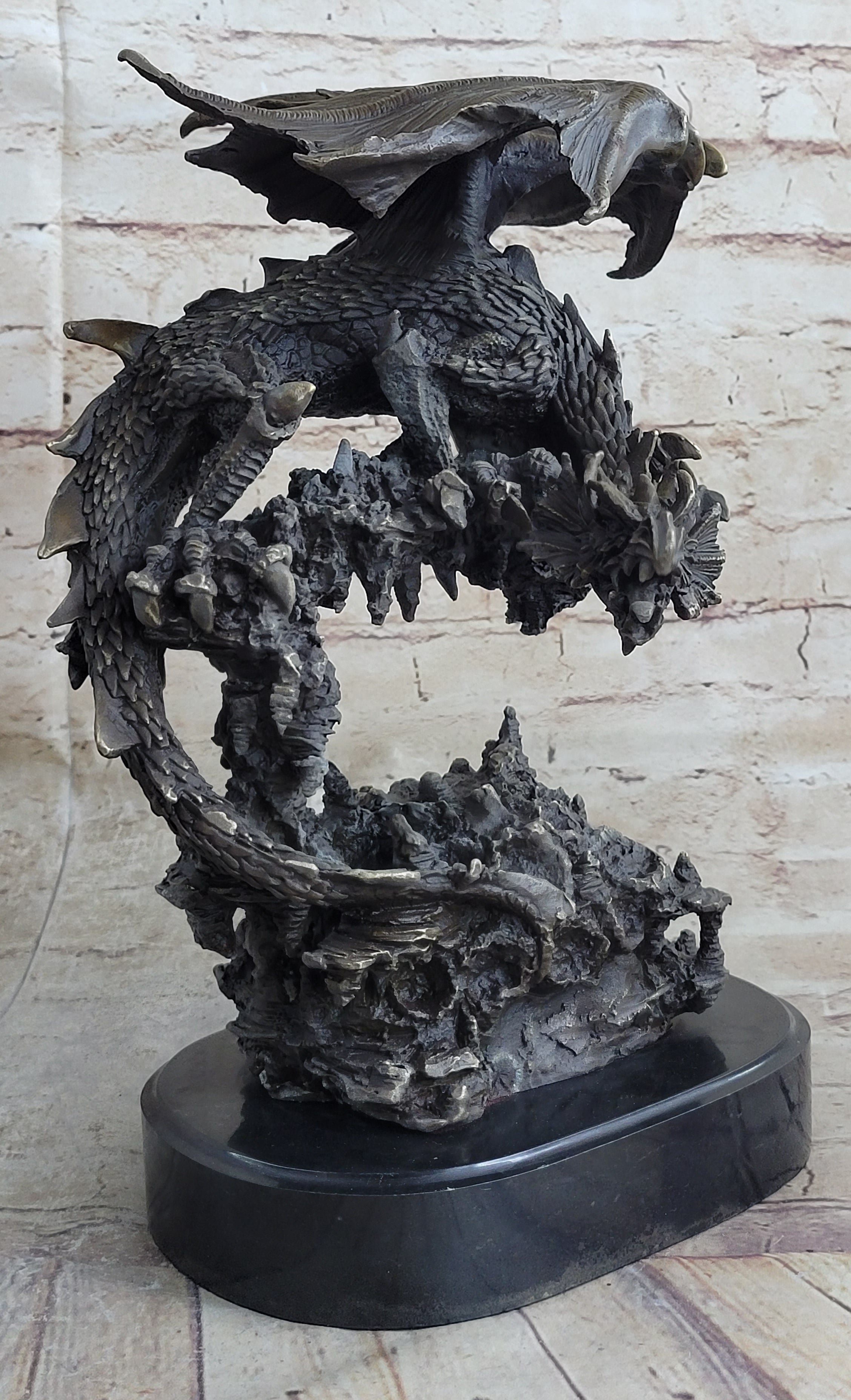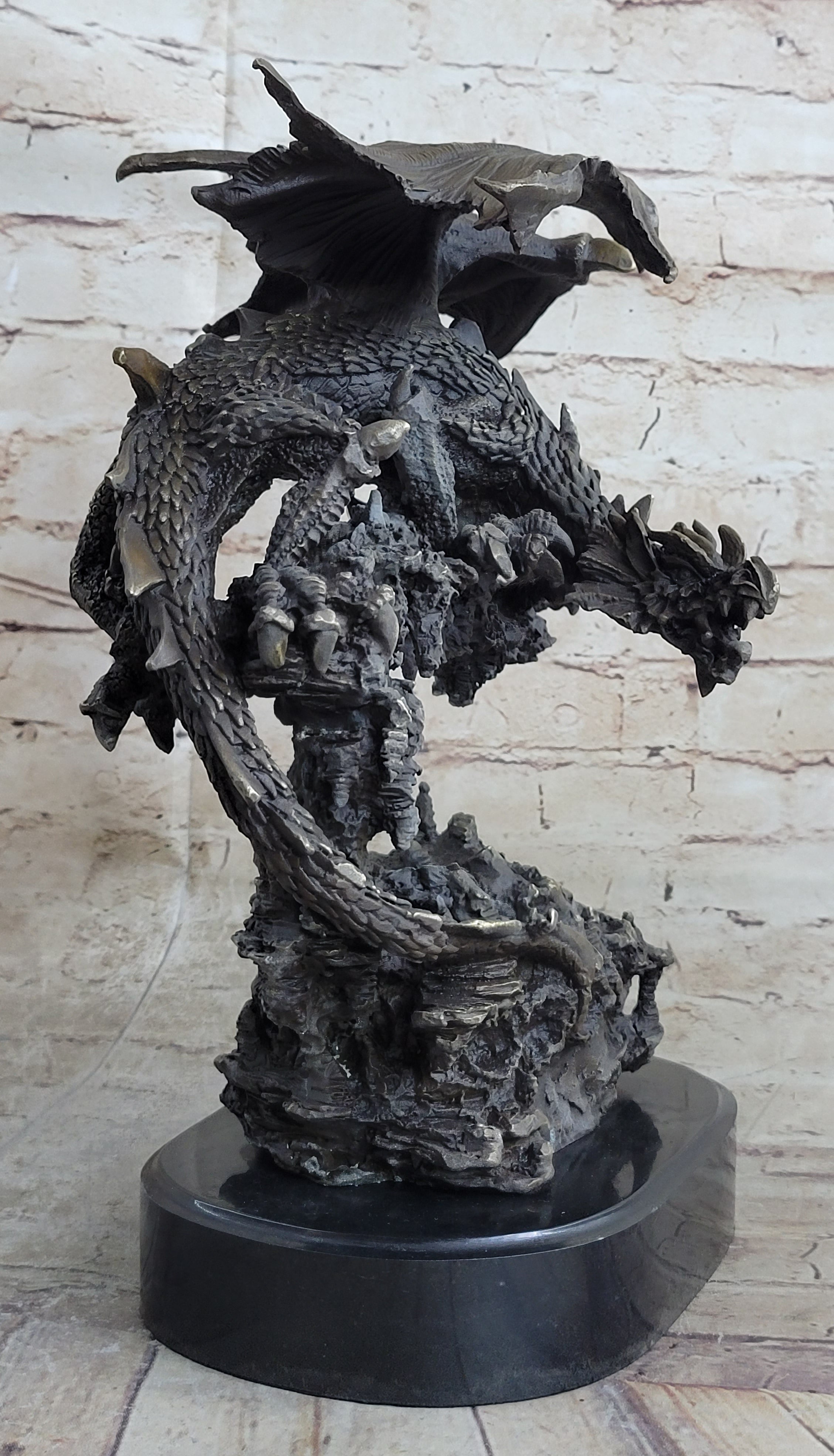 Signed Original Mythical Flying Dragon Bronze Sculpture Statue Hand Crafted Sale