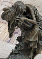 Signed Original Naked Lady Resting Bronze Sculpture Marble Base Figurine Figure