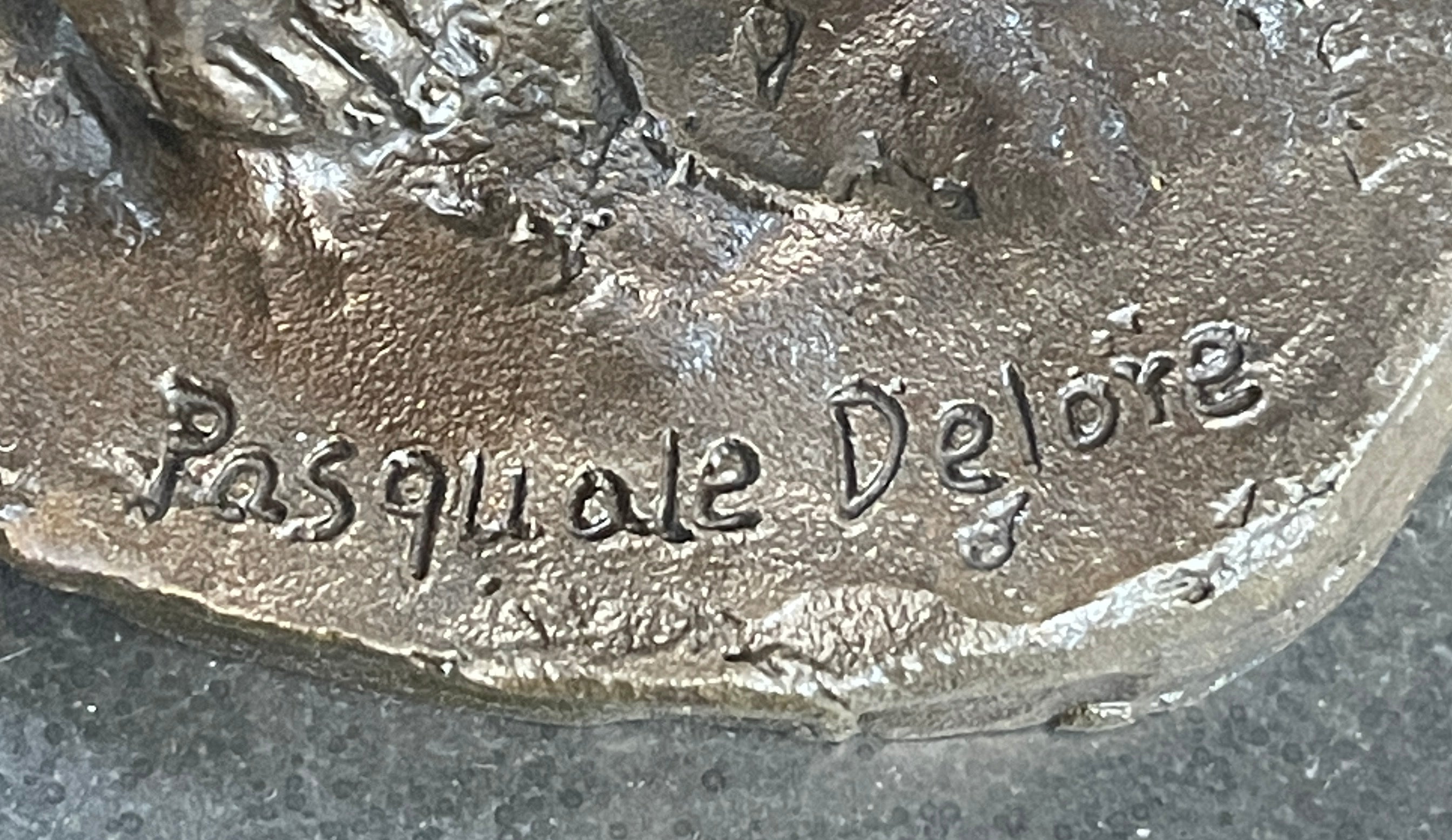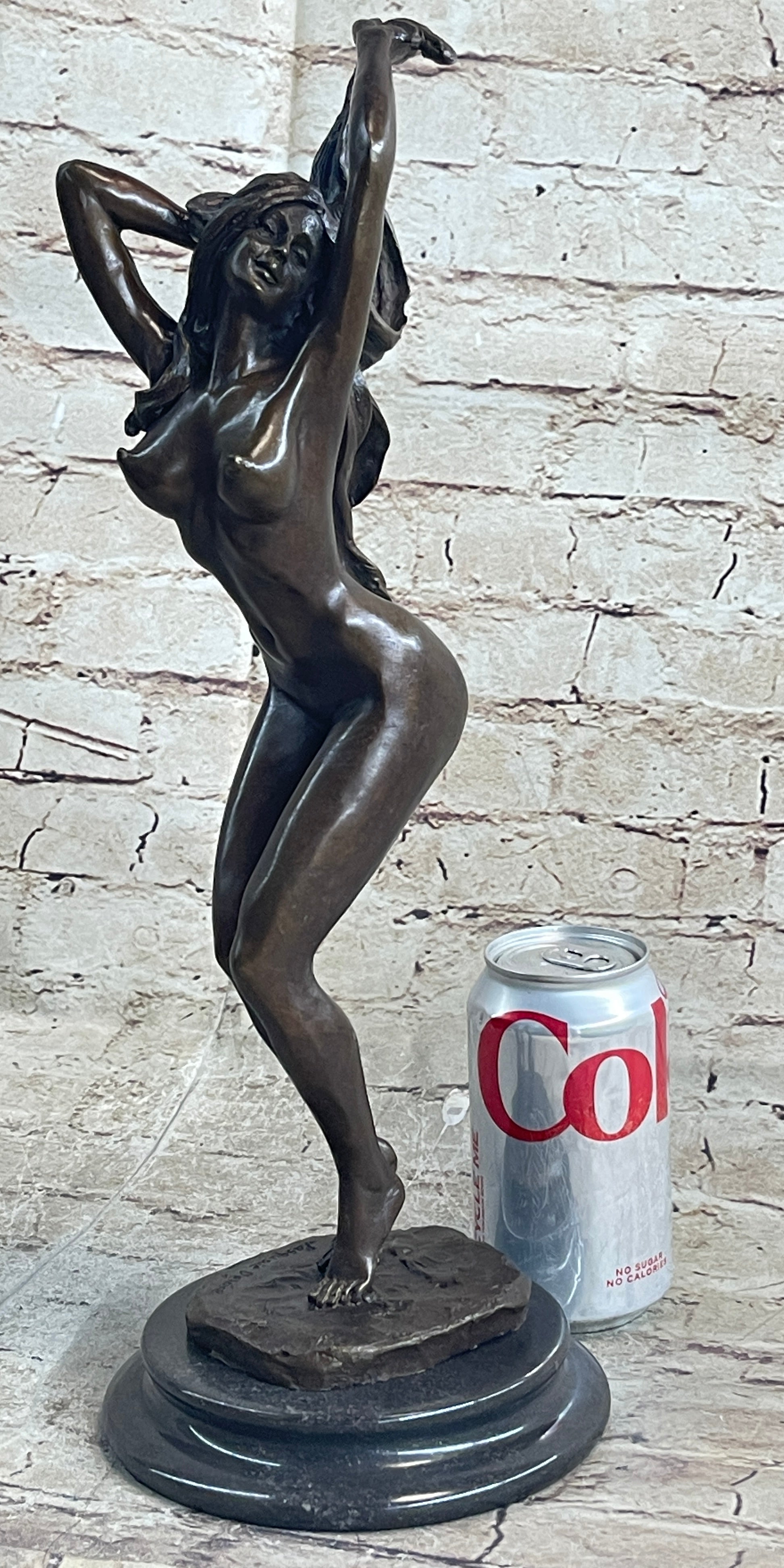 Crafted using the lost-wax casting method and finished with a rich brown patina, this bronze vixen stands proudly on a black marble square base. The artist Pasquale Delore's signature adds authenticity to this exquisite piece of art. Whether displayed in a private space or shared with an audience, this sculpture is a celebration of sensuality and a testament to the artistry of the human form.Bronze Dimensions with Marble Base: Height 16" X Width 6"