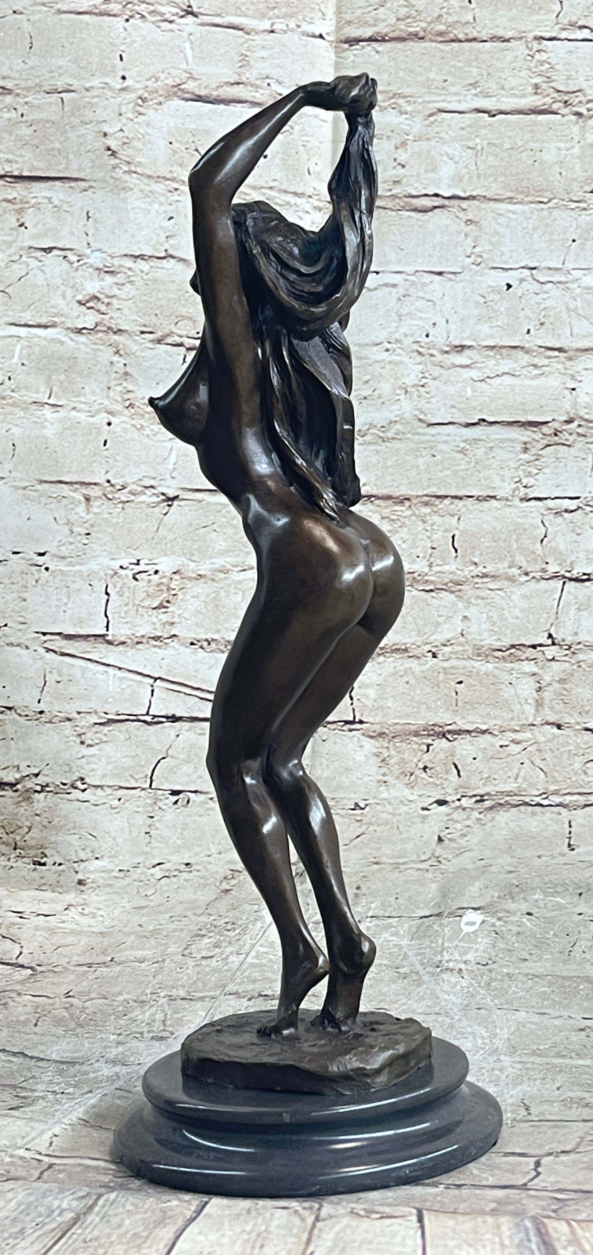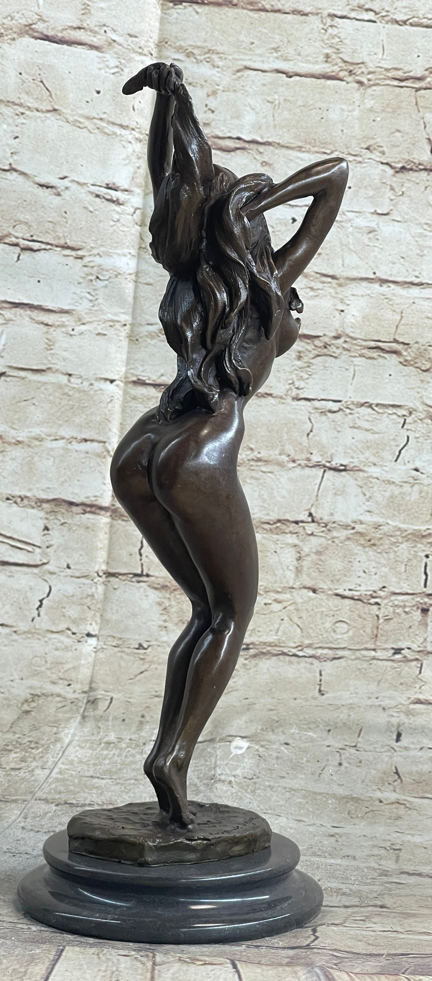 As her body twists and turns, her arms gracefully rise above her head, and her facial expression reveals the intensity of her emotions. Her arousal is palpable, a celebration of her own sexuality and a tantalizing invitation to the audience watching her performance. This sculpture masterfully captures the raw power of feminine allure and the captivating beauty of self-expression.