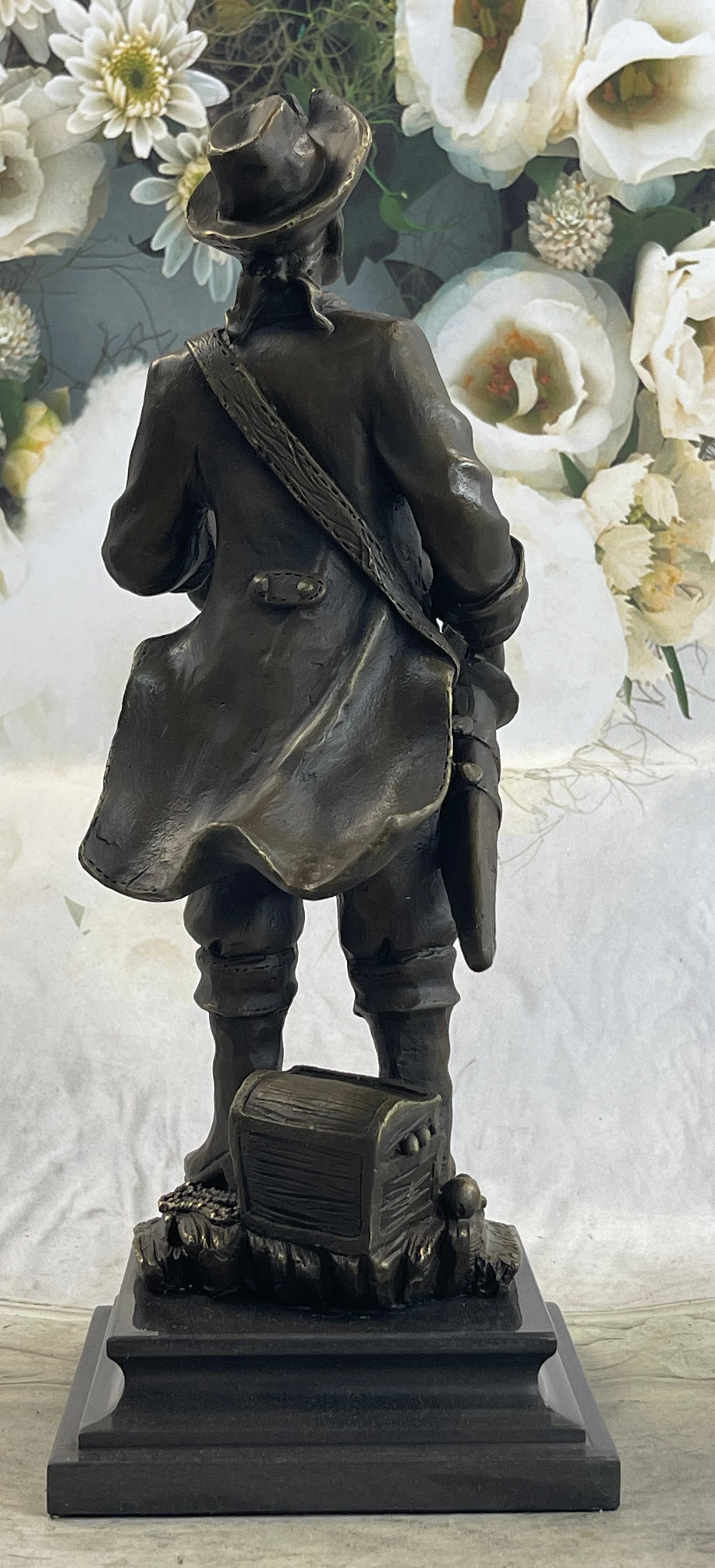 Pirate With Treasure Chest and Sword Bronze Sculpture Statue Signed Original 14" x 5"