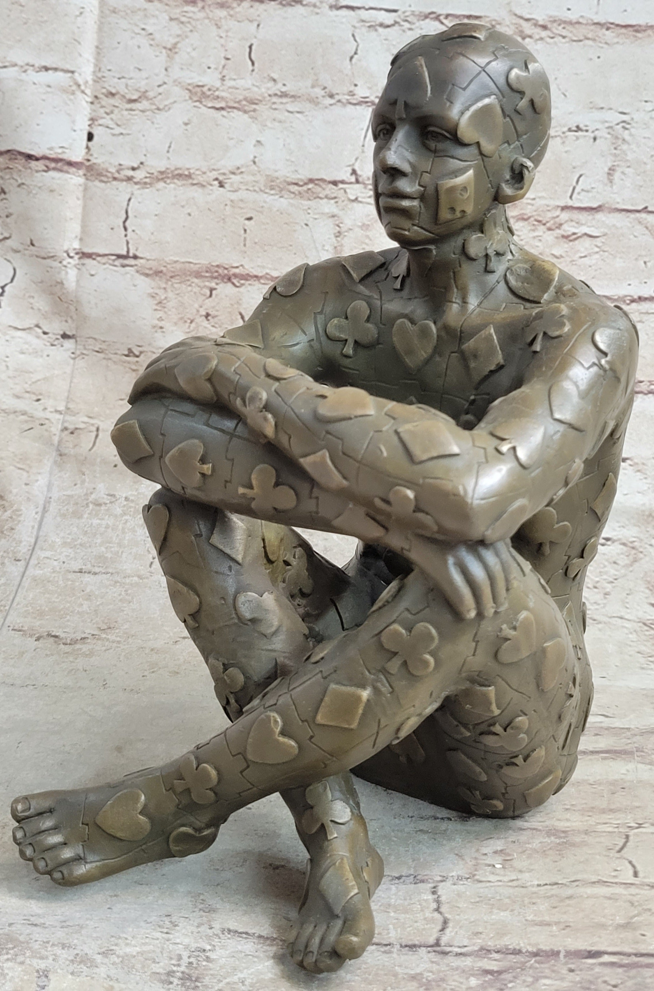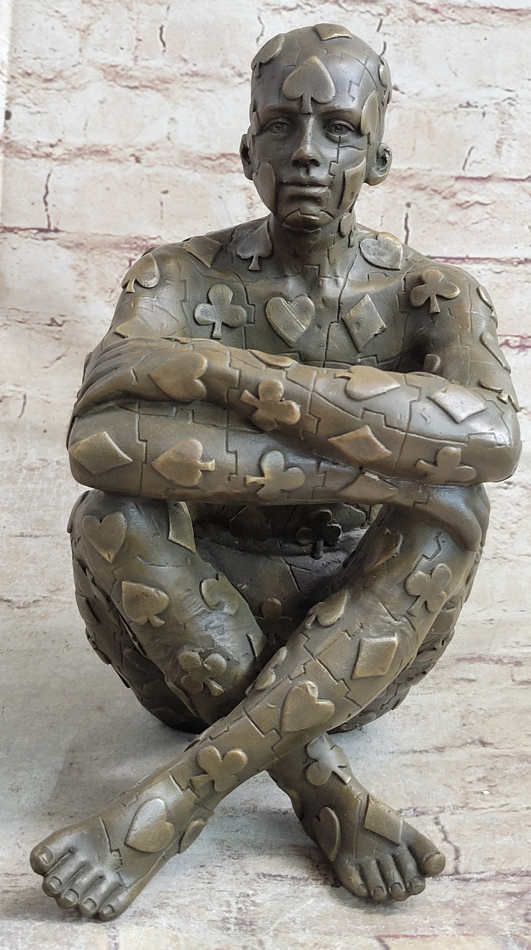 Evoke intrigue and ignite conversations with this captivating abstract sculpture that defies convention and pushes artistic boundaries. At its core is a seated figure, dressed in a poker-themed attire, exuding an air of both confidence and mystery. The sculpture dares to venture beyond the ordinary, with the man's strong legs and physique taking center stage, while the rest of his form transforms into an intricate composition of geometric shapes. These shapes hint at the inner complexities of the human experience, inviting viewers to contemplate the interplay between the external and internal realms.