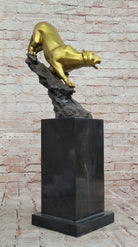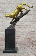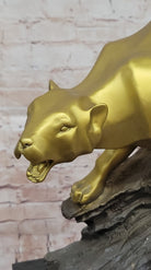 Golden Bronze Panther Statue - Dynamic Wildlife Sculpture Decor