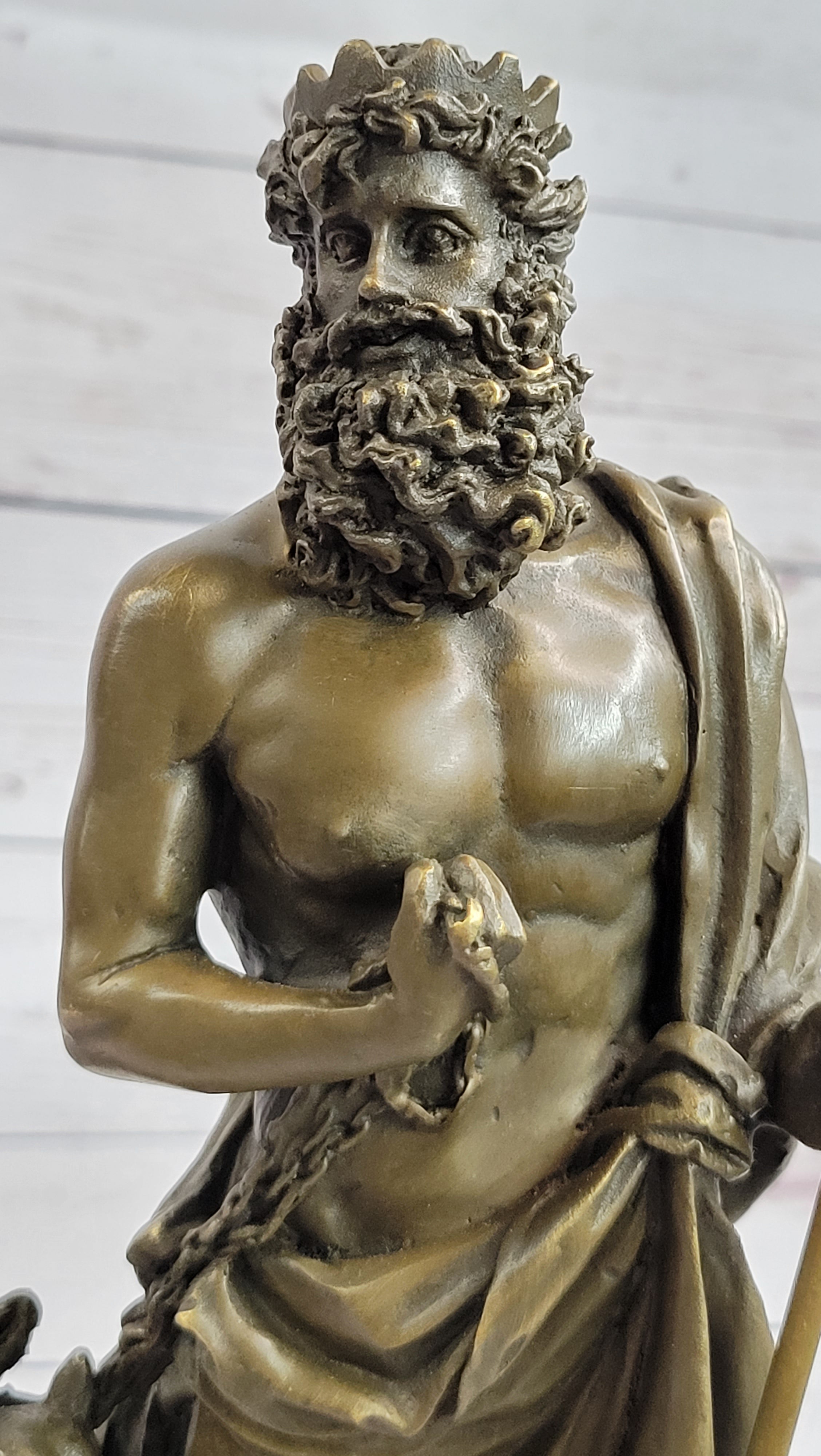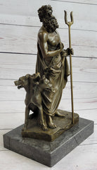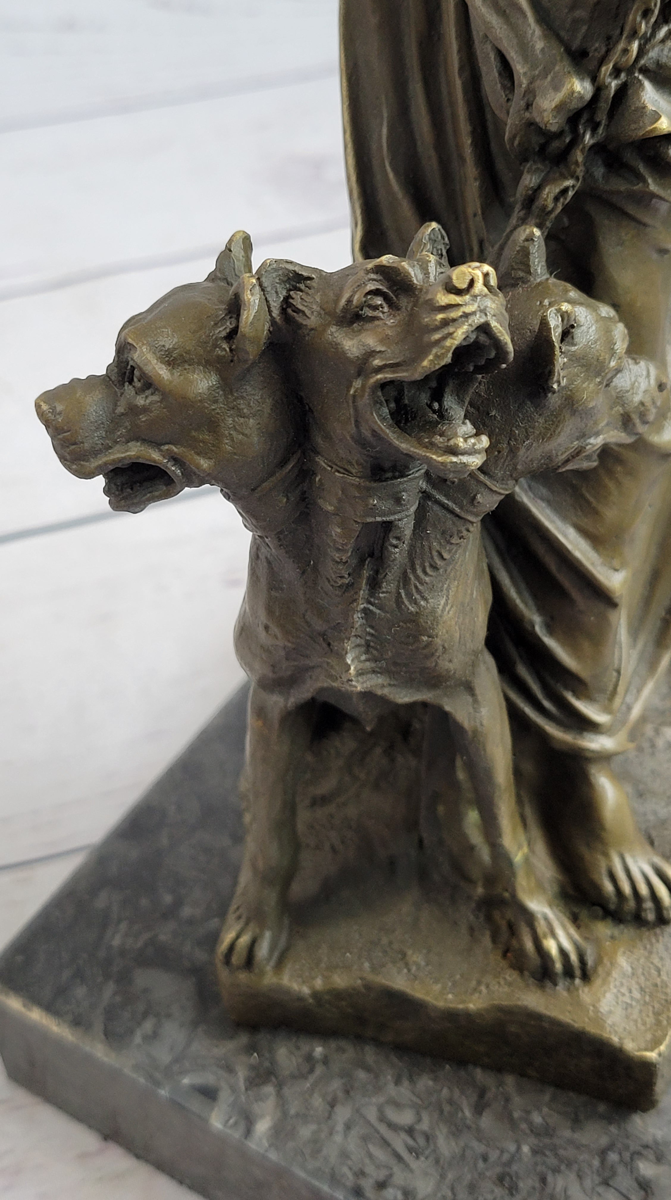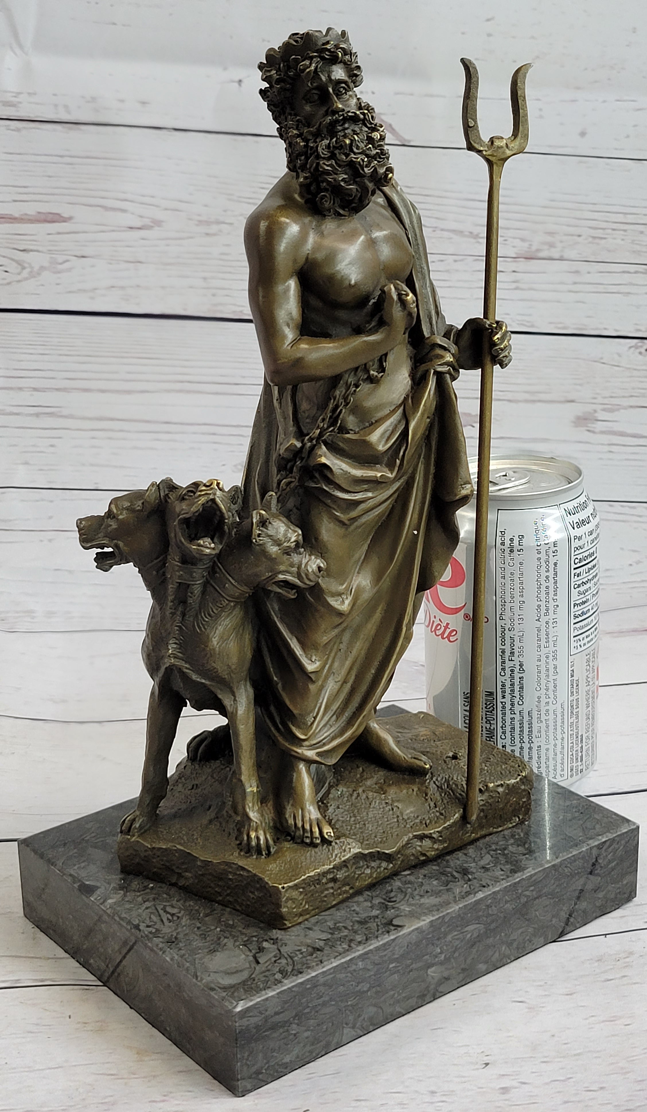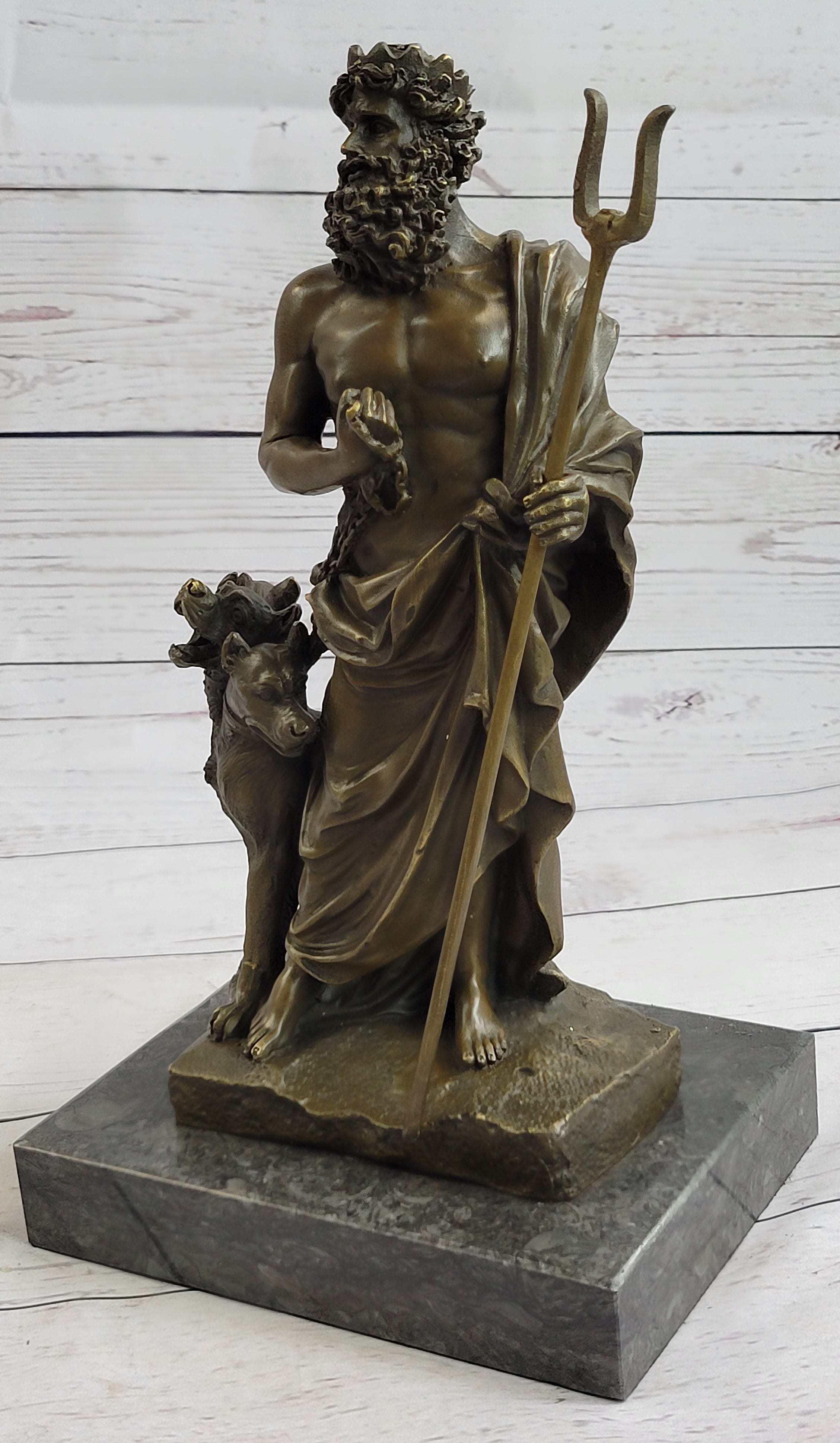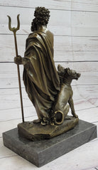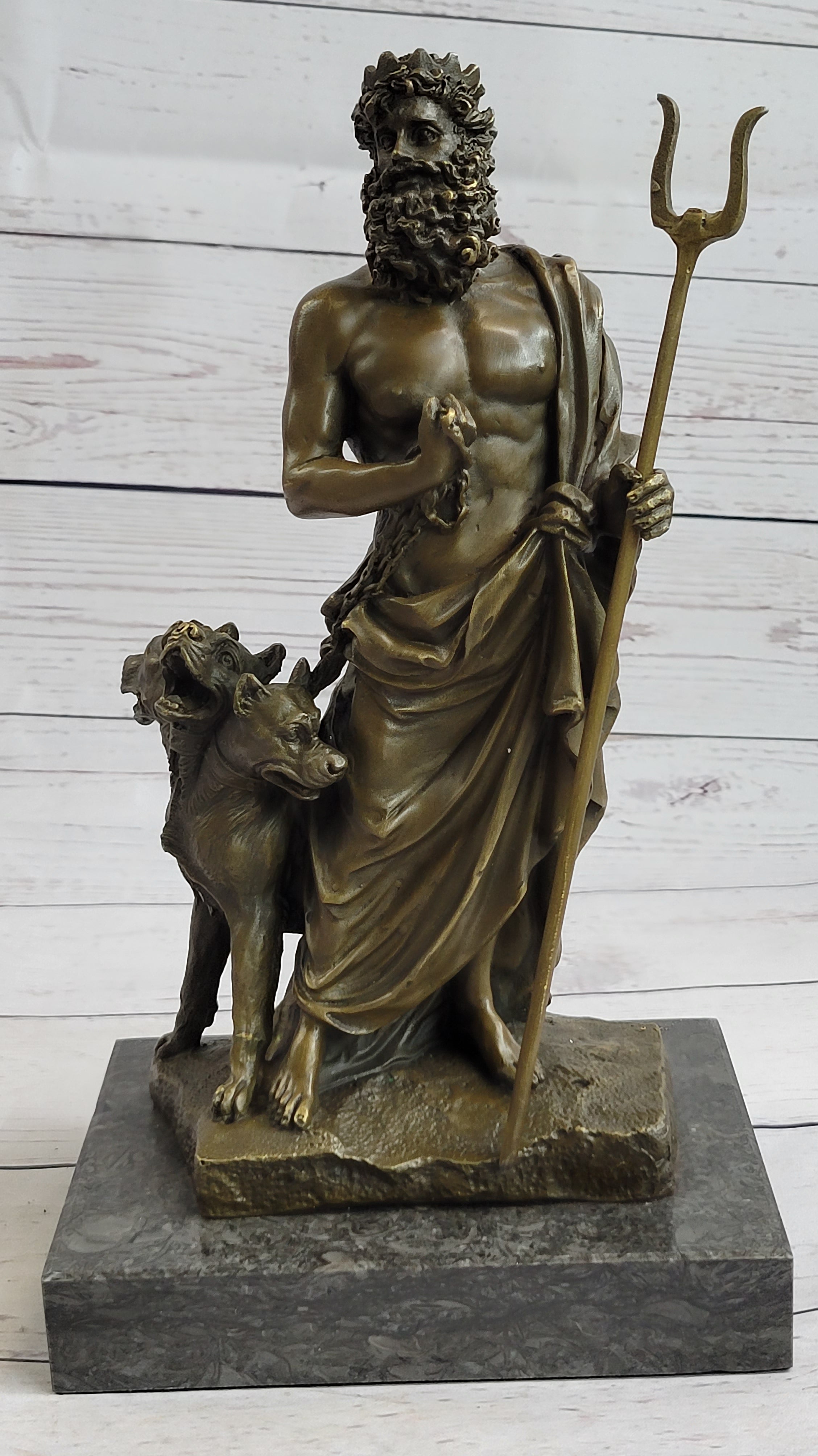 Signed Phidas Hades Pluto with 3 Headed Dog Mythical Bronze Sculpture Statue Art