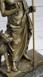 The portrayal of Hades and Cerberus captures the essence of Greek mythology, inviting viewers to explore the depths of this ancient and rich narrative. With its commanding presence and the symbolism it represents, this sculpture becomes a captivating centerpiece that adds depth and historical significance to any setting. It serves as a testament to the enduring fascination with Greek mythology and the craftsmanship that brings these stories to life in bronze artistry.Bronze Dimensions with Marble Base: Height 11" X Width 6 1/2"