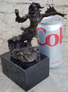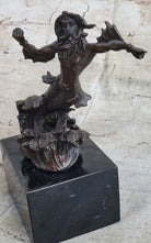 Signed Poseidon God of Sea Bronze Bookend Book End Sculpture Marble Base Statue