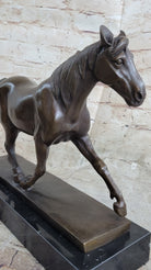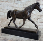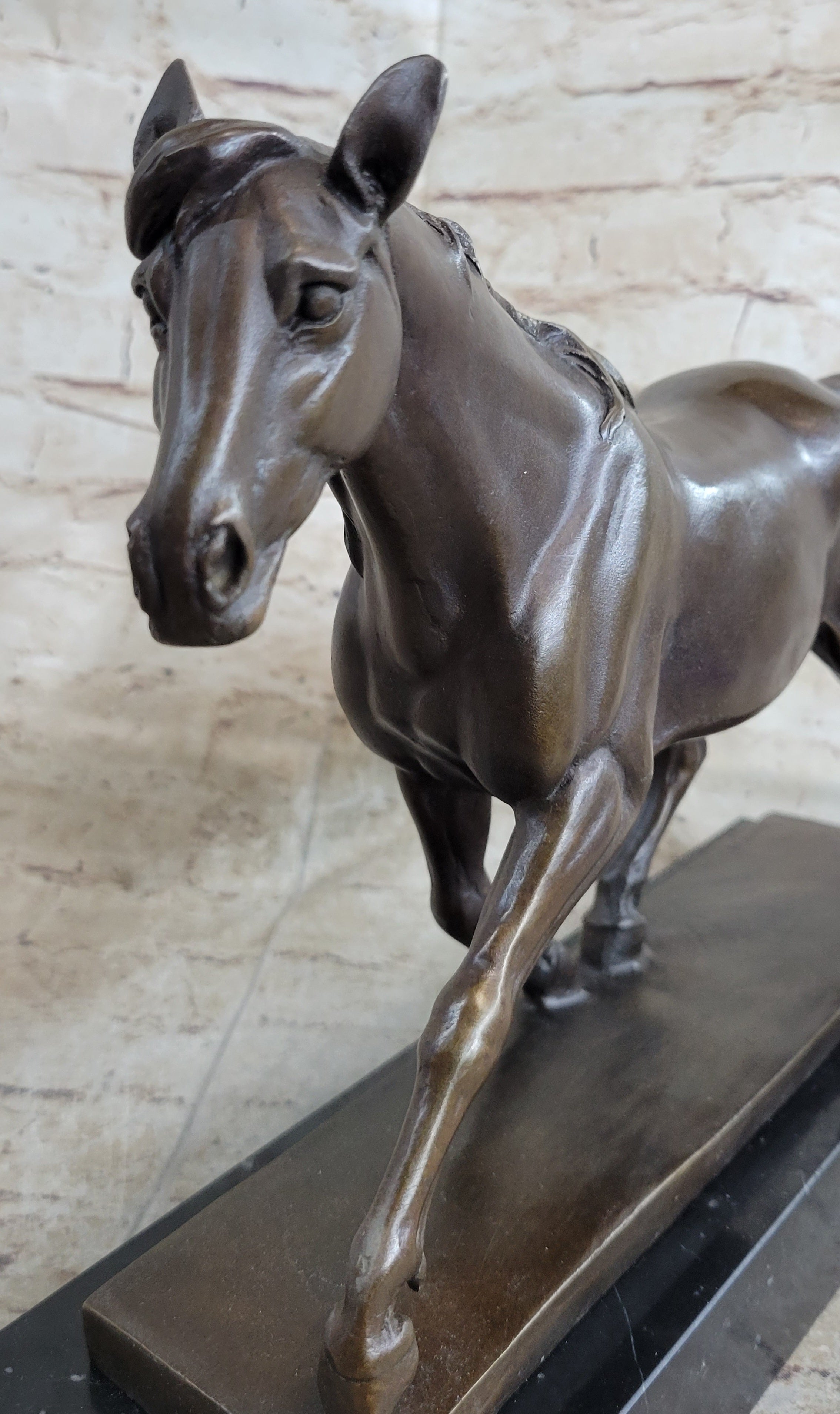Signed Prosper Lecourtier Racing Horse Stallion Hot Cast Sculpture Marble Base
