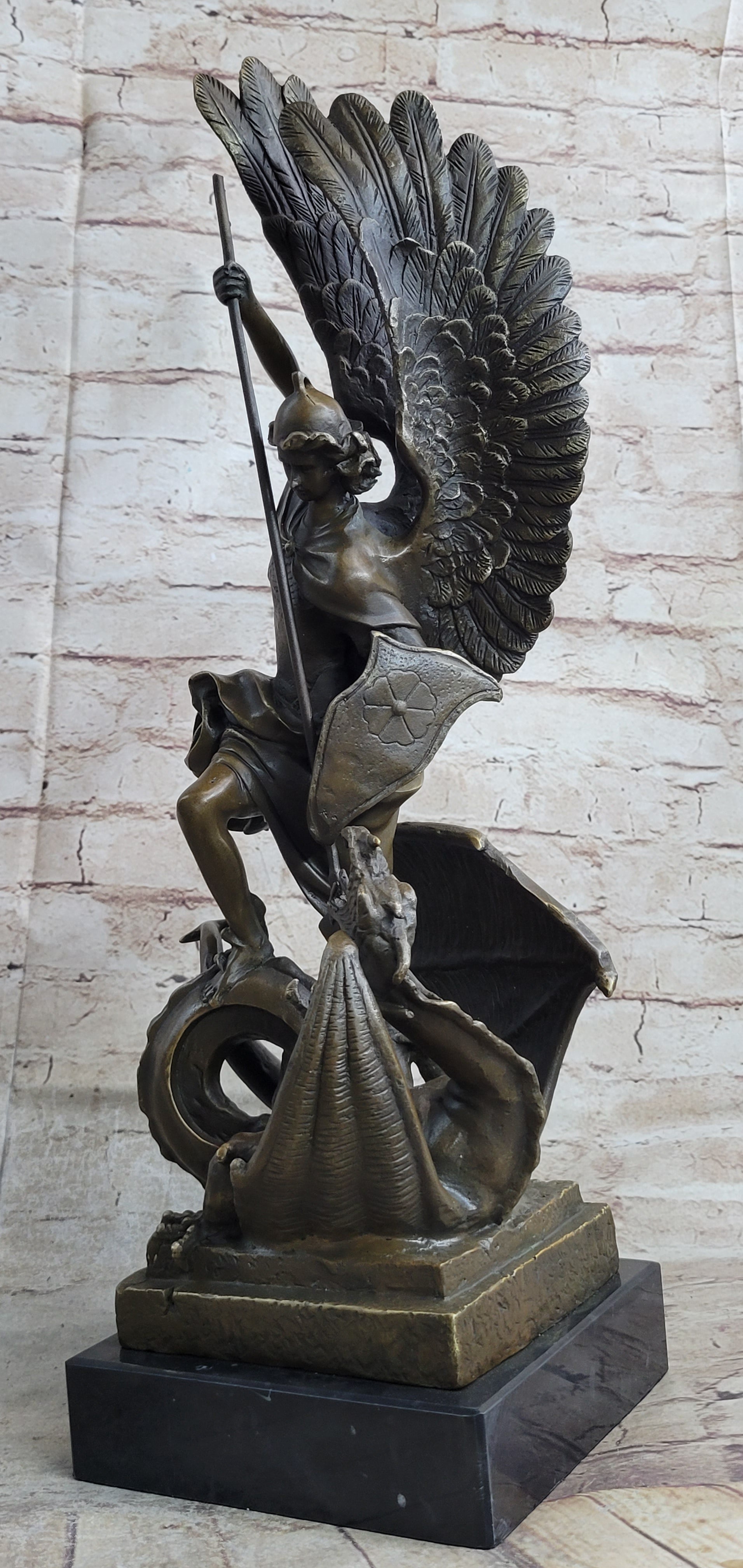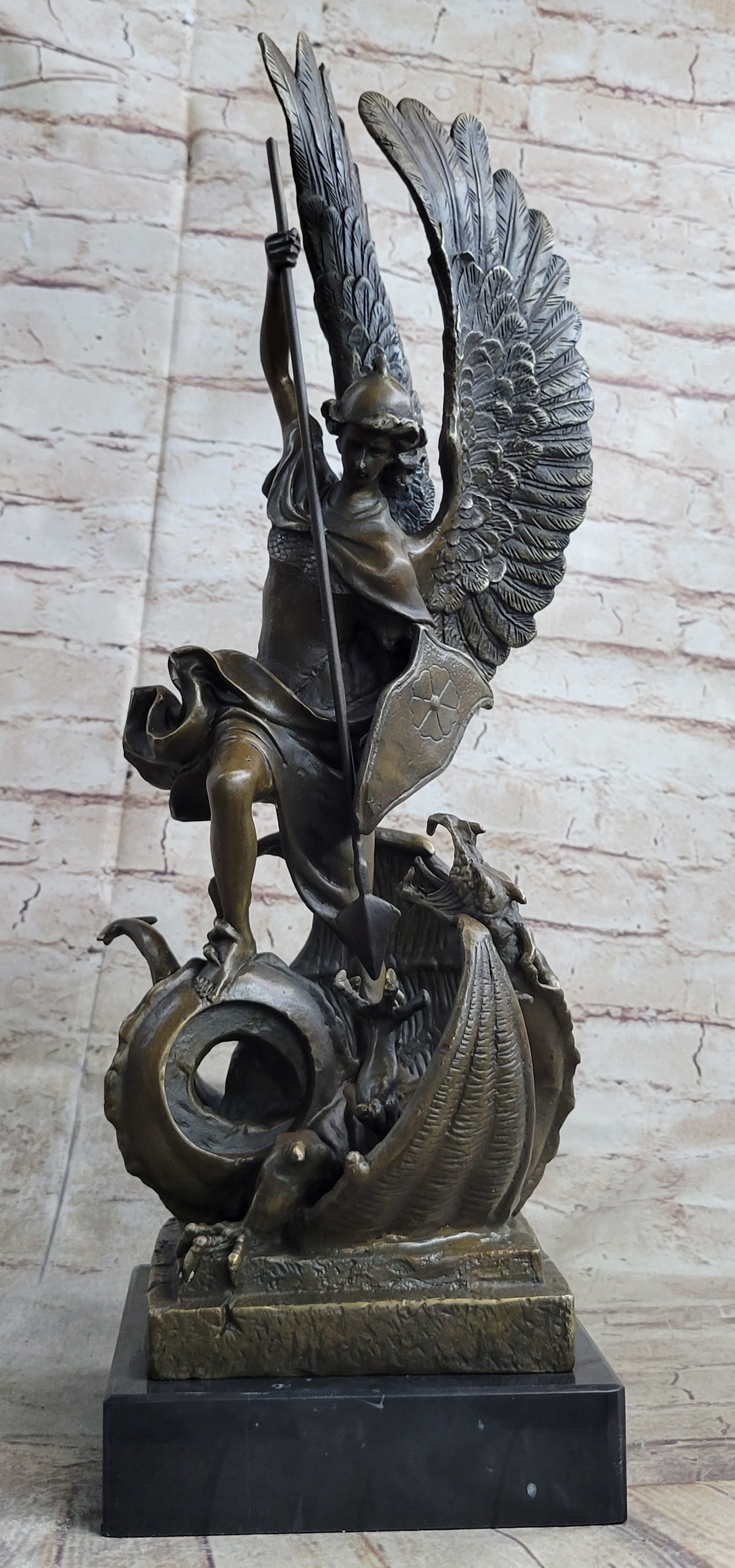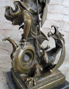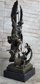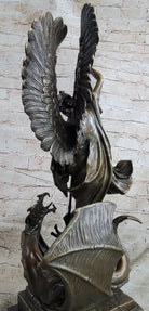 Signed Saint George killing Dragon Bronze Sculpture Art Statue Figure Figurine