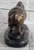 Rhinos, ancient inhabitants of our planet for millions of years, exhibit a fascinating and primitive appearance that seems to echo from another time. The remarkable craftsmanship showcased in this sculpture skillfully captures the distinctive features of these magnificent creatures. The intricacies of the thick skin and the rugged ridges that form as the rhinoceros shifts in movement are meticulously depicted, providing a lifelike representation of their unique characteristics. The attention to detail highlights the mastery involved in creating this piece, ensuring a true-to-life portrayal of the rhinoceros's natural form. In this sculpture, the rhino's head gracefully nudges the surface of the rock on which it stands, allowing its horn to touch the ground, creating a dynamic and visually striking composition. The choice of a black marble base serves not only as a stable foundation but also mirrors the shape of the rock beneath the rhinoceros, enhancing the overall aesthetic appeal. The seamless integration of the sculpture with its base adds to the authenticity of the piece, capturing the essence of the rhinoceros in its natural habitat. Signed by Salvador Dali, this artwork carries the mark of a renowned artist, elevating its significance and value. Crafted using the lost wax method, a technique that has been employed for centuries in creating bronze sculptures, this piece attains a level of detail and precision that is synonymous with fine art. The combination of skillful artistry and a time-honored crafting method ensures that this sculpture stands as a testament to the enduring legacy of both the rhinoceros' species and the artistic traditions that bring them to life.