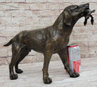 Capture the essence of nature's majesty with this remarkable bronze sculpture depicting a hunting dog with a captured bird. Every aspect of this stunning piece is meticulously crafted to showcase the grace and power of the dog in its natural element. The dog's alert stance and focused gaze convey a sense of unwavering determination, while the delicate details of the bird lend a touch of realism to the scene.