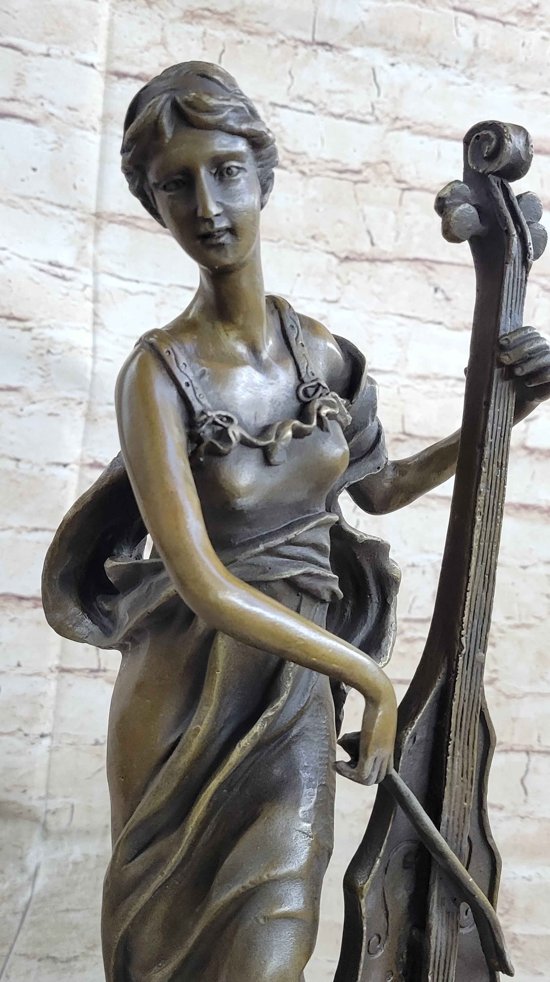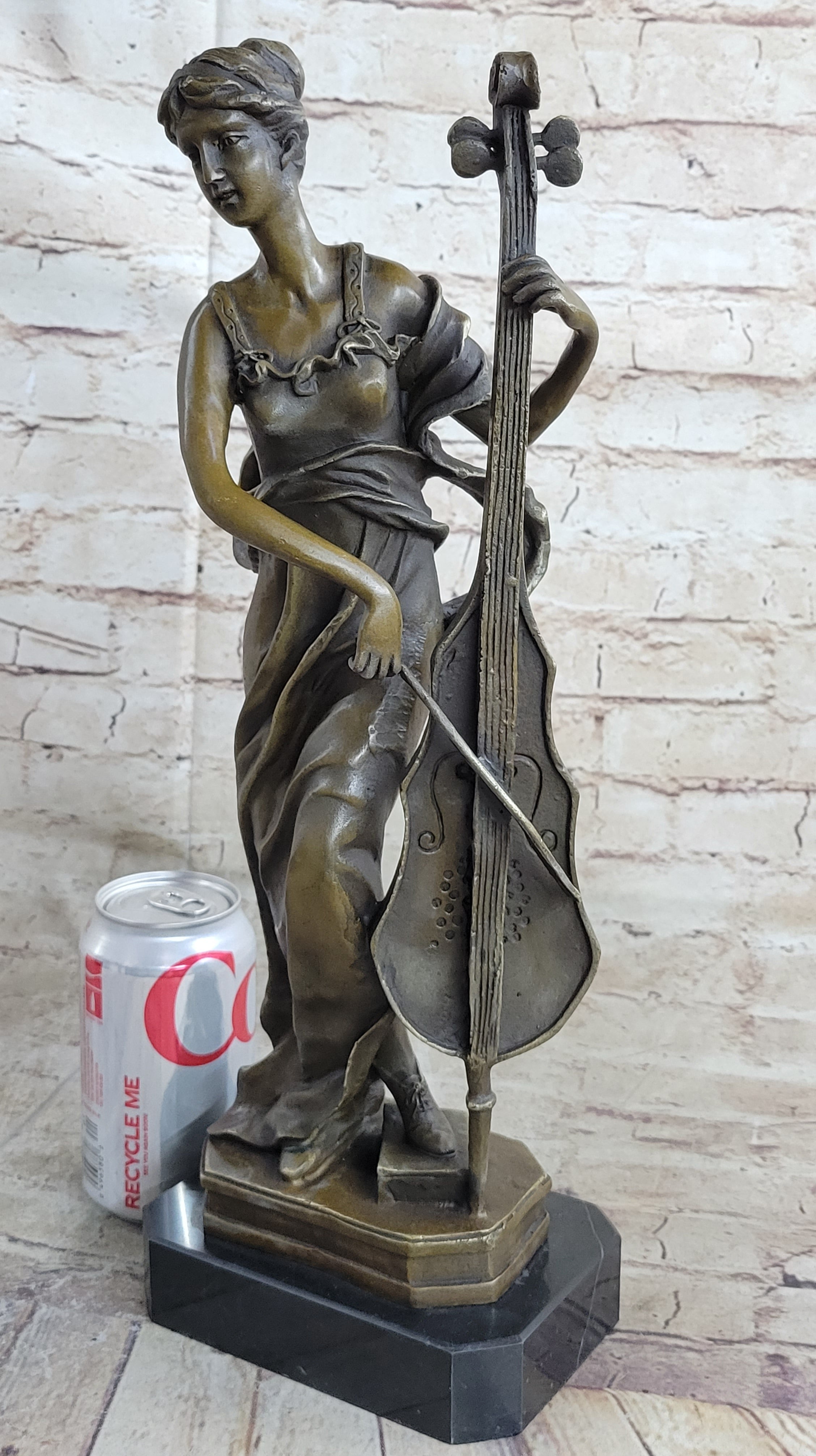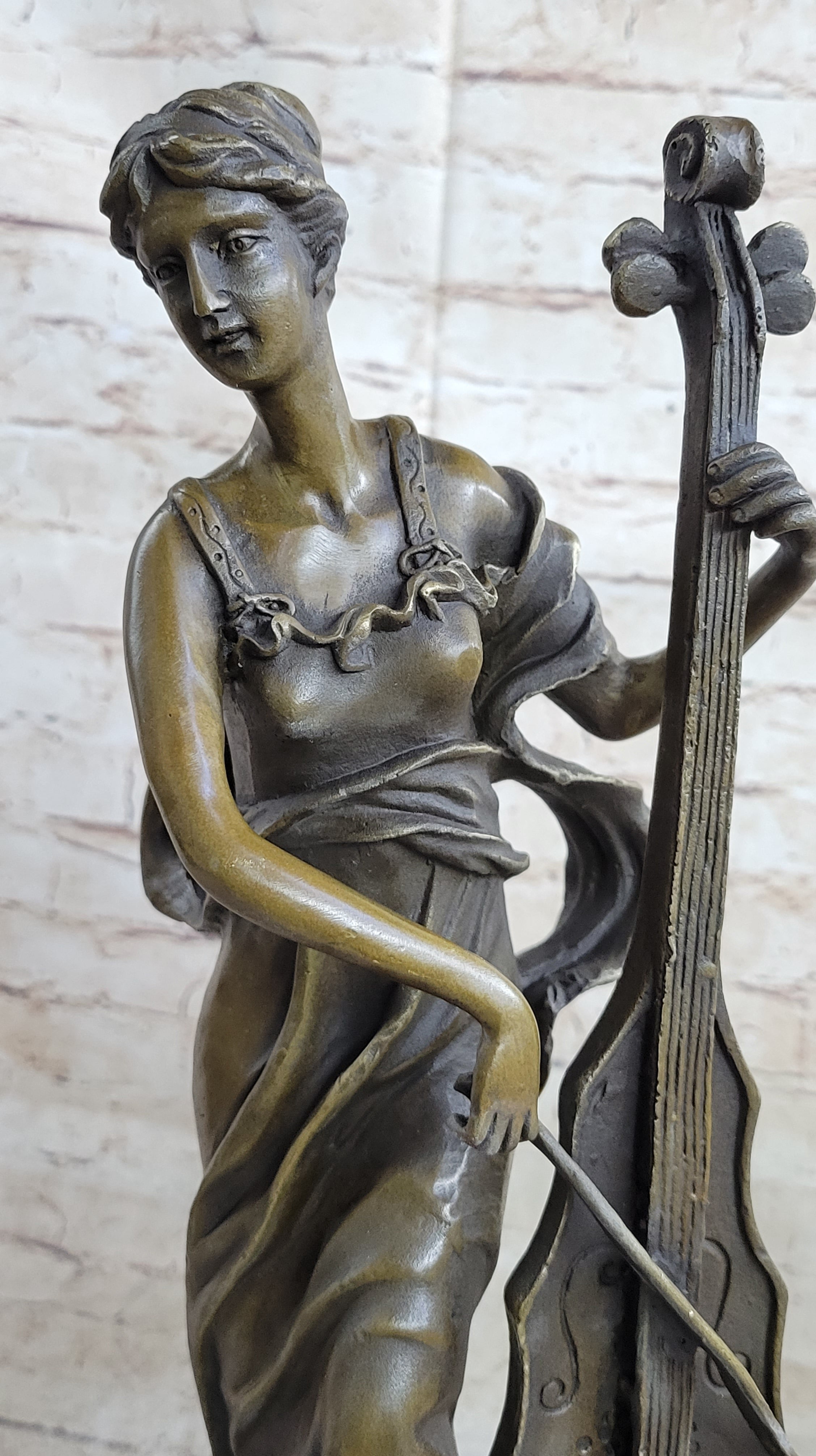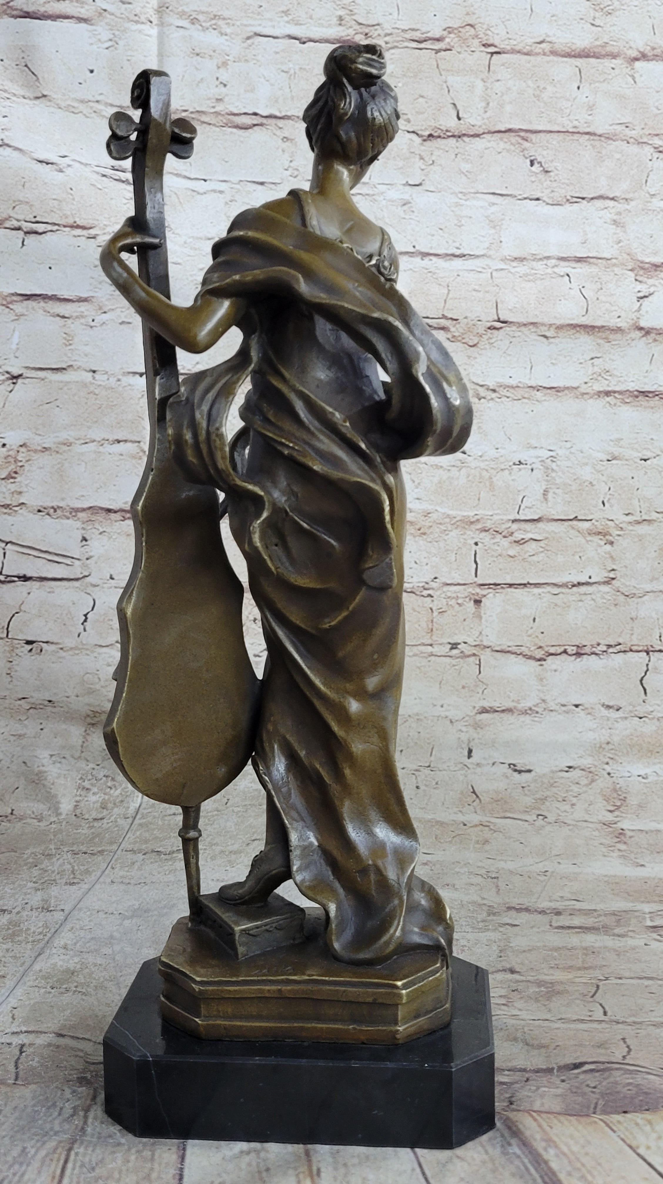 Signed Victorian Lady Playing Cello Bronze Marble Sculpture Statue Art Deco Gift