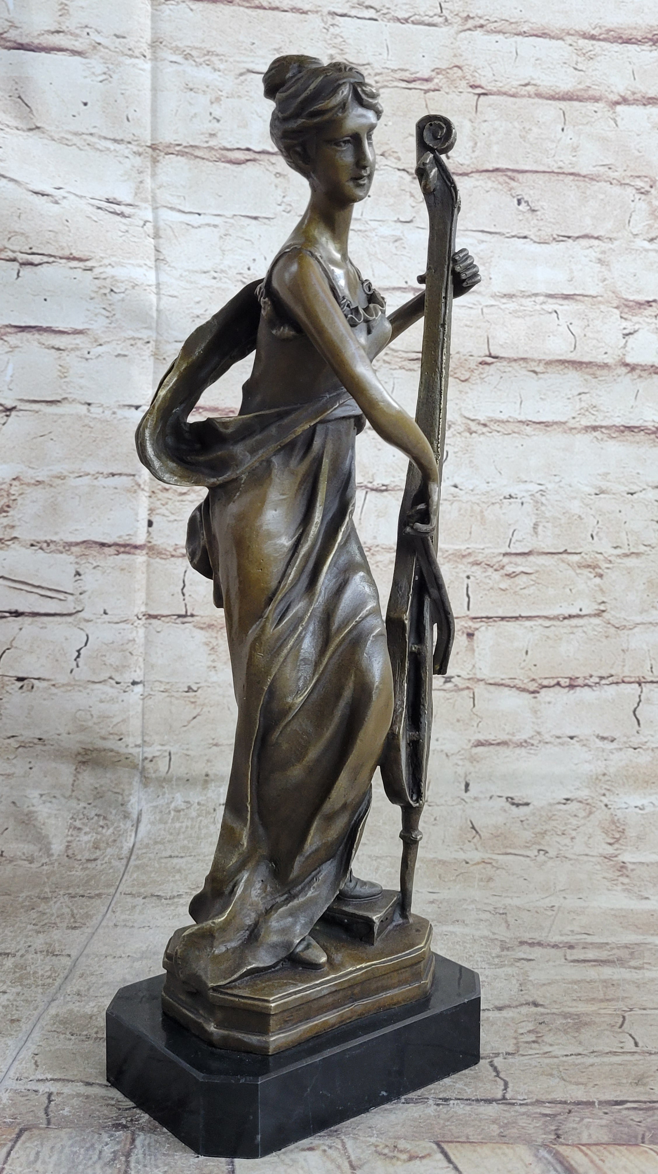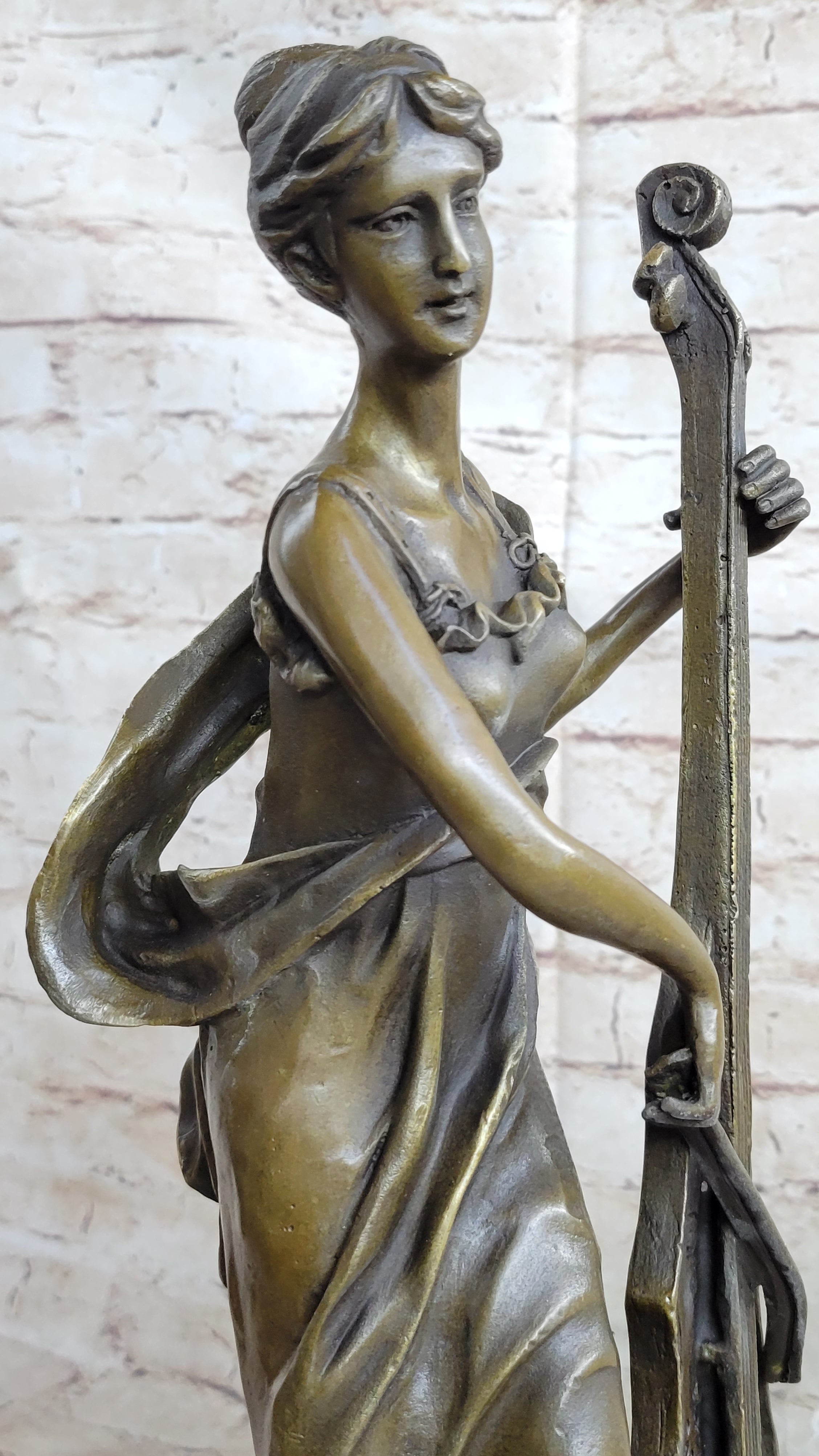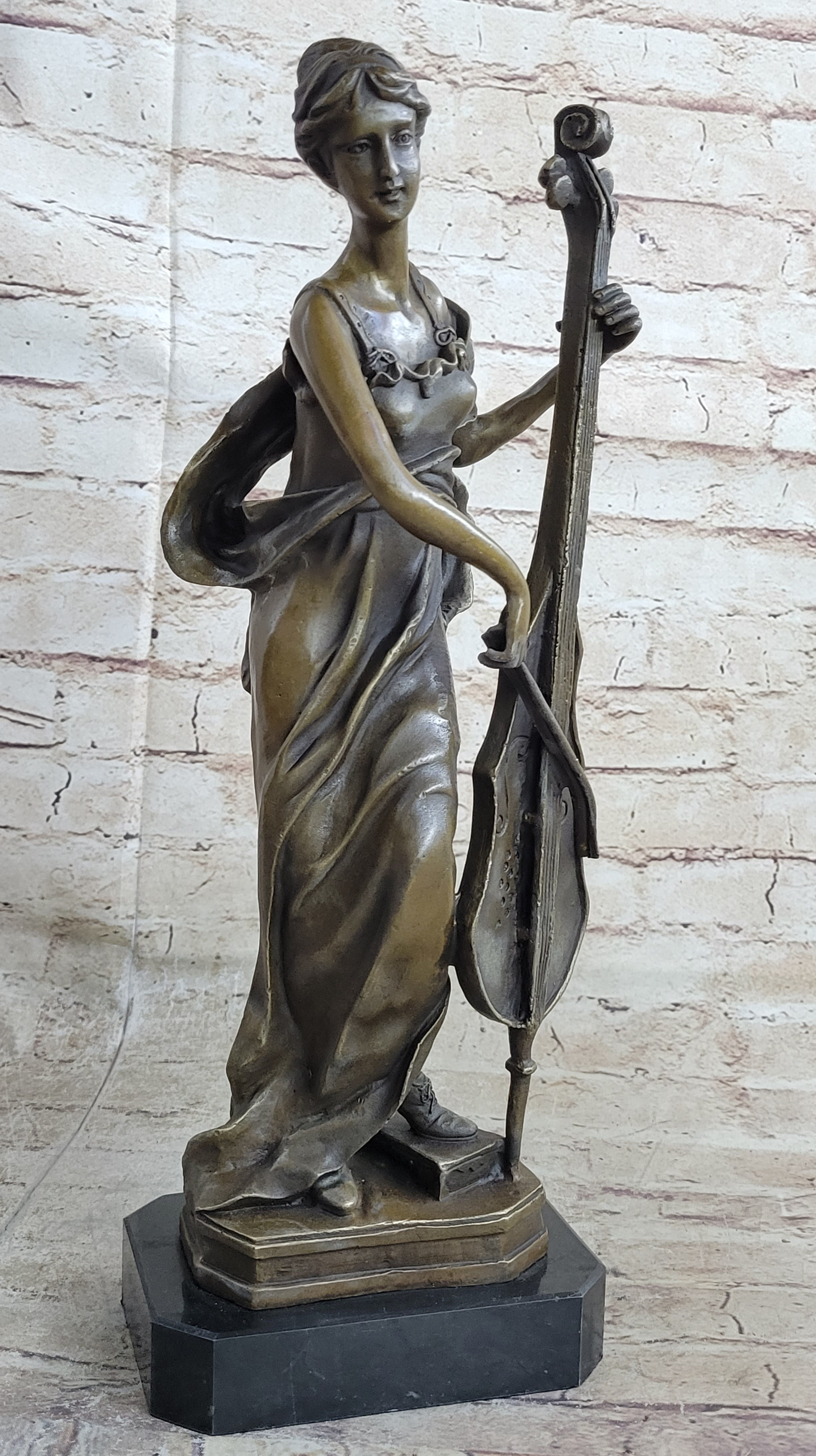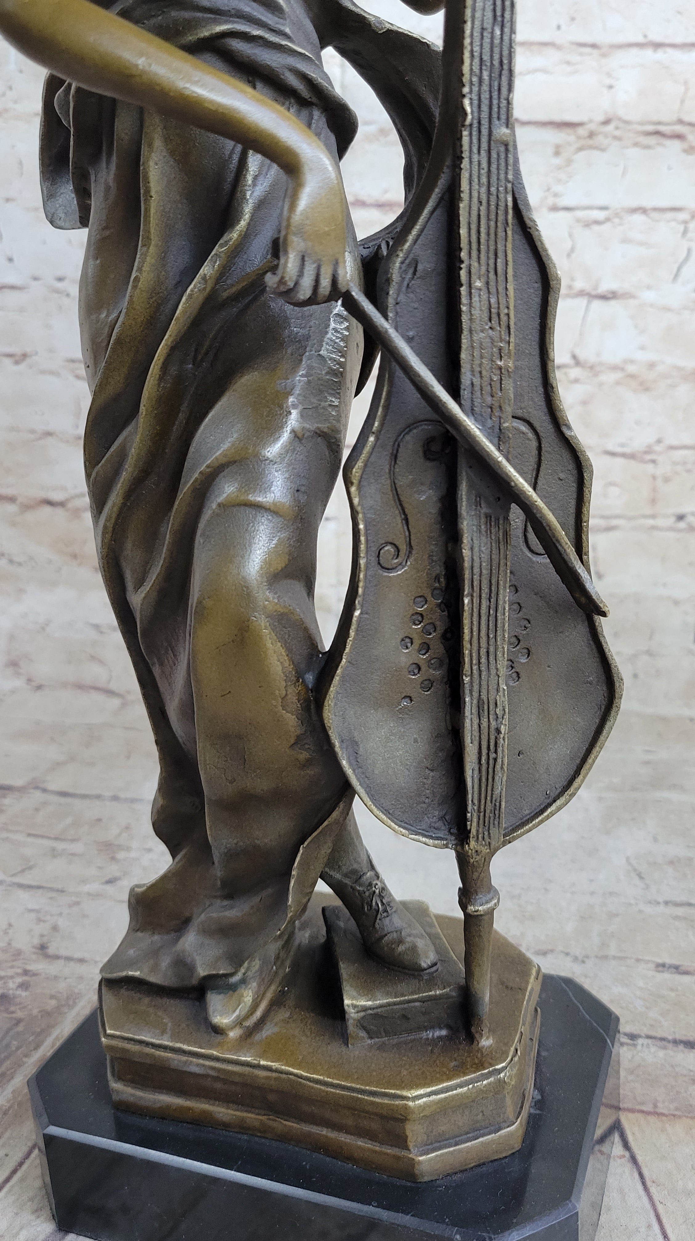 Signed Victorian Lady Playing Cello Bronze Marble Sculpture Statue Art Deco Gift