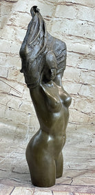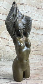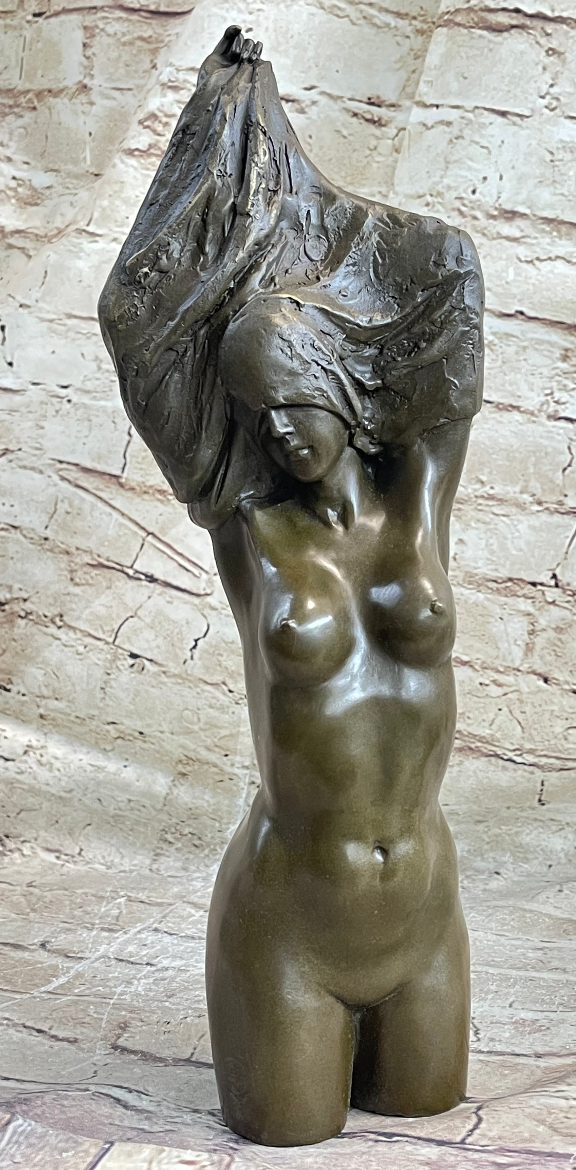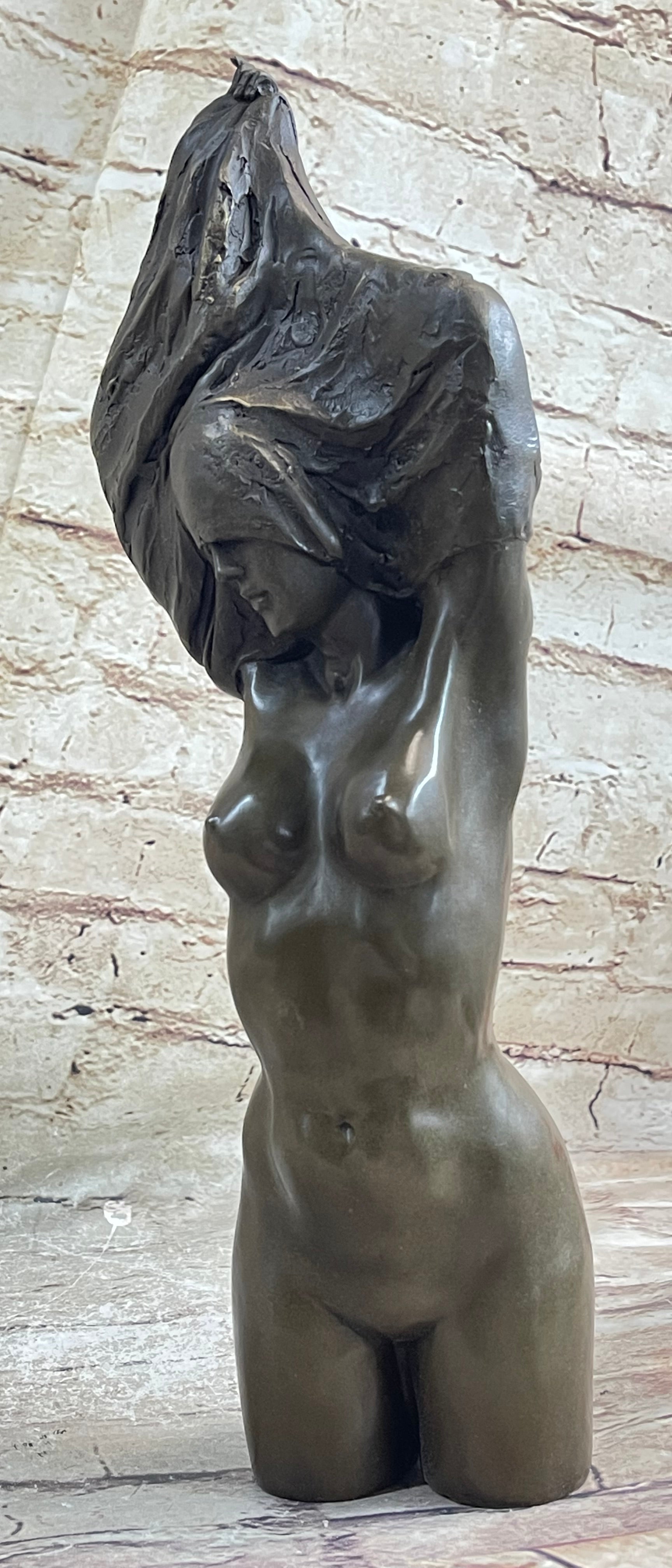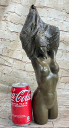 Nude Female Torso Taking off Shirt Bronze Figure Sculpture Statue Figurine Original Art 14" x 5"