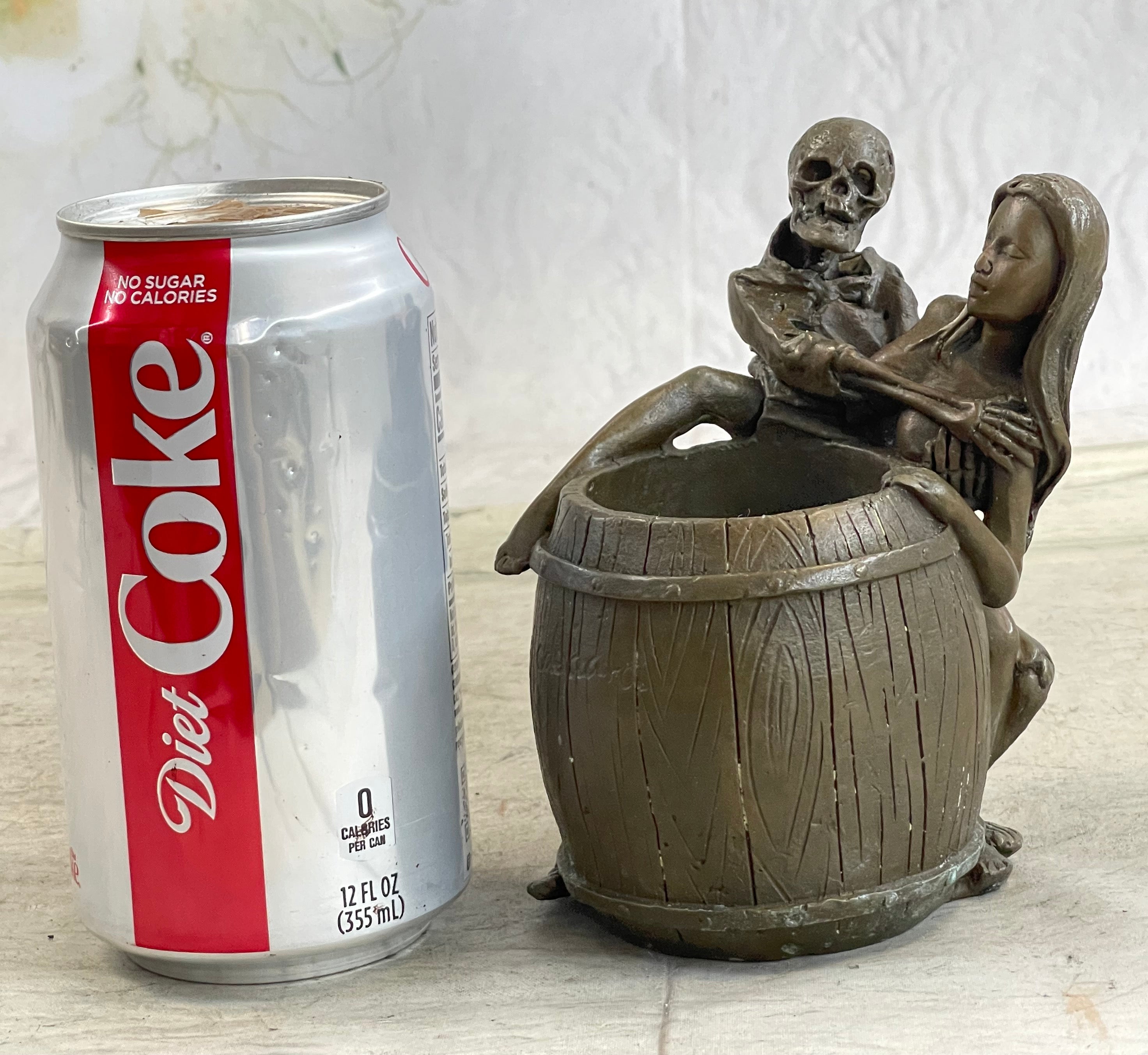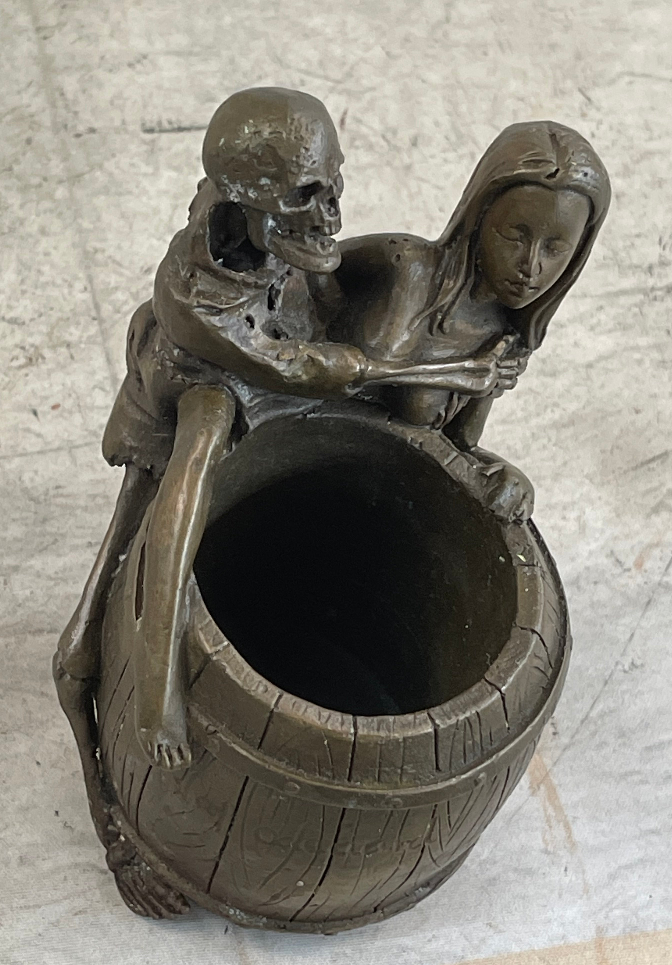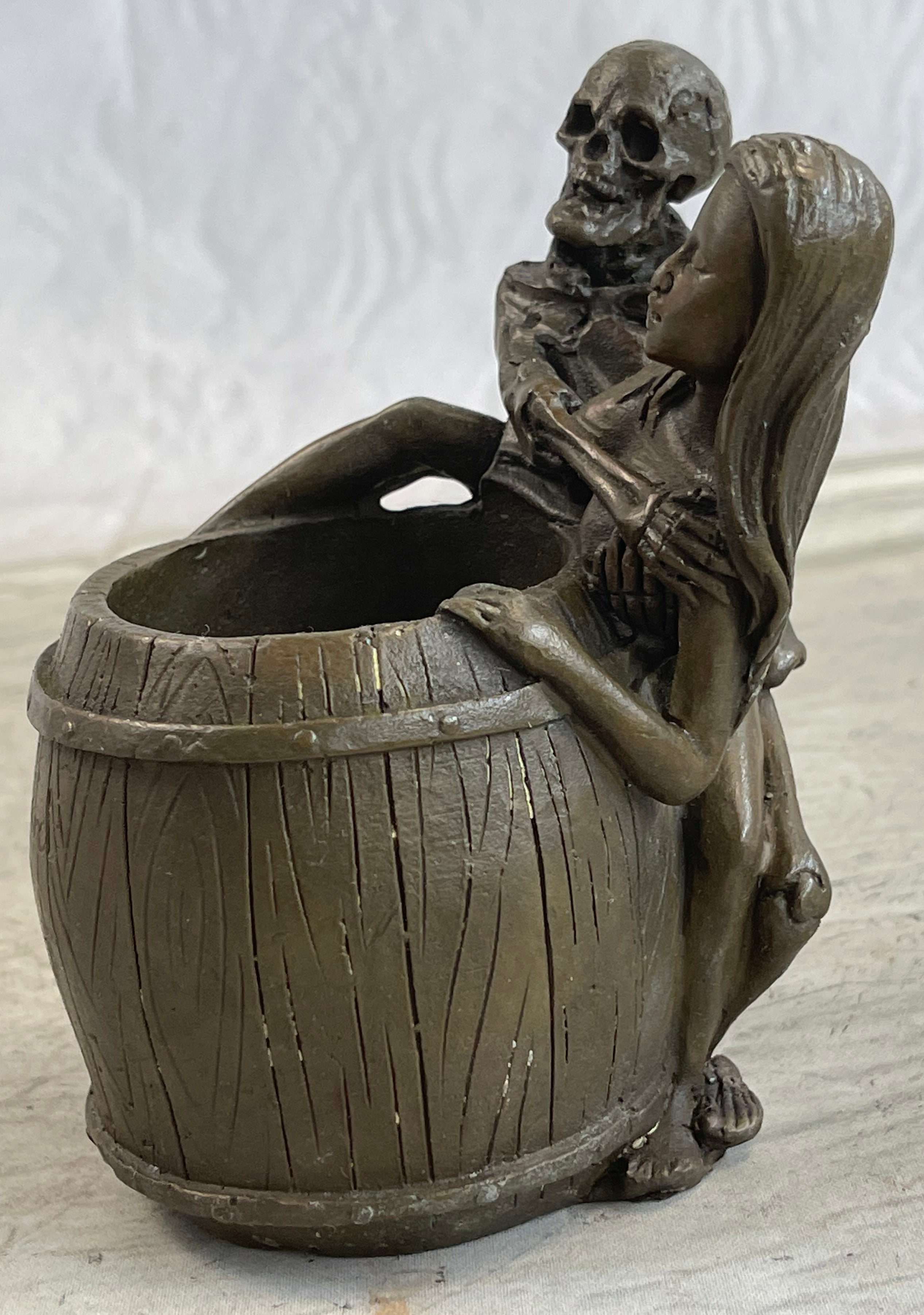 Skeleton Embracing Nude Nymph Pen Holder Key Storage Bronze Sculpture Statue Art