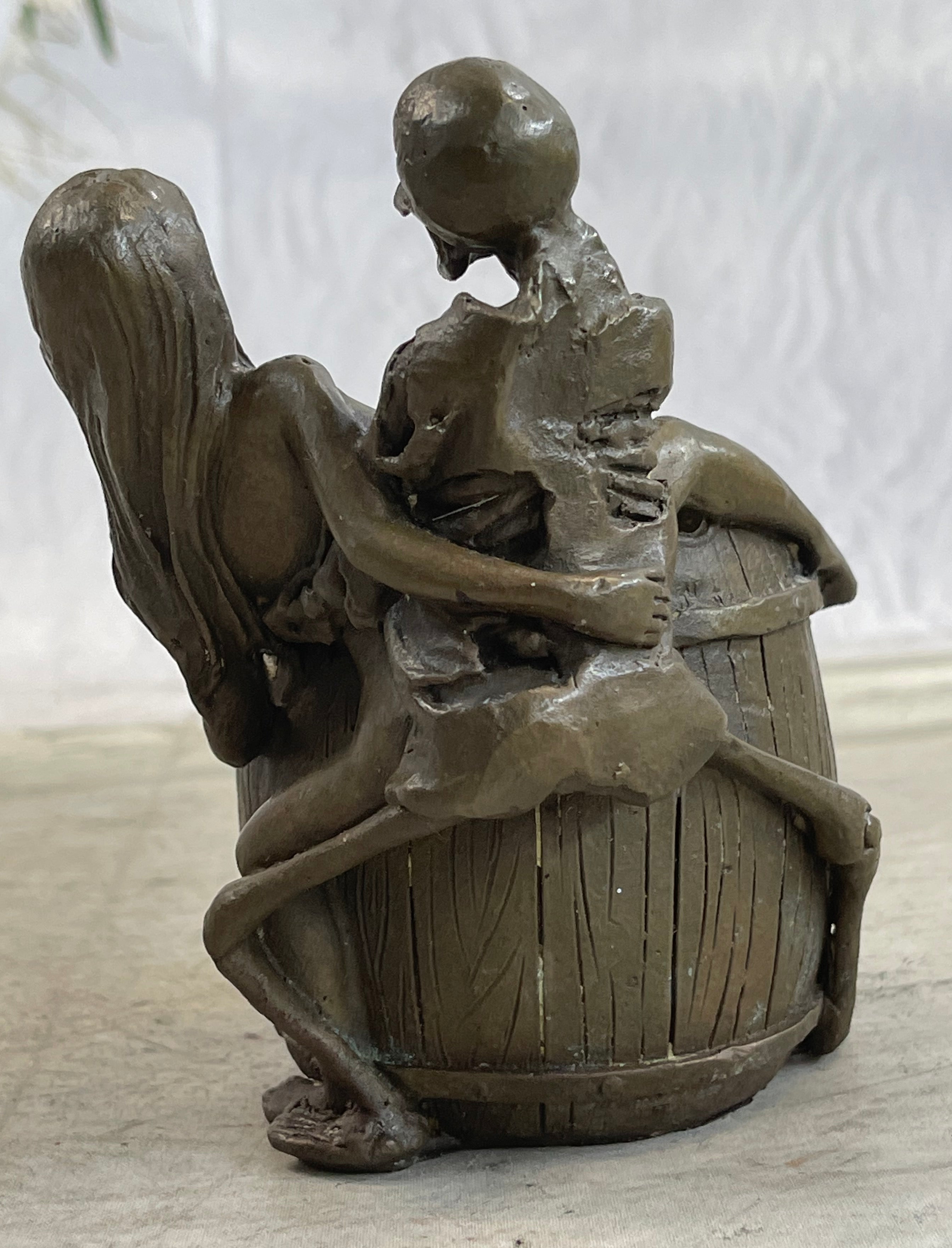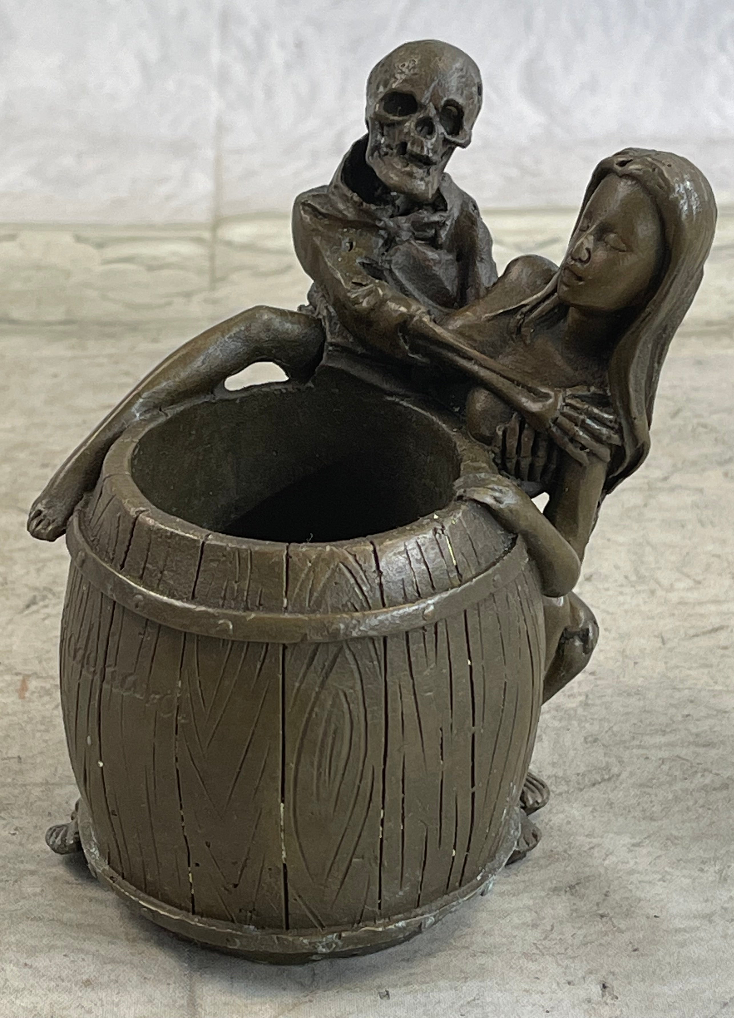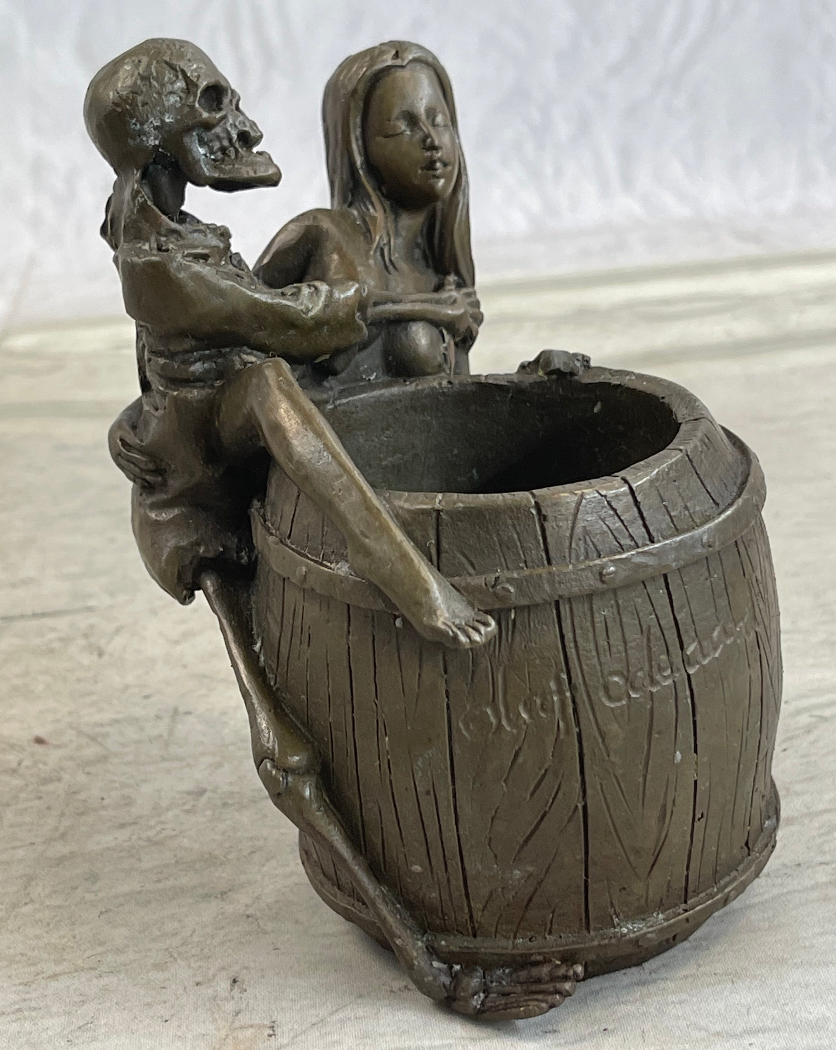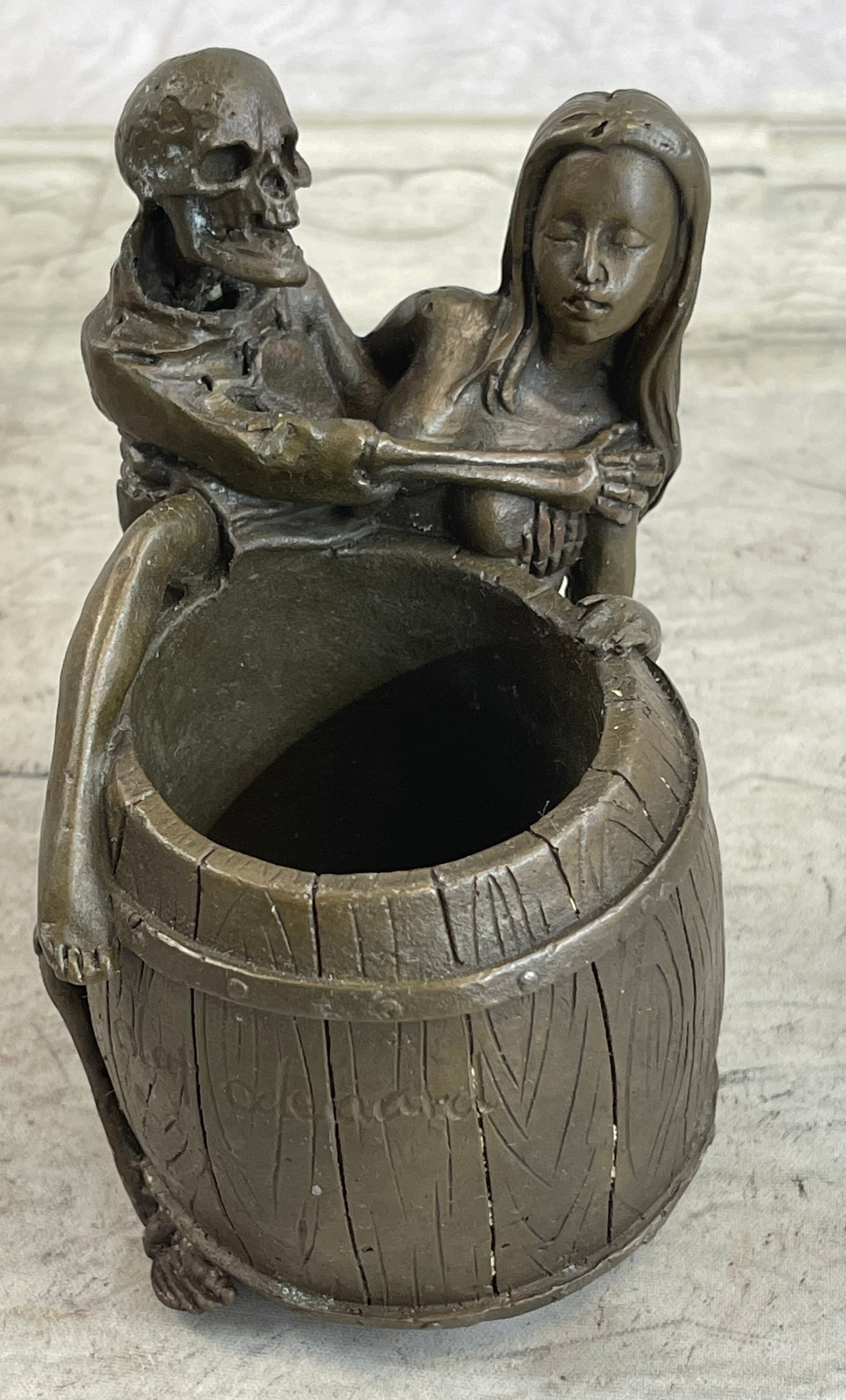 Skeleton Embracing Nude Nymph Pen Holder Key Storage Bronze Sculpture Statue Art