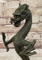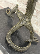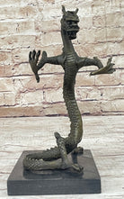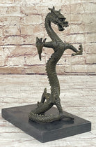 Skinny Chinese Dragon Bronze Sculpture Statue Figure on Marble Base