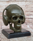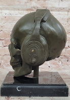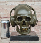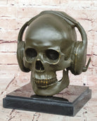 Skull with Headphones Bronze Sculpture - Modern Gothic Music Art