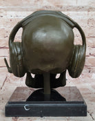 Meticulously crafted using the traditional lost wax method, this genuine bronze piece exhibits fine detail and texture, from the contours of the cranium to the smooth, stylized design of the headphones. The rich brown patina finish adds depth and warmth, enhancing the sculpture’s visual presence while preserving the metal’s integrity.