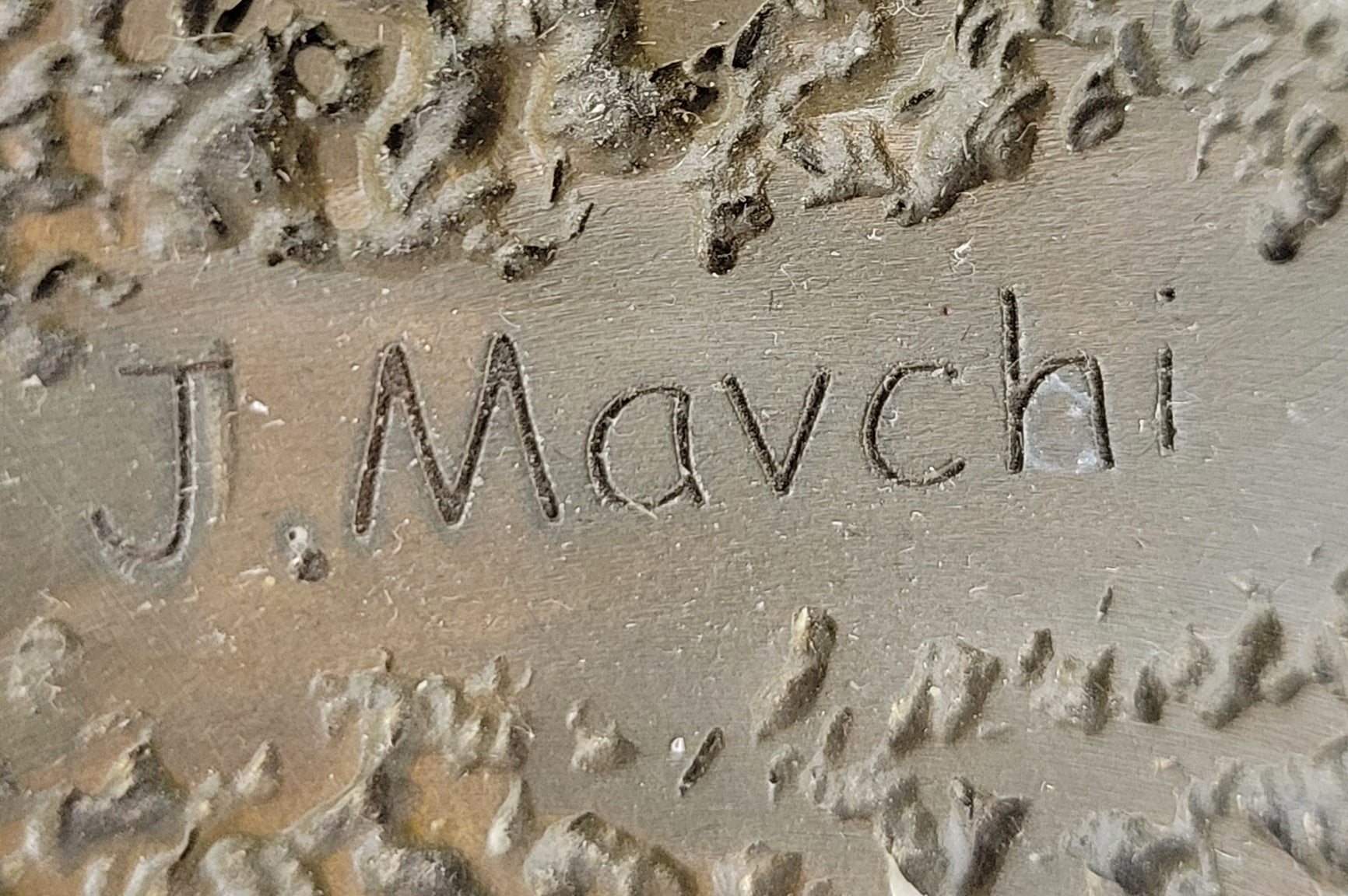 Signed by the artist Mavchi, the sculpture is mounted on a smooth black marble base, providing a striking contrast and sense of balance. This artwork is perfect for football enthusiasts, art lovers, or anyone who appreciates the artistry of movement captured in bronze.Bronze Dimensions with Marble Base: 11"