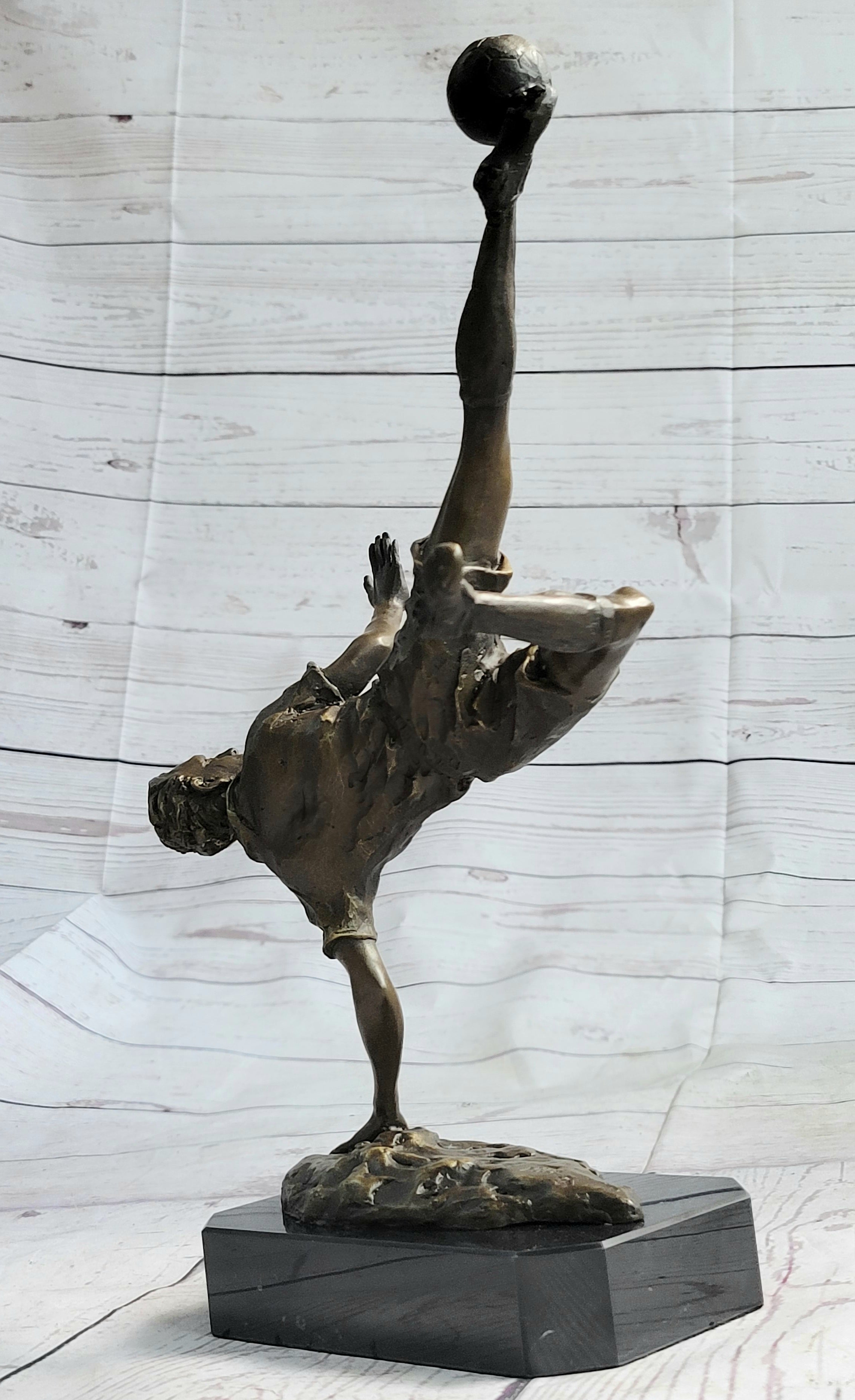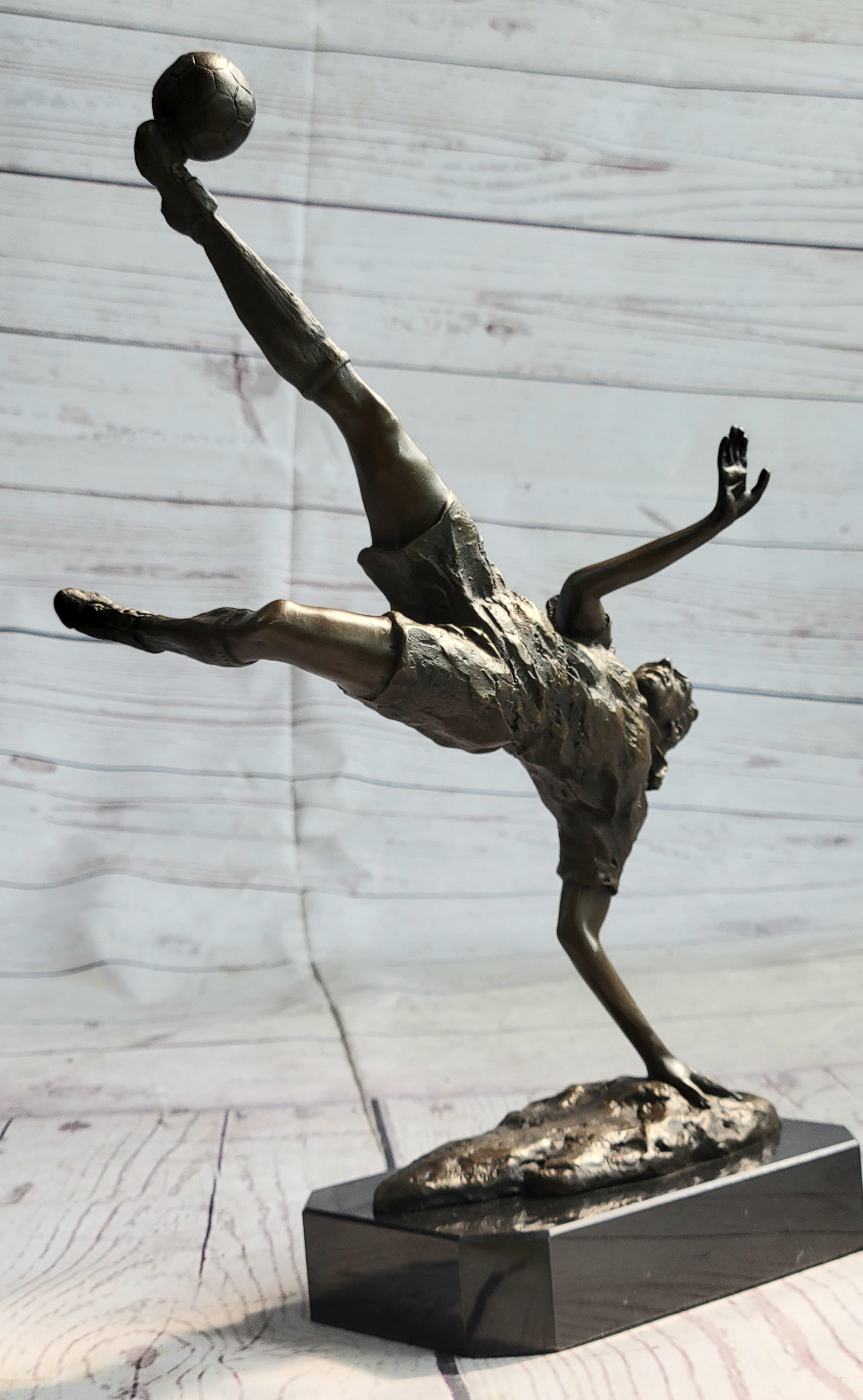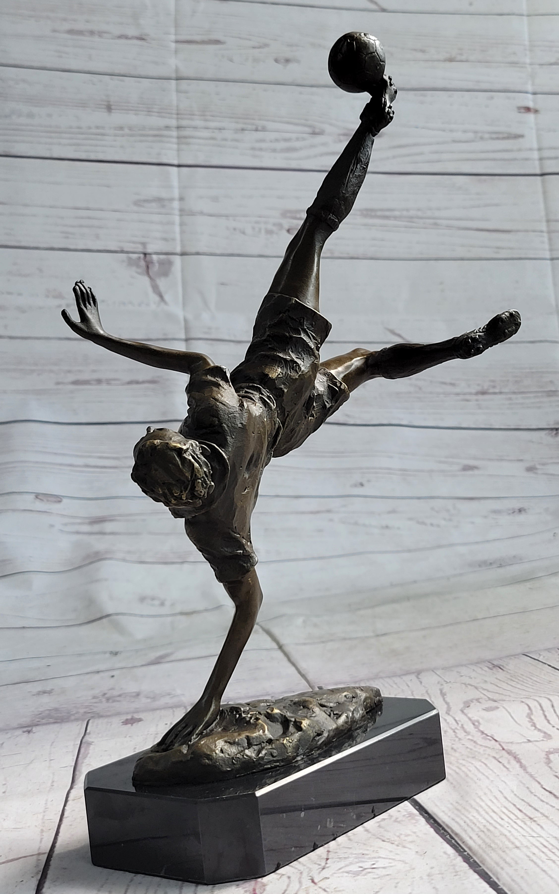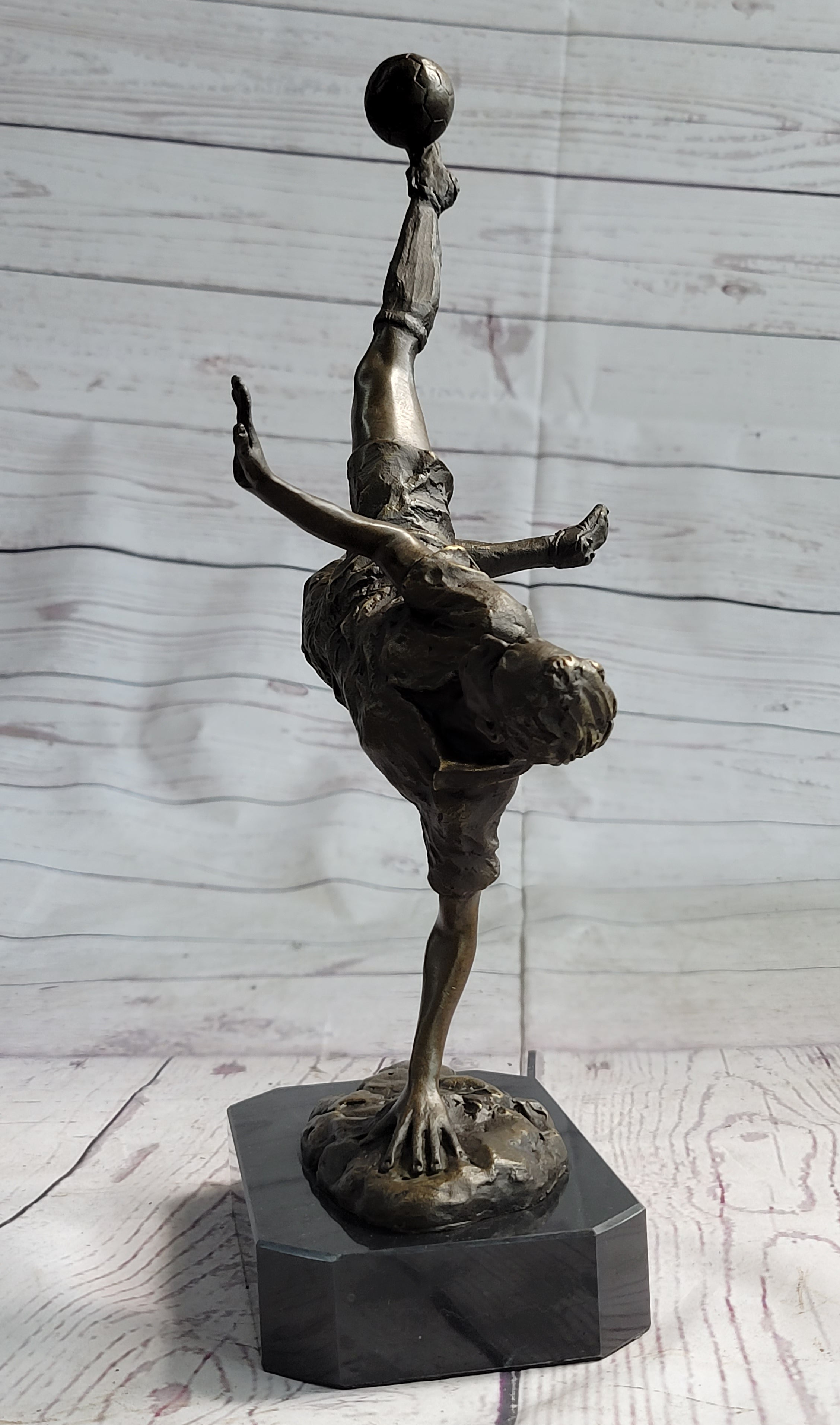 Soccer Trick Shot Bronze Statue Sculpture Trophy Athletic Decor Gift Original Art 14" x 10"