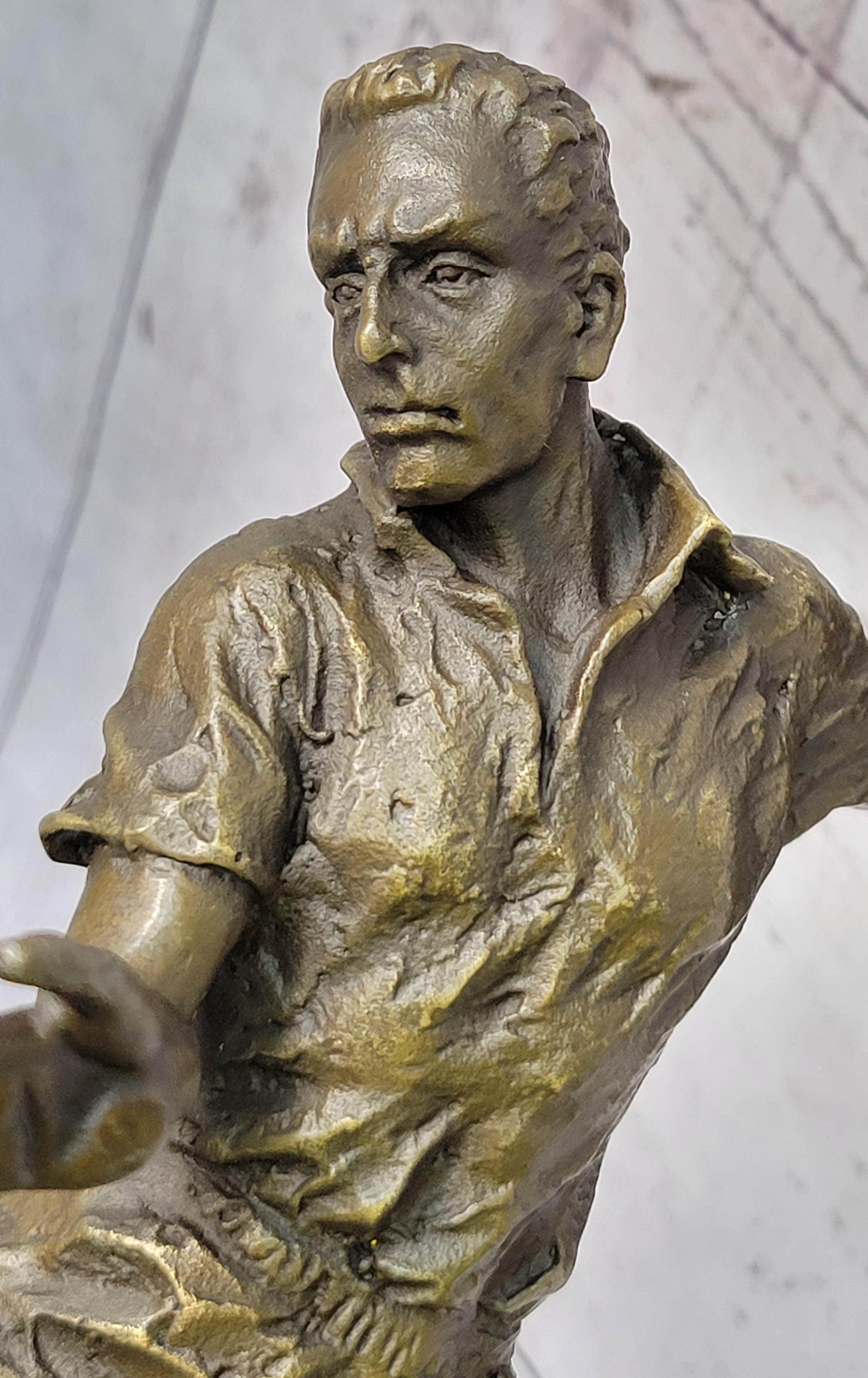 Signed by the artist Milo, this bronze sculpture not only captures the physicality of the game but also celebrates the spirit and skill of those who excel on the field. Whether displayed in a sports-themed setting or as a focal point in an art collection, this piece stands as a testament to the artistry that can be found in the world of sports.Bronze Dimensions with Marble Base: Height 14" X Width 10"