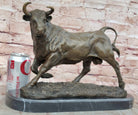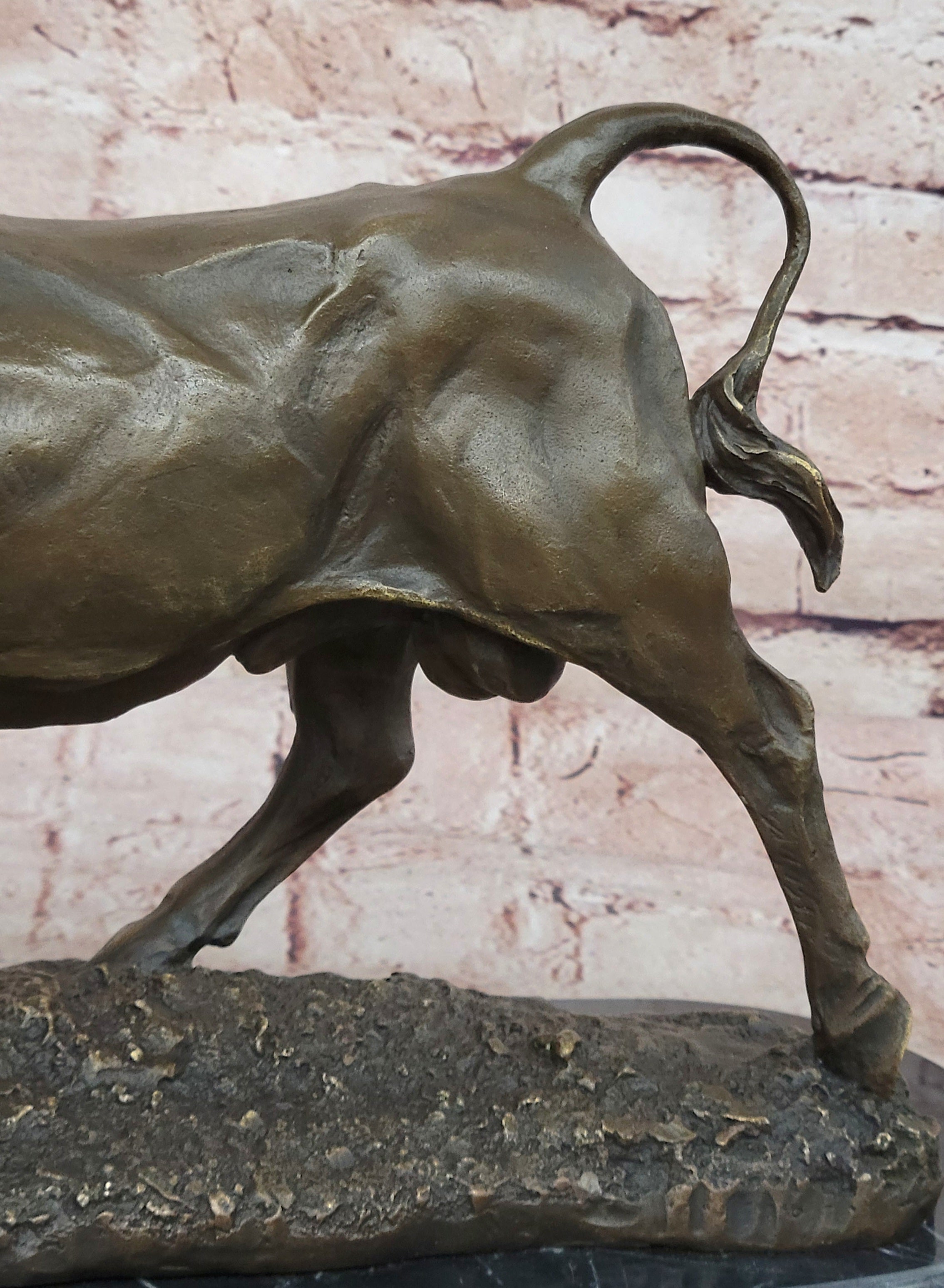Solid Bronze Sculpture of a Bull Marble Base Abstract Art Deco Figurine Figure