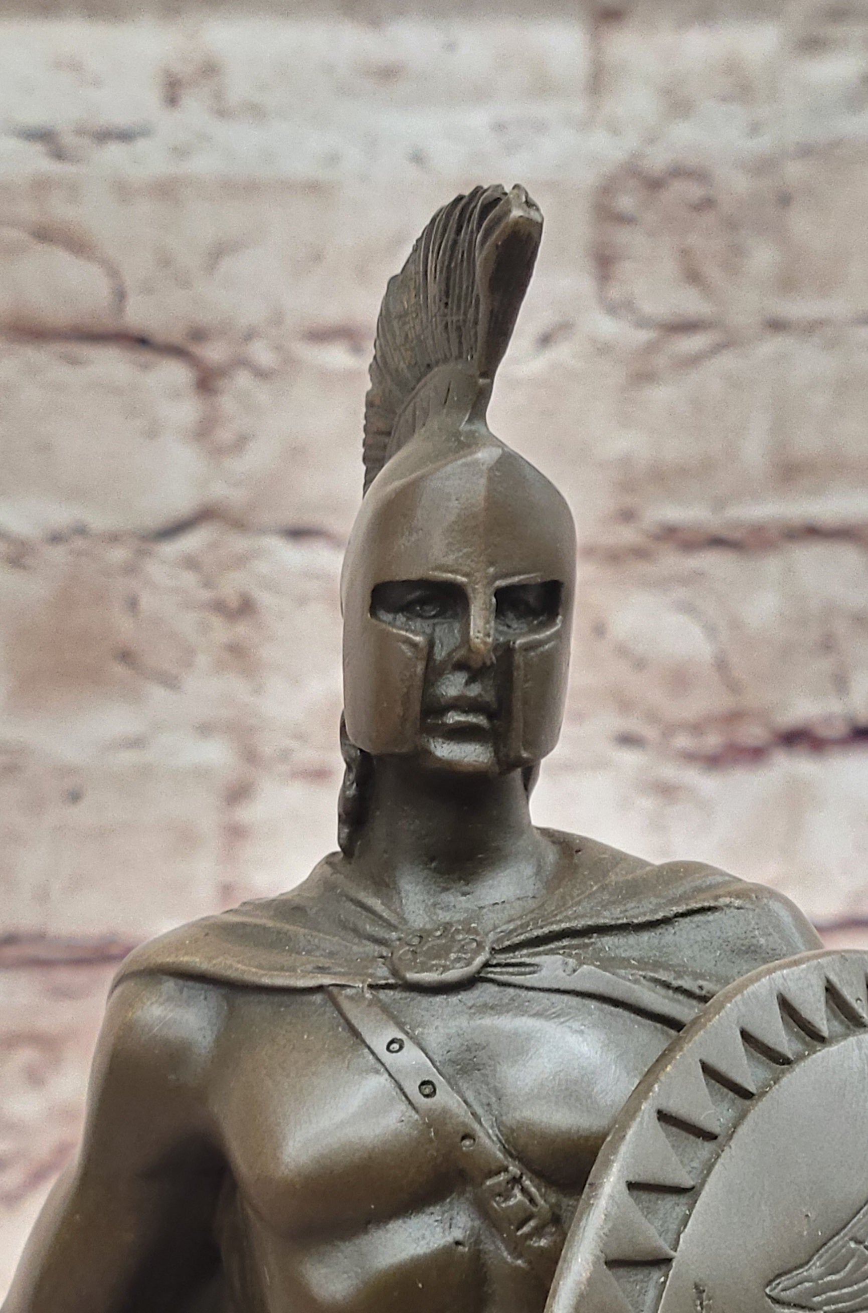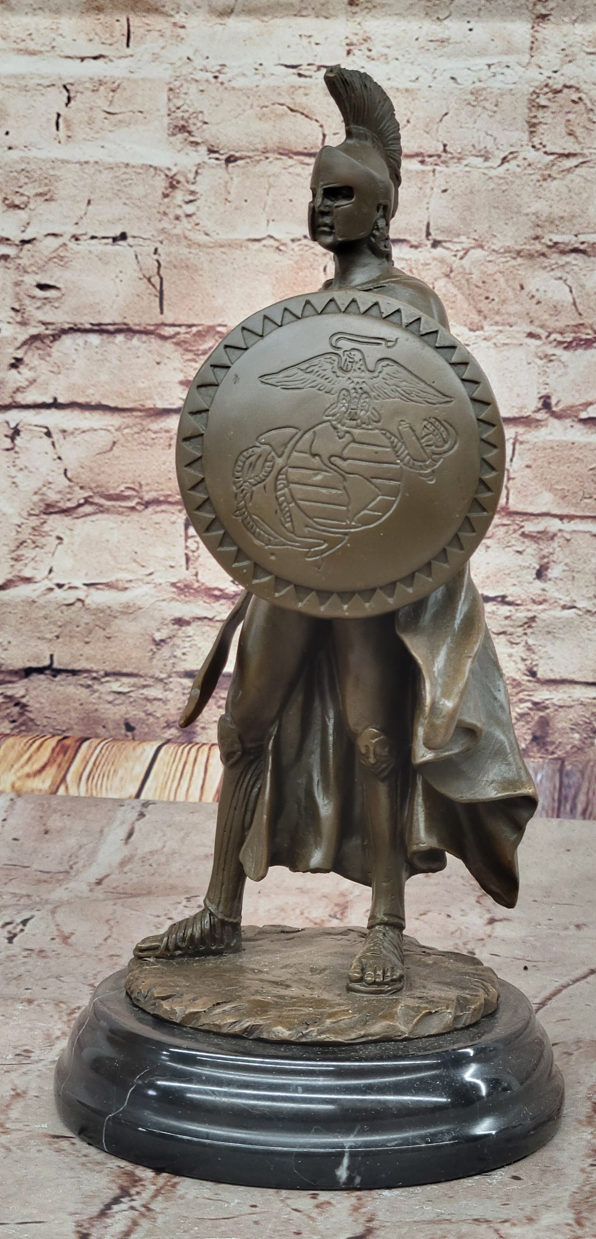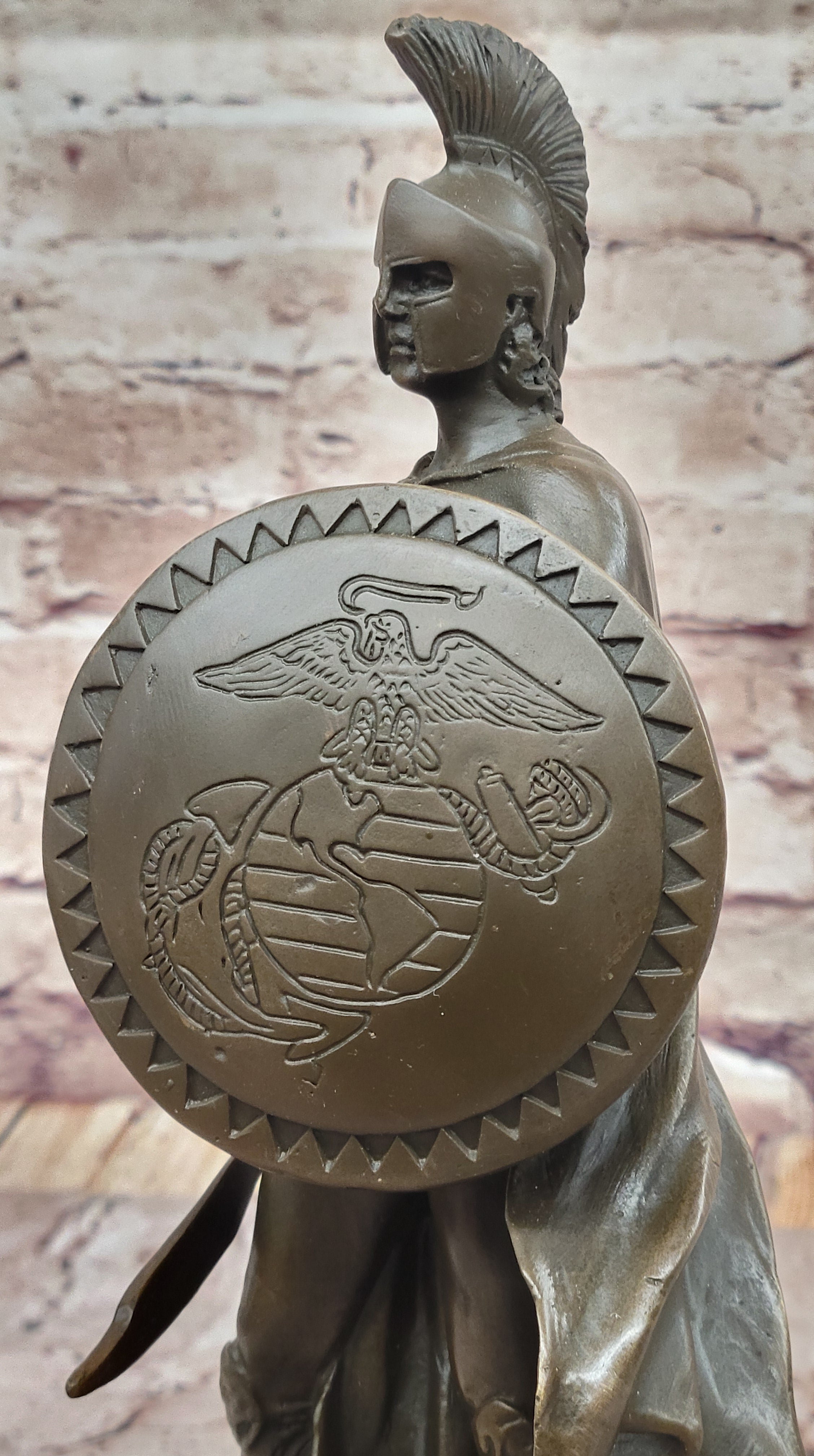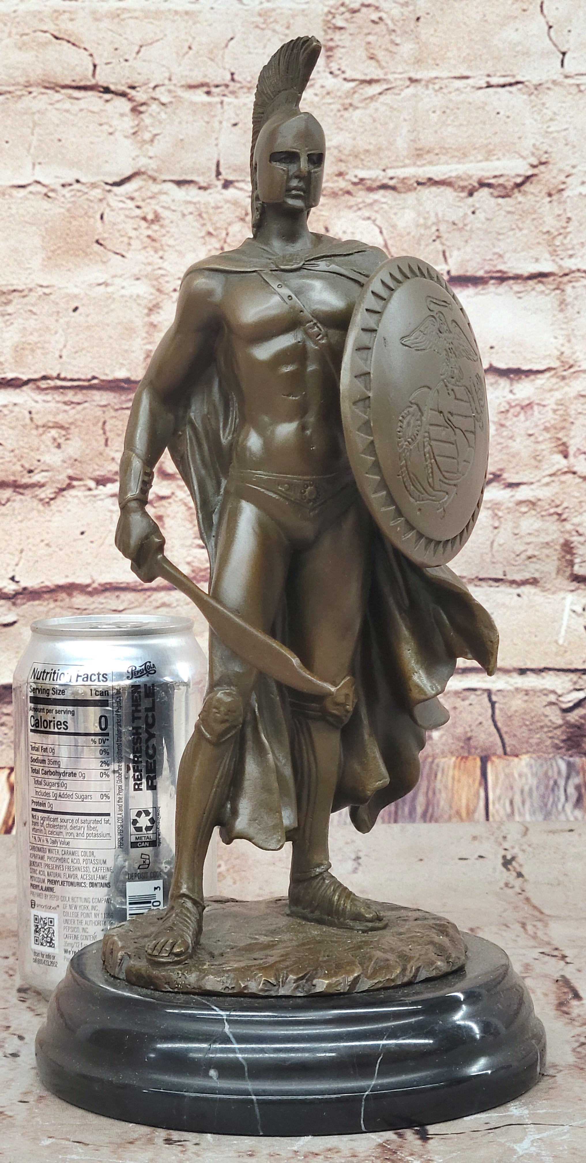 Spartan Greek Warrior w/ US Marine Corps Logo Emblem Bronze Statue Sculpture 12" x 6"