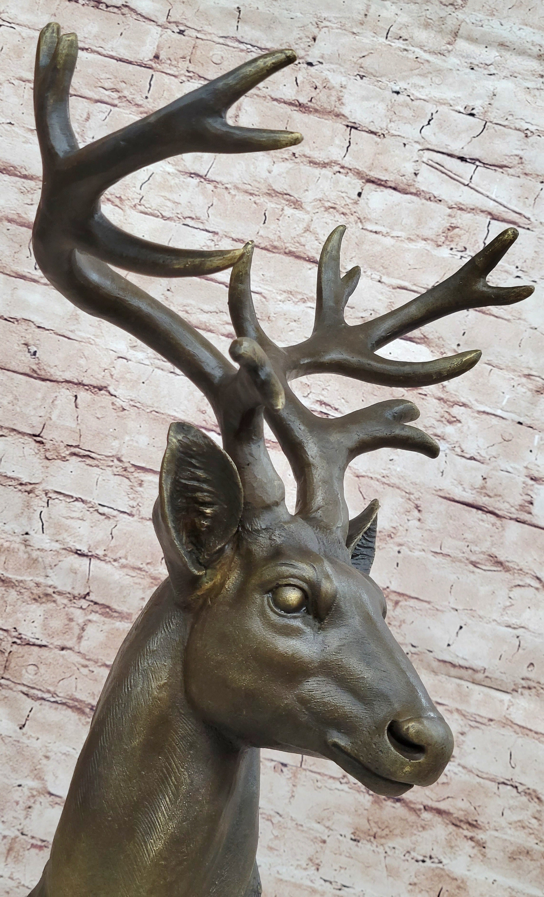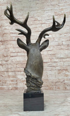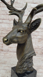 Stag Buck Deer Elk Head Bust Bronze Sculpture Statue on Marble Base