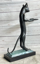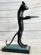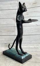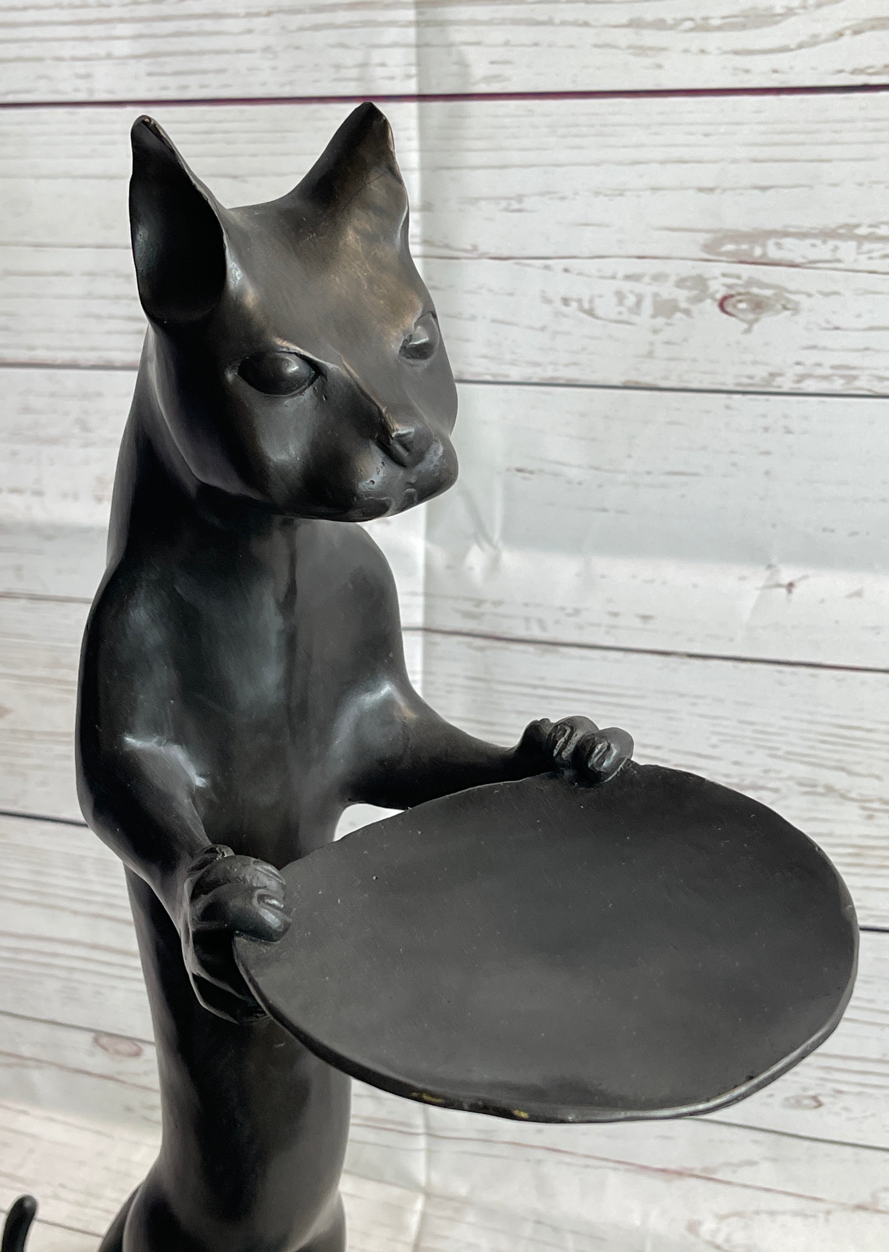 Standing Cat Holding Tray Business Card Holder Bronze Sculpture Statue Original Art Decor