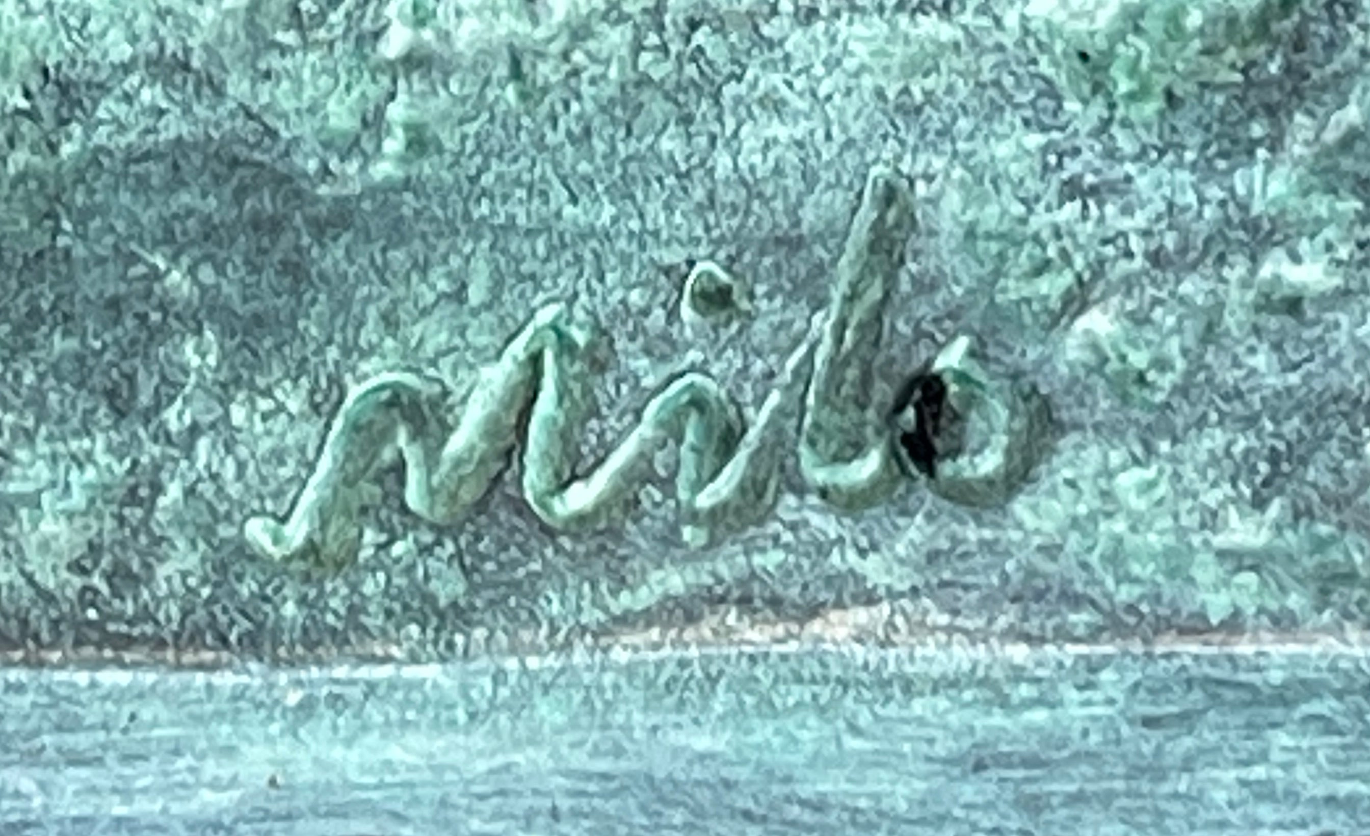 This bronze masterpiece transcends its utilitarian function, becoming a unique expression of art in the business realm. Mr. Felix, with his perfect patina, not only introduces an air of refinement to your desk but also serves as a conversation piece that reflects your appreciation for quality and aesthetics. The signed work by artist Milo adds authenticity and value, making this sculpture a cherished addition that elevates the ambiance of your office space.Bronze Dimensions with Marble Base: 18.5" X 10"