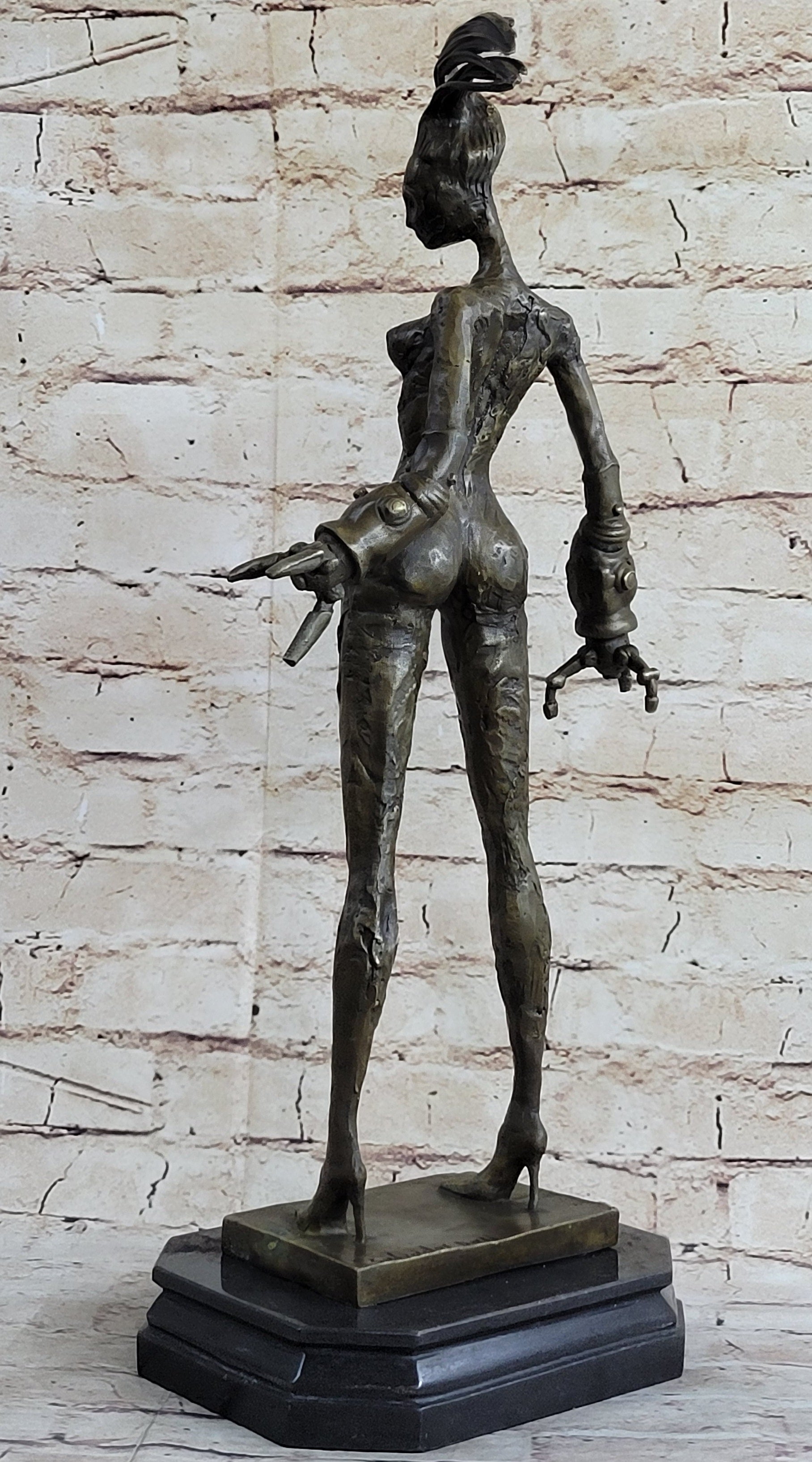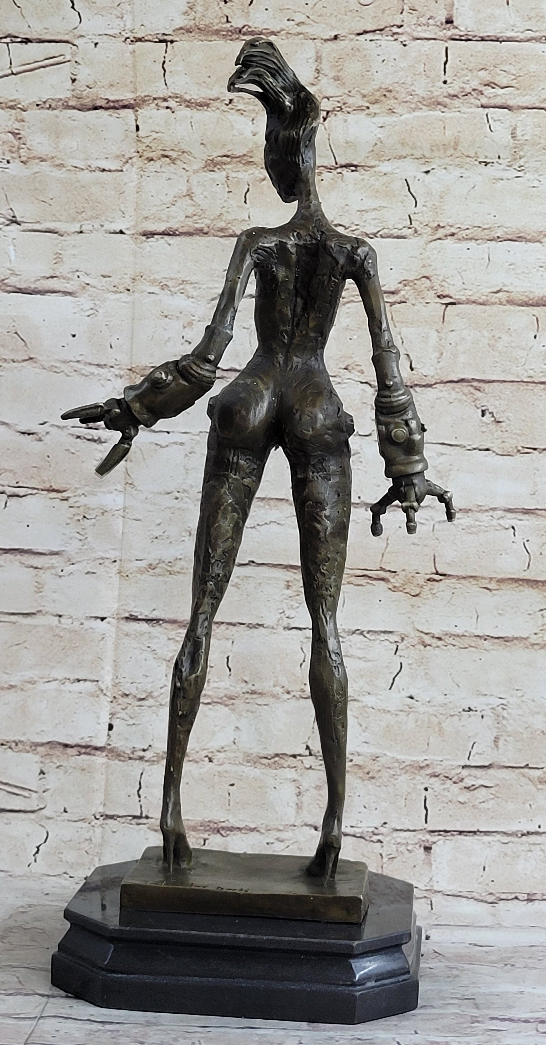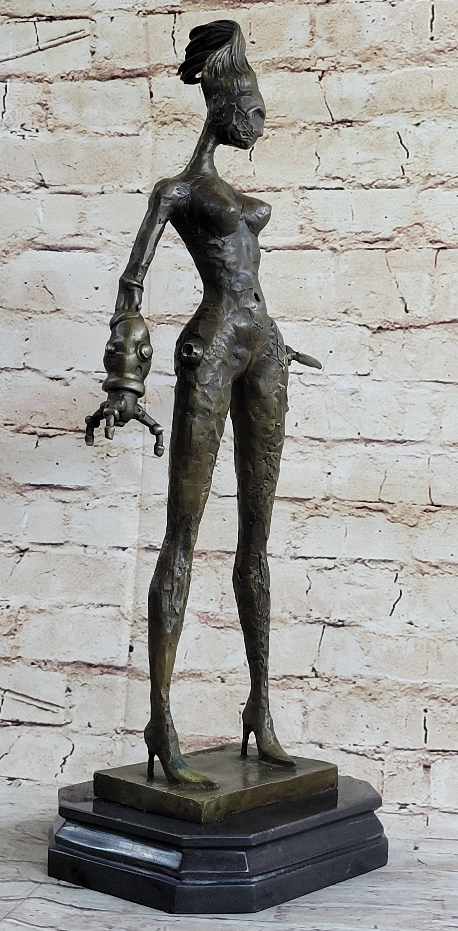Steampunk Nude Female Figure Surrealist Dali Bronze Sculpture Statue on Marble Base