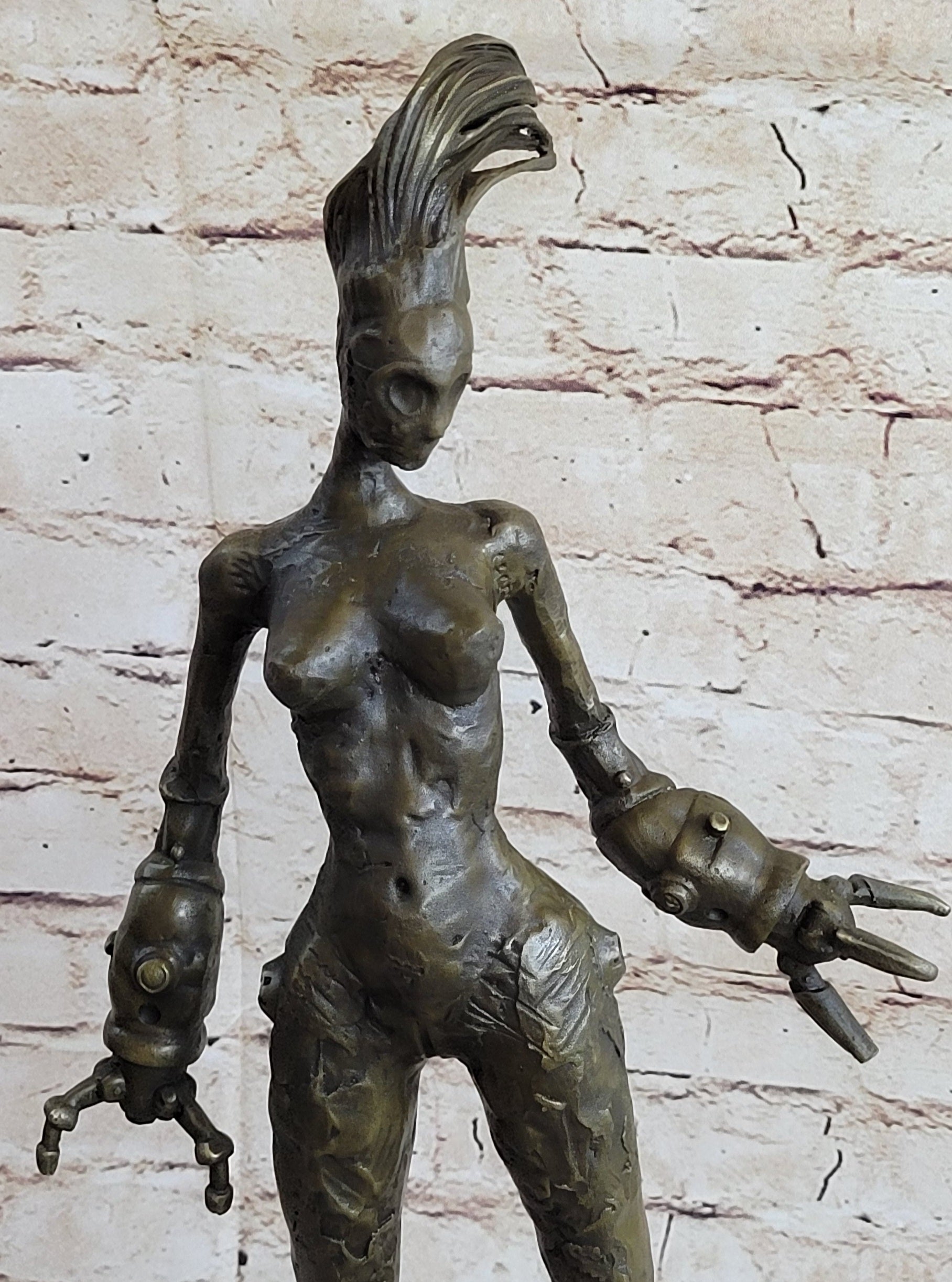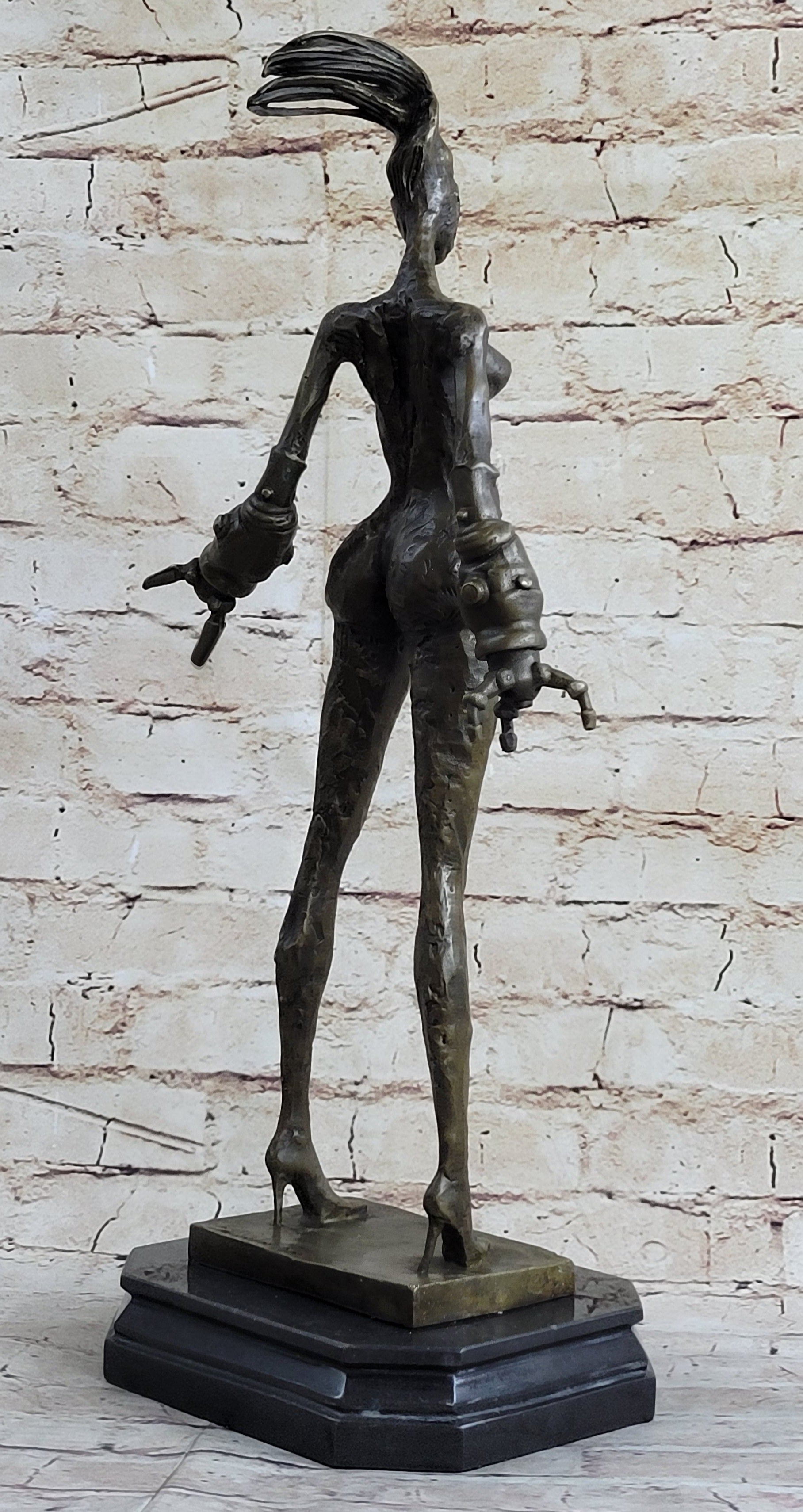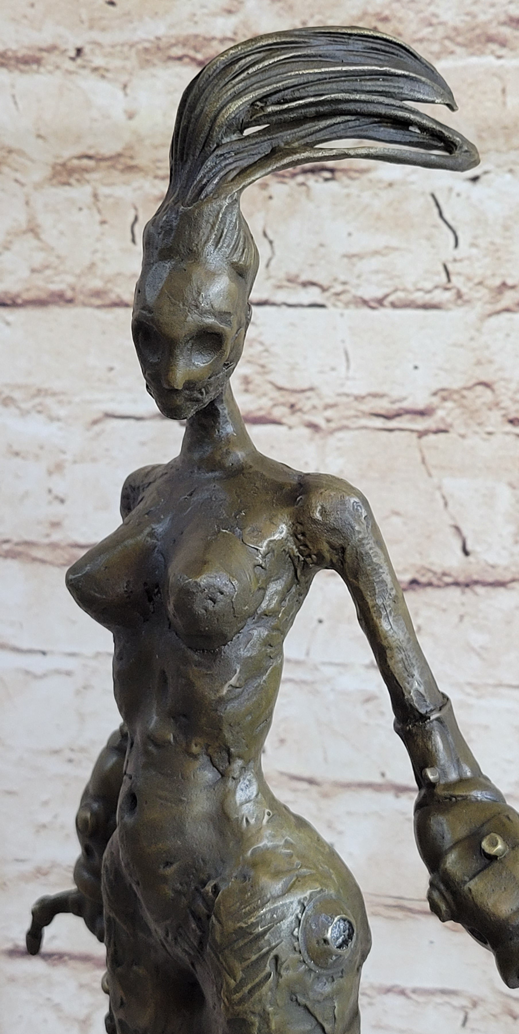 Steampunk Nude Female Figure Surrealist Dali Bronze Sculpture Statue on Marble Base