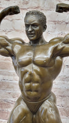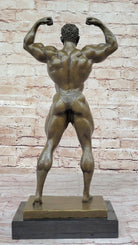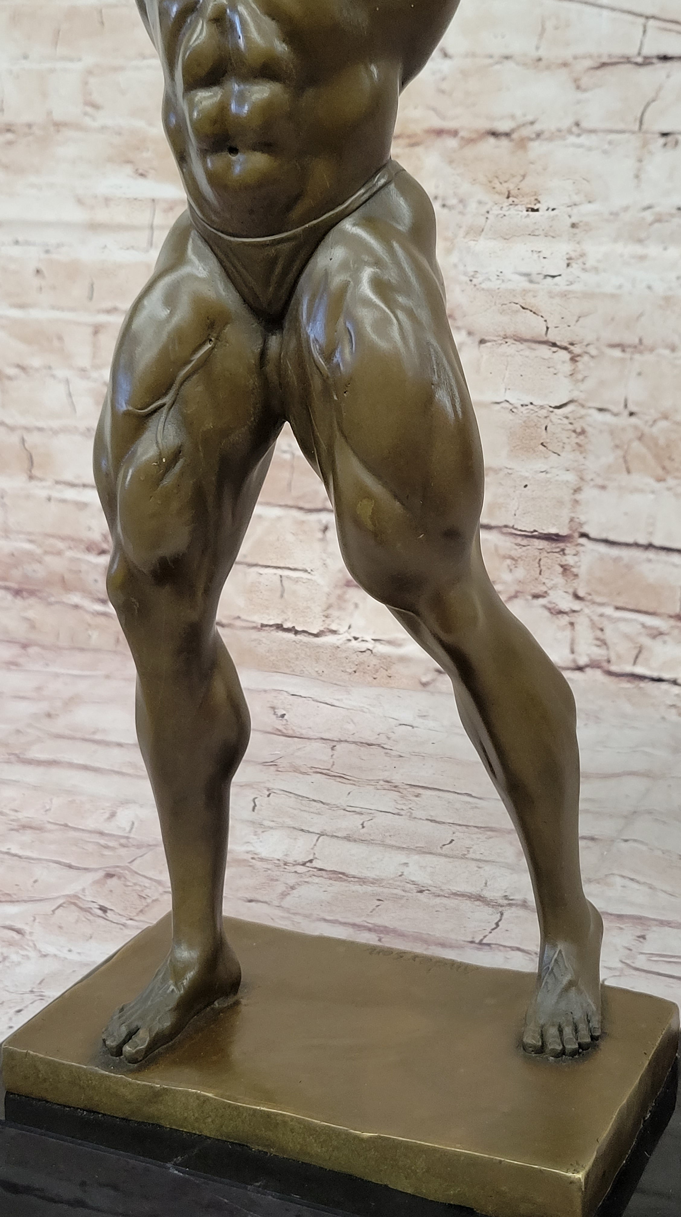 Whether displayed in a home, office, or fitness space, this bronze Iron Man statue serves as a powerful reminder of the dedication required to achieve physical excellence. Its artistic grace and muscular form make it a source of inspiration and admiration for those who appreciate the fusion of art and athleticism.Bronze Dimensions with Marble Base: Height 20" X Width 9"