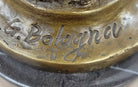 The refinement and sophistication of this sculpture are rarely found in recasted bronzes. Crafted using the revered "Lost Wax Method," it stands as a testament to the meticulous artistry employed in its creation. The sculpture is mounted on a magnificent heavy marble base, accentuated with a delightful bronze trim, enhancing its overall visual appeal.