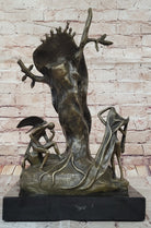 Crafted from bronze, this sculpture is part of Dali's iconic melted watch series, a symbol of the relentless passage of time. In this masterpiece, the supple, melting watch is gracefully draped around a sturdy tree trunk, while atop the watch face rests a crown, symbolizing time's dominion over humanity. Meticulously handmade using the age-old "Lost Wax Method," this sculpture showcases the intricate details and artistry for which Dali is renowned. It proudly stands on a marble base, adding to its aesthetic appeal and providing a solid foundation for this remarkable artwork. Bearing the signature of the legendary artist Salvador Dali, this bronze sculpture is not only a testament to his artistic genius but also a captivating representation of the ever-elusive nature of time. Whether displayed in a gallery, office, or home, it serves as a striking and thought-provoking addition to any collection.Bronze Dimensions with Marble Base: Height 17" X Width 11"