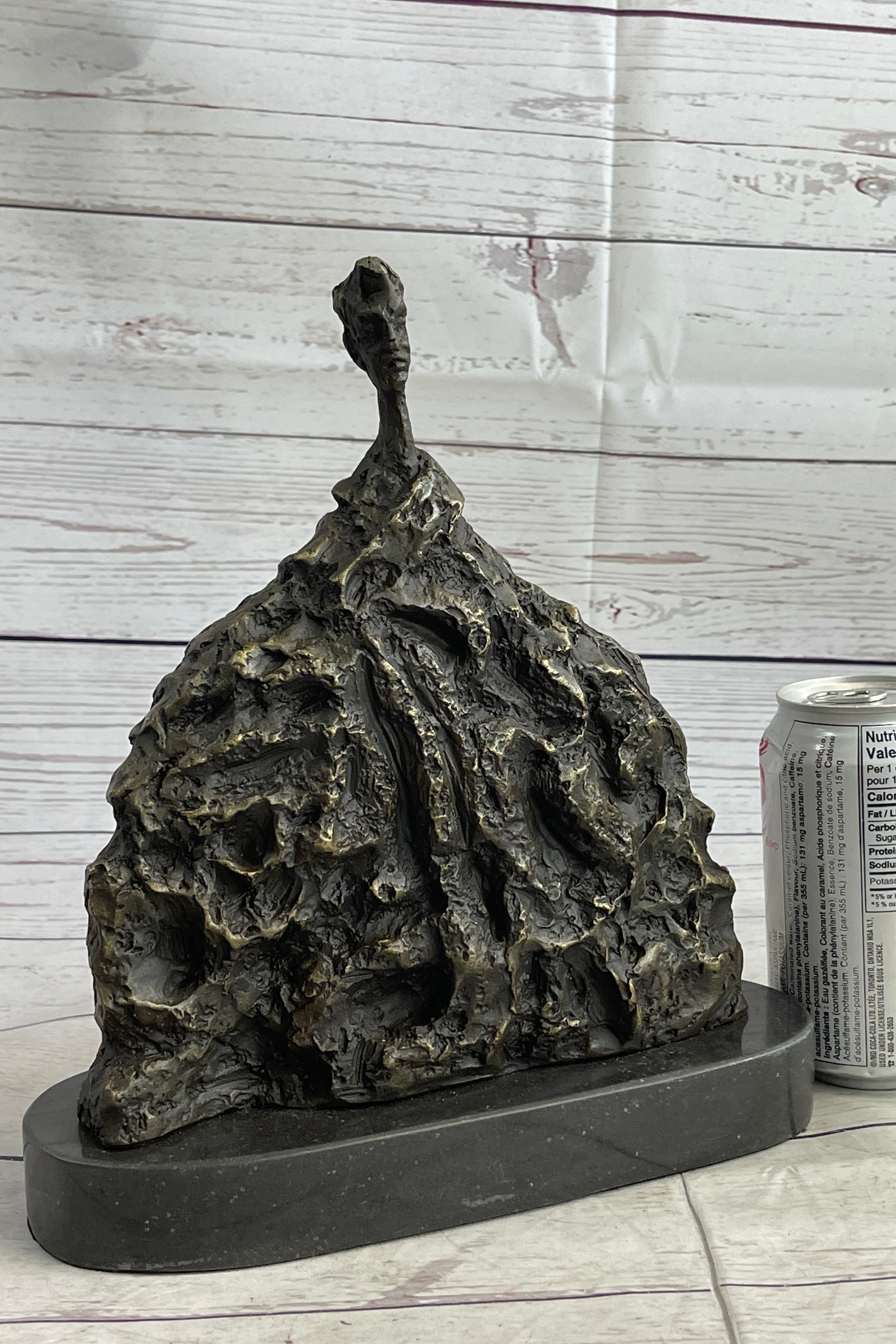 Surrealist Head Modern Art Giacometti Bronze Statue Sculpture Marble Base 11" x 9"
