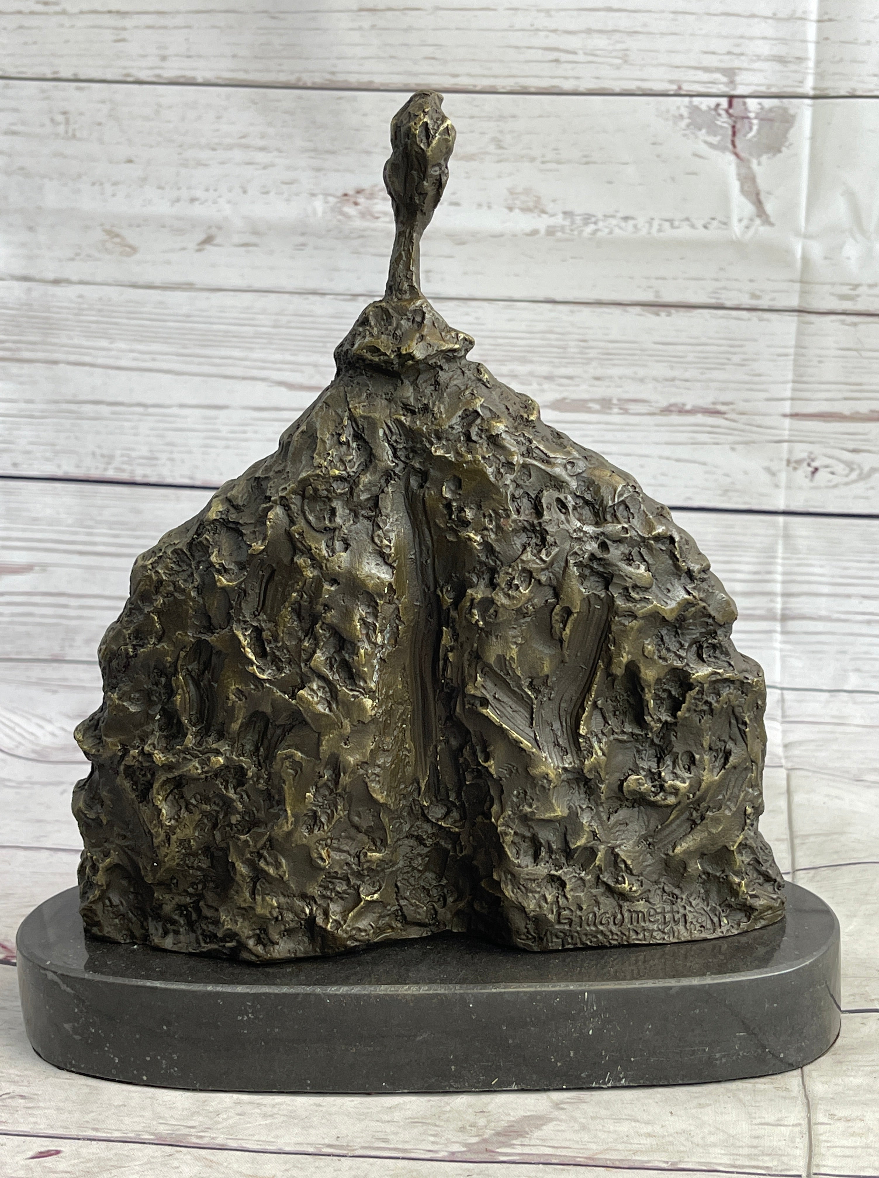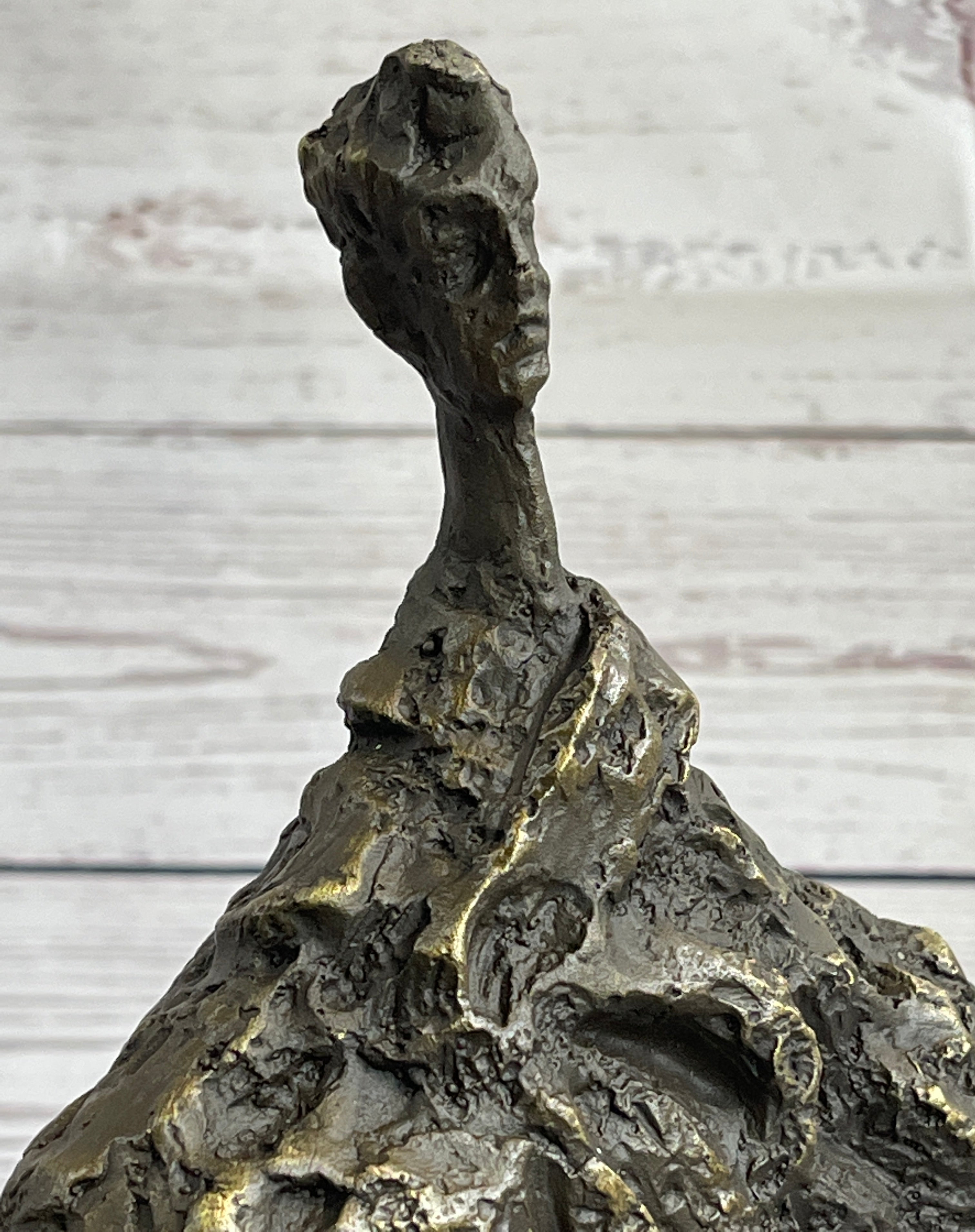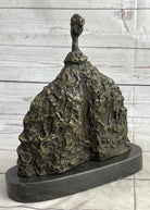 Resting on a rectangular black marble base, the sculpture is a testament to Giacometti's mastery, crafted using the lost wax method. The artist's signature, Gia Cometti, adds quality to this captivating piece, inviting art enthusiasts to delve into the Surrealist world and appreciate the depth of expression encapsulated in this unique creation.Bronze Dimensions with Marble Base: Height 11" X Width 10"