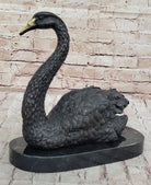 Swan Bird Bronze Sculpture Statue Figure on Marble Base 12" x 12"