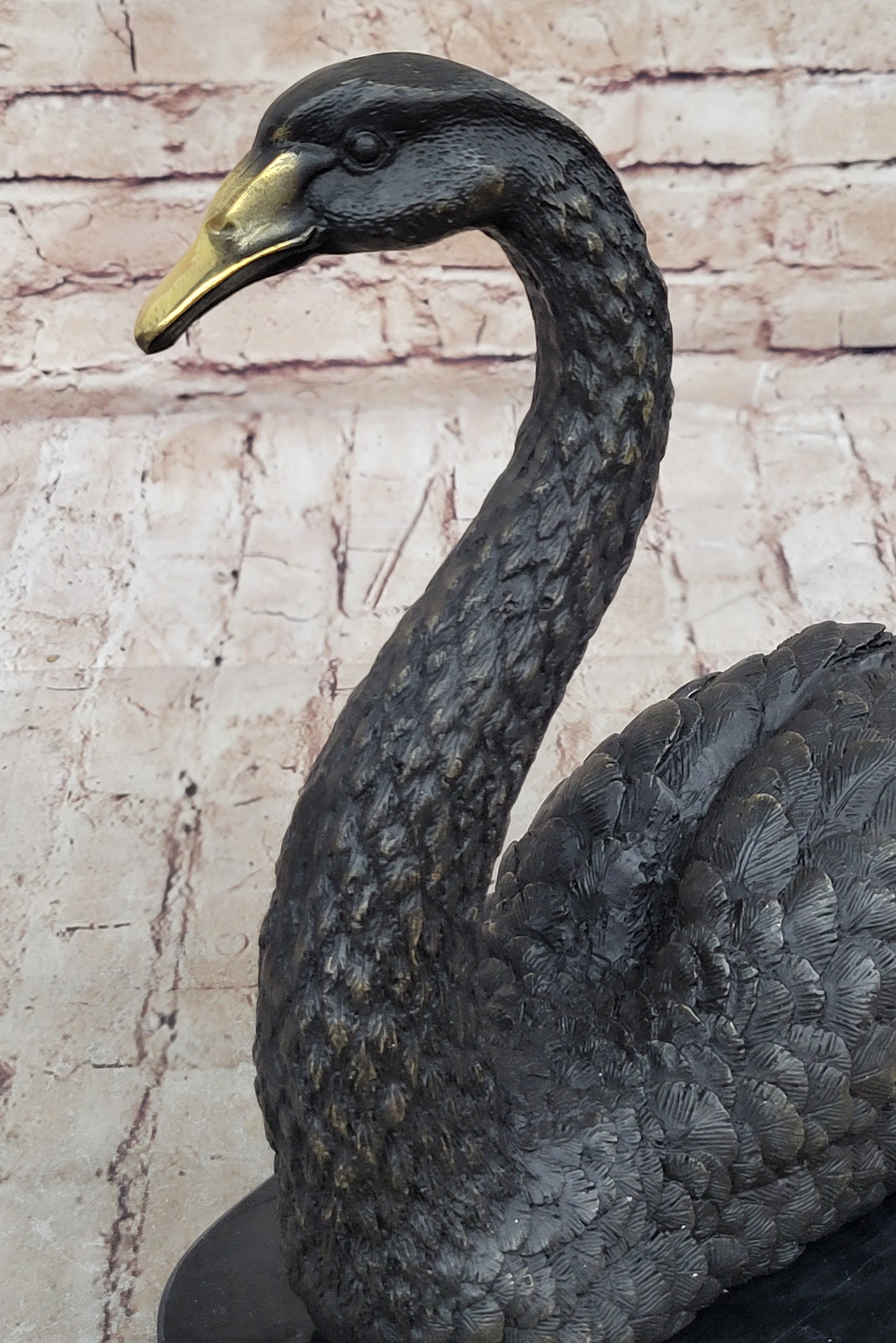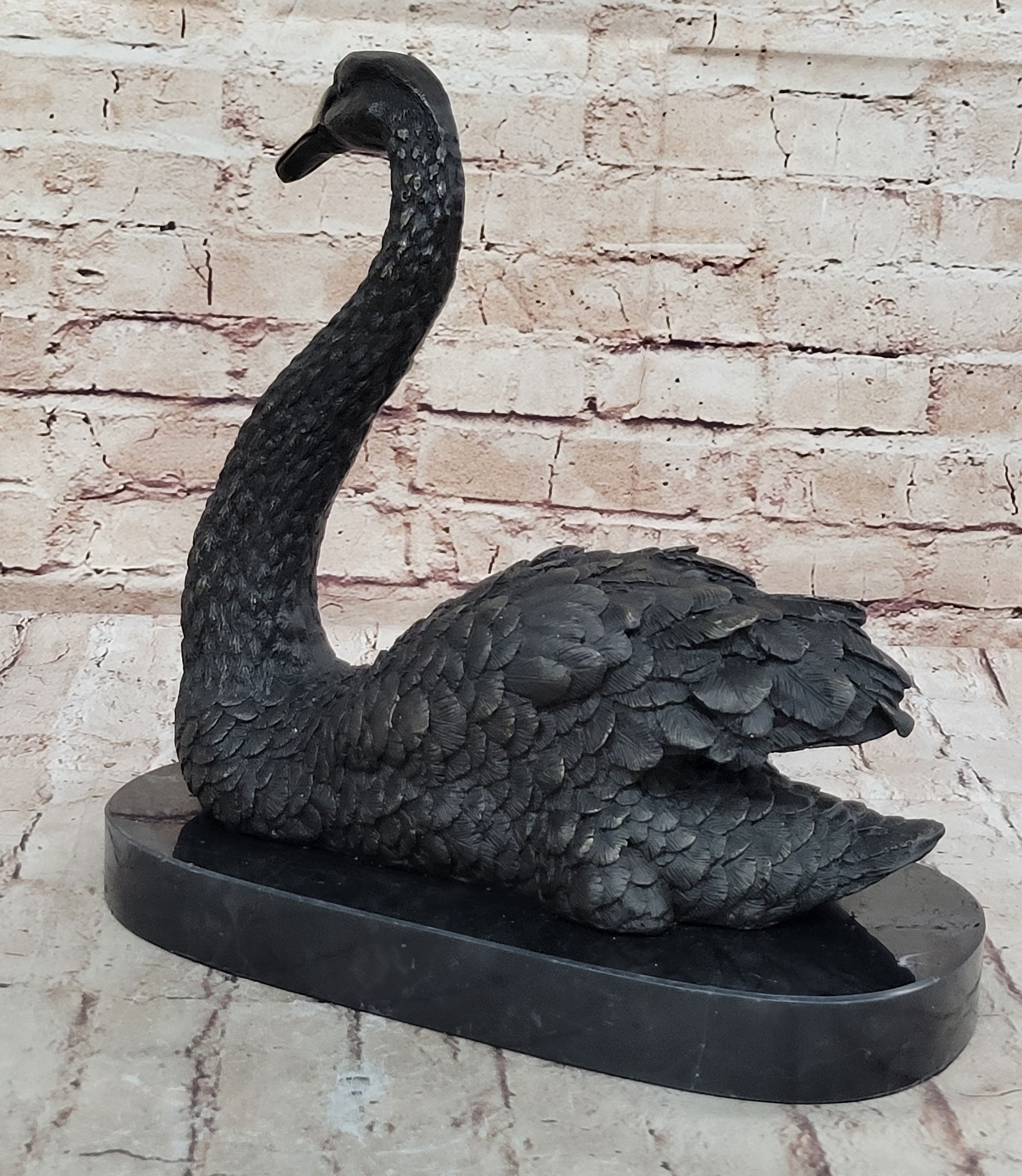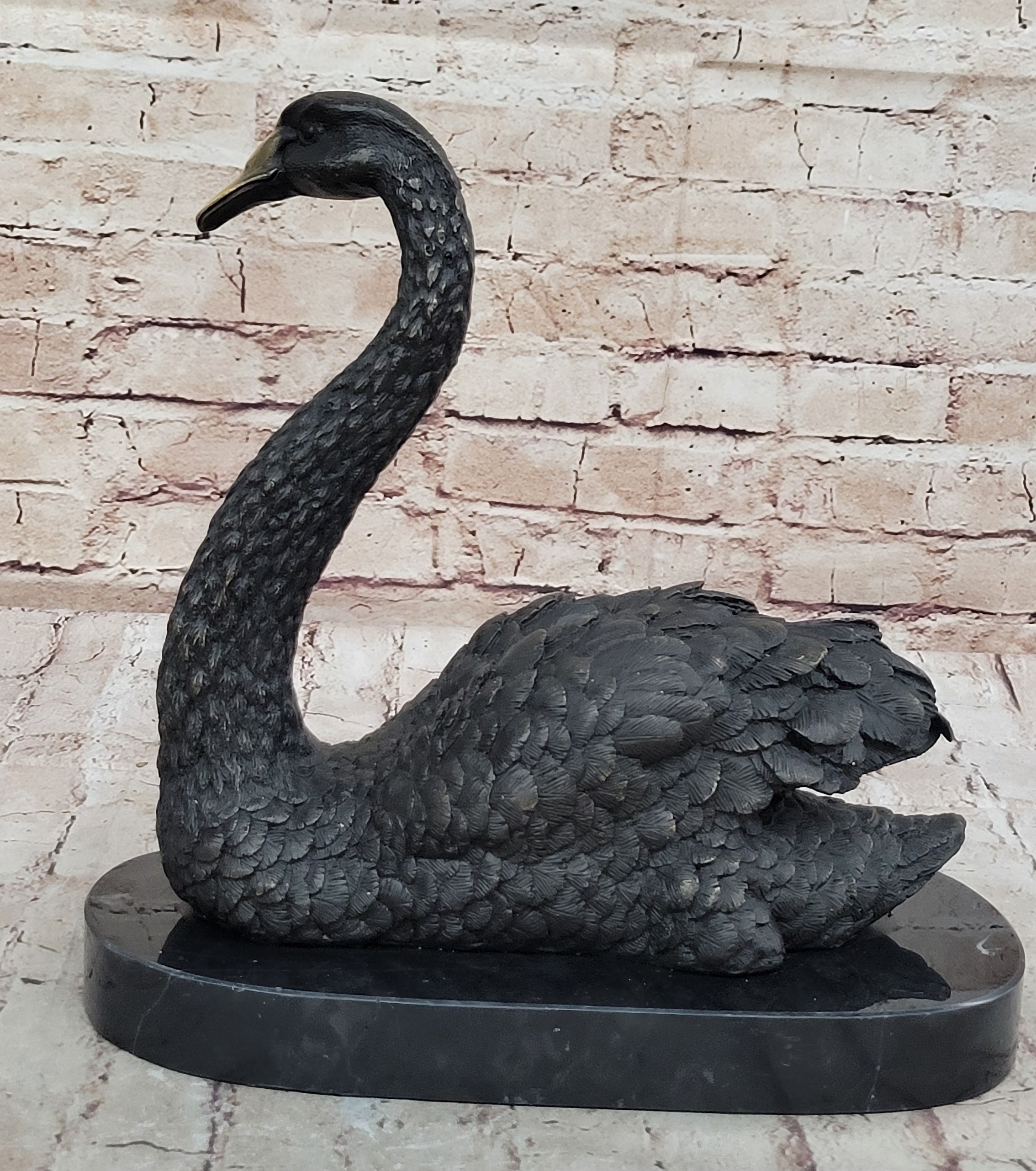 Crafted using the ancient lost wax method of casting, this exquisite sculpture ensures unparalleled detail and quality, honoring a tradition that spans thousands of years. Whether as a decorative piece for a home or office, or as a thoughtful gift for an animal lover, this swan sculpture is sure to be cherished for its timeless beauty and symbolism.Bronze Dimensions with Marble Base: Height 12" X Width 12"