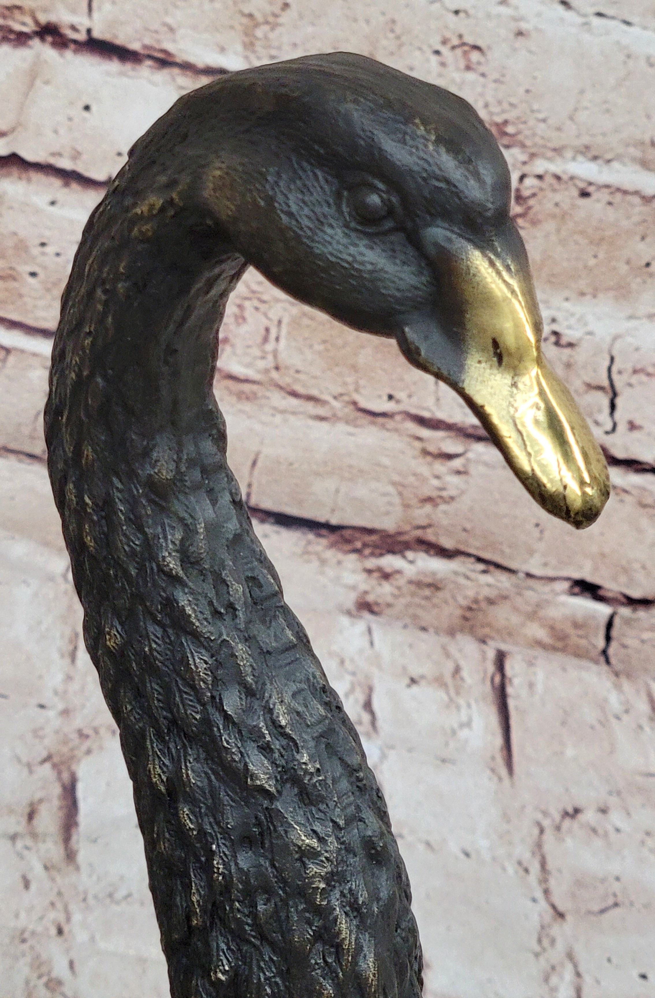 This stunning bronze casting beautifully captures the essence of a graceful swan, with its feathers meticulously crafted to perfection. The depiction of the swan with its feathers slightly fanned out suggests a moment of tranquility, perhaps as it wades in the water, gazing off into the distance with serene elegance. Throughout history, swans have symbolized grace and beauty, serving as icons of love, music, and poetry.