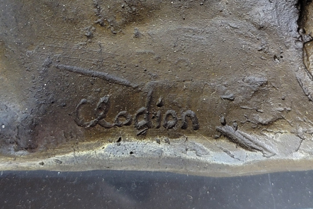 The "Nessus and Deianira" bronze sculpture is a remarkable work of art, meticulously crafted using the time-honored lost wax method. This technique guarantees the utmost attention to detail, resulting in a sculpture that exudes grace and beauty. The bronze casting brings the characters to life, capturing the dynamic movement of Nessus and the vulnerability of Deianira. The sculpture is mounted on a base that features the signature "C.Colodion," affirming its authenticity and artistic merit.