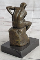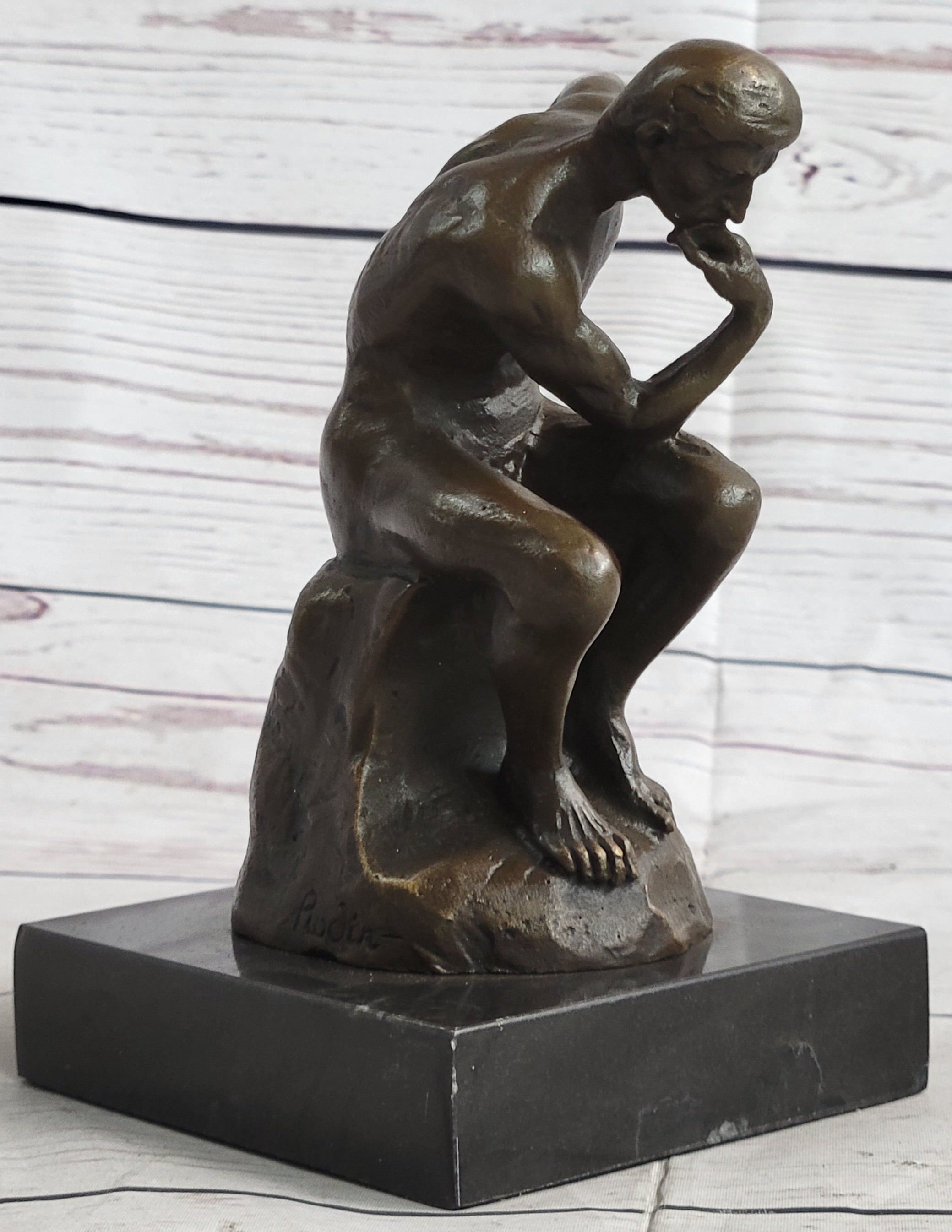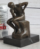 The Thinker Thinking Man by Auguste Rodin Miniature Bronze Sculpture Statue on Marble Base