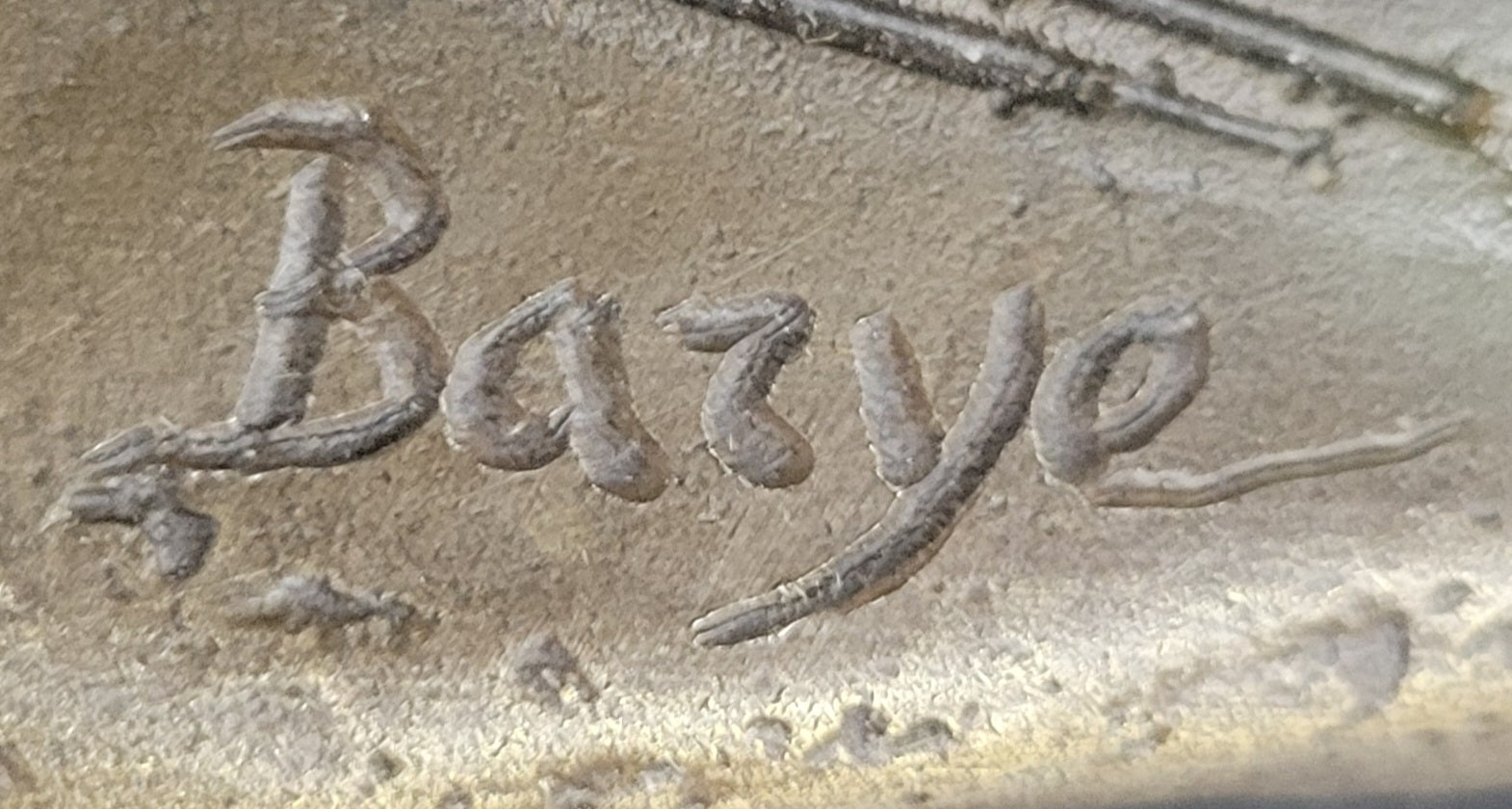 As a tribute to classical mythology and the heroic deeds of Theseus, this bronze statue serves as a captivating centerpiece in any space. Its timeless beauty and symbolic significance make it a cherished addition to any art collection. Signed by the artist Barye, this sculpture bears the mark of quality and craftsmanship, further enhancing its value and appeal.Bronze Dimensions with Marble Base: Height 17" X Width 18"
