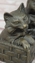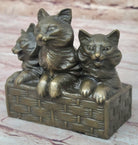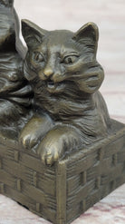 Three Cute Kittens Cats in a Flower Box - Bronze Sculpture Original Art by Milo