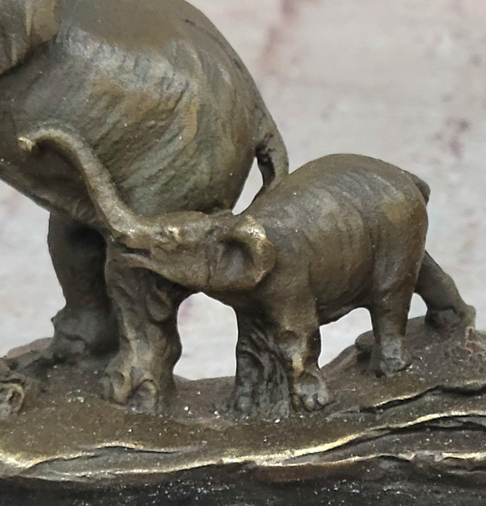 Three Elephants Family - Hot Cast Bronze Sculpture of African Wildlife on Marble Base