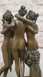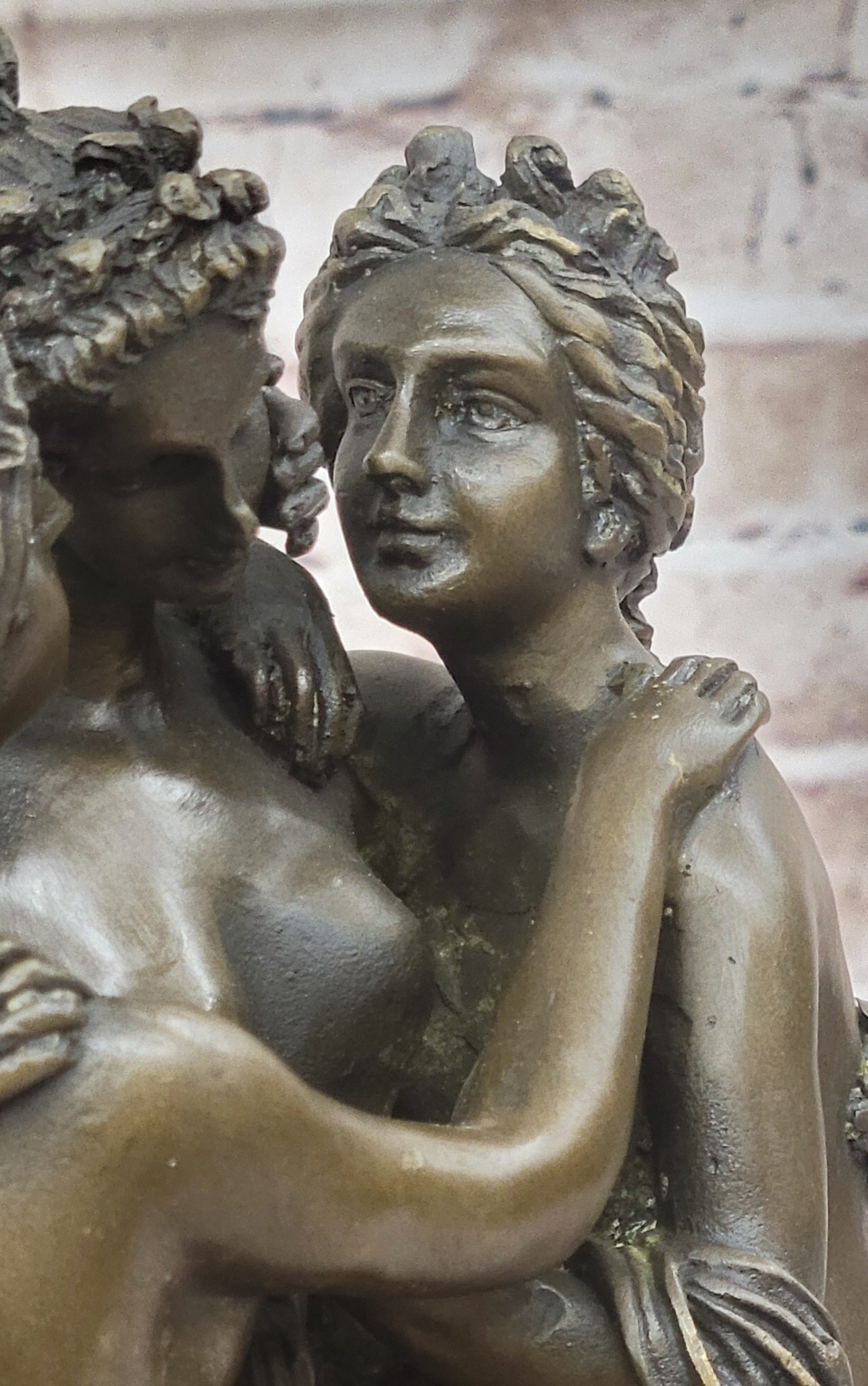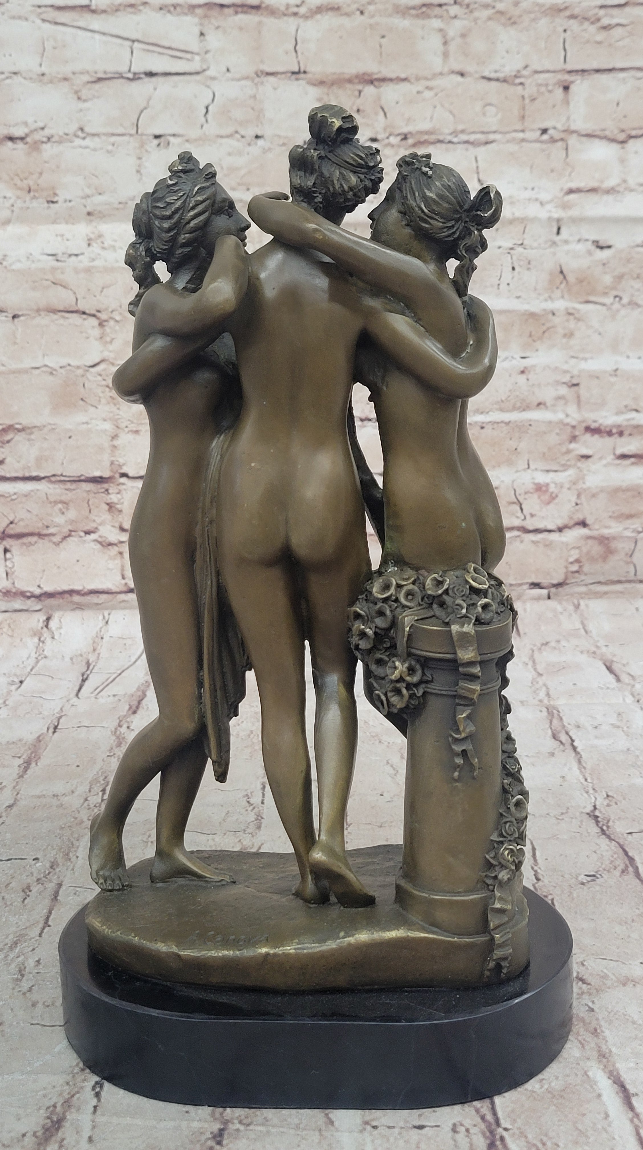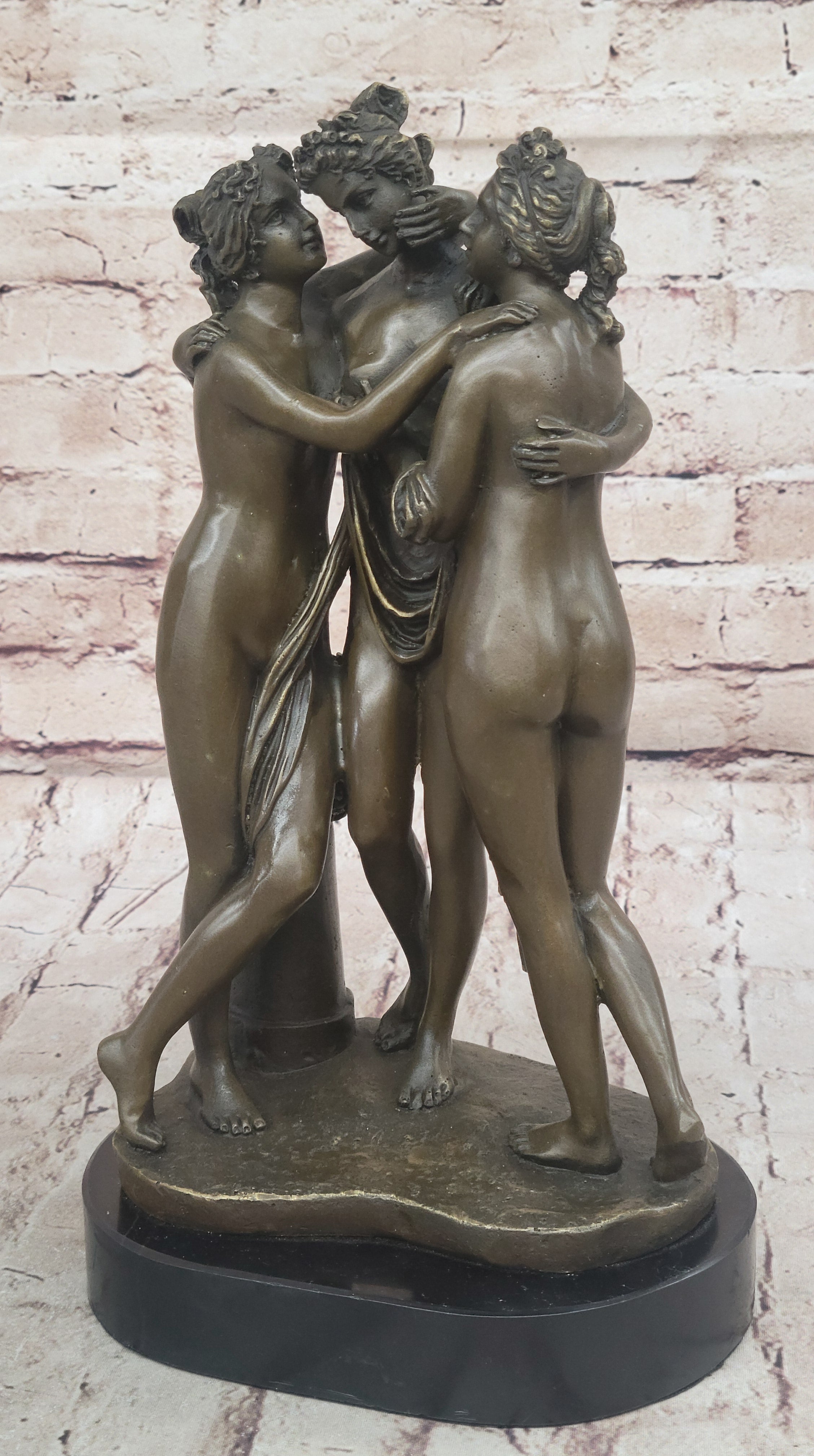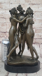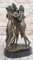 Three Graces Greek Roman Nude Female Figures Bronze Metal Statue Sculpture on Marble Base